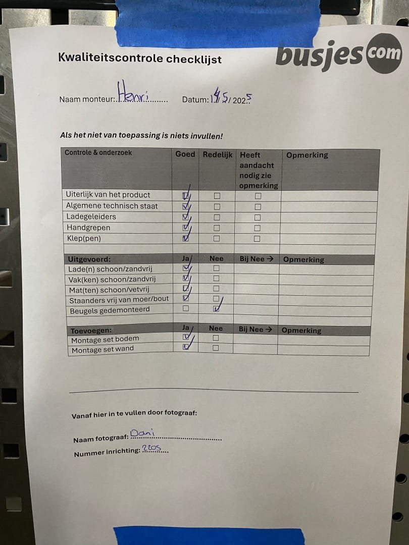 👉 Belangrijk: dit is een gebruikte inrichting. De staat is goed, maar check de afmetingen goed. Meet je voertuig zelf na of laat het doen, zodat je zeker weet dat het past.