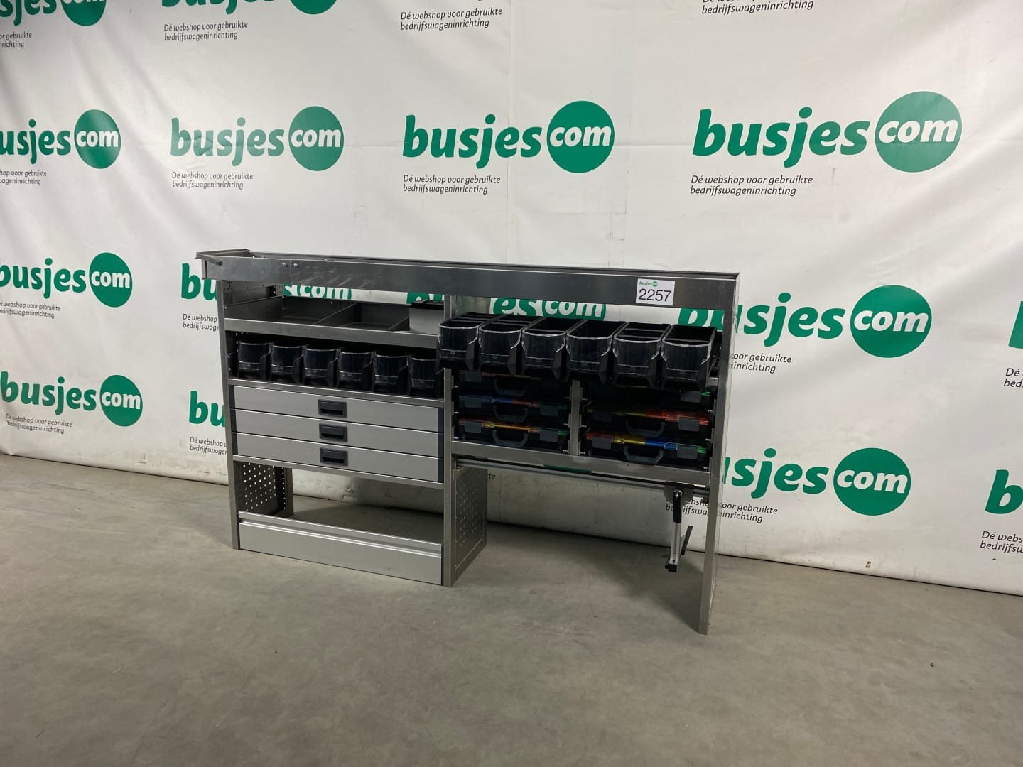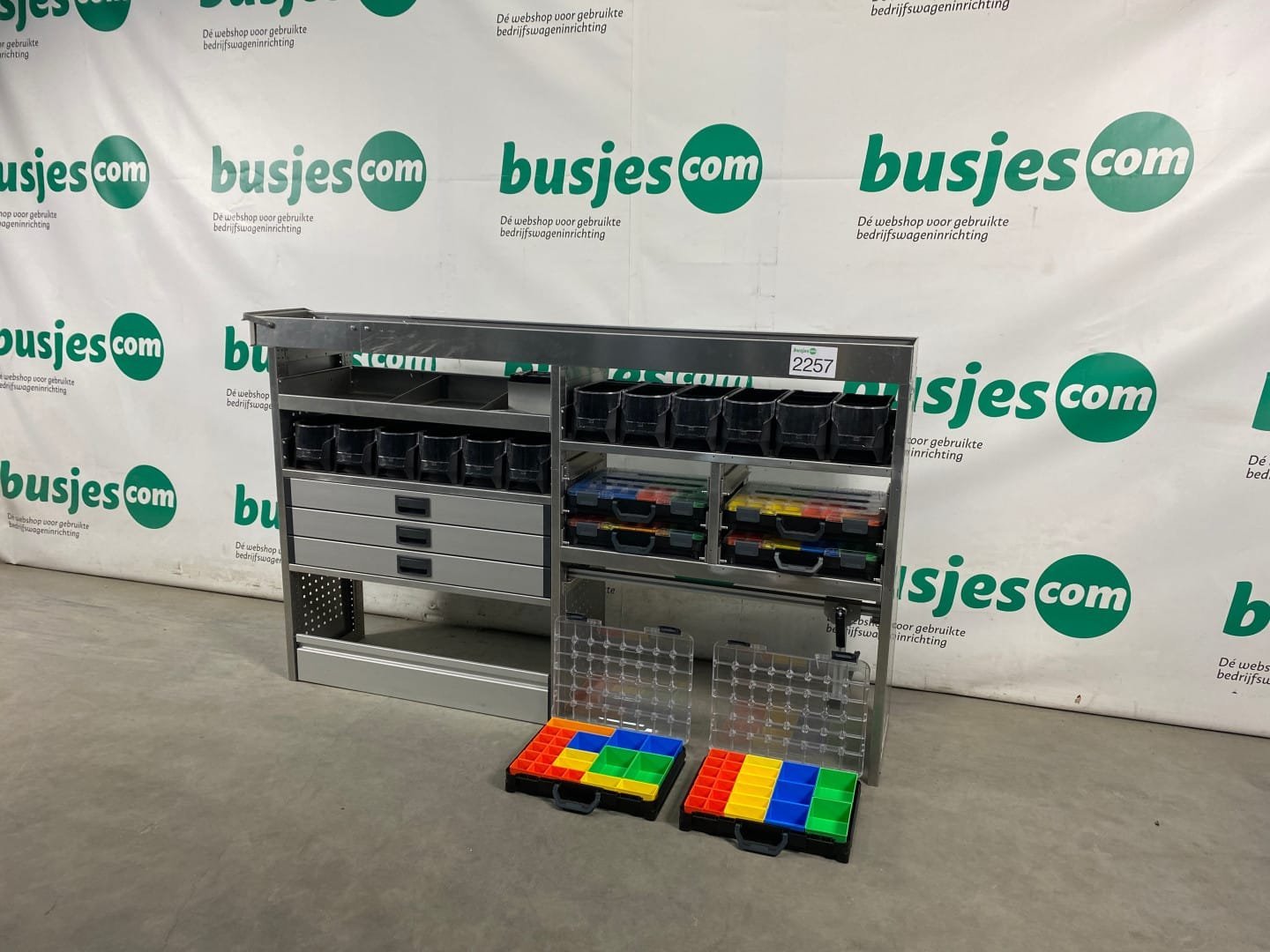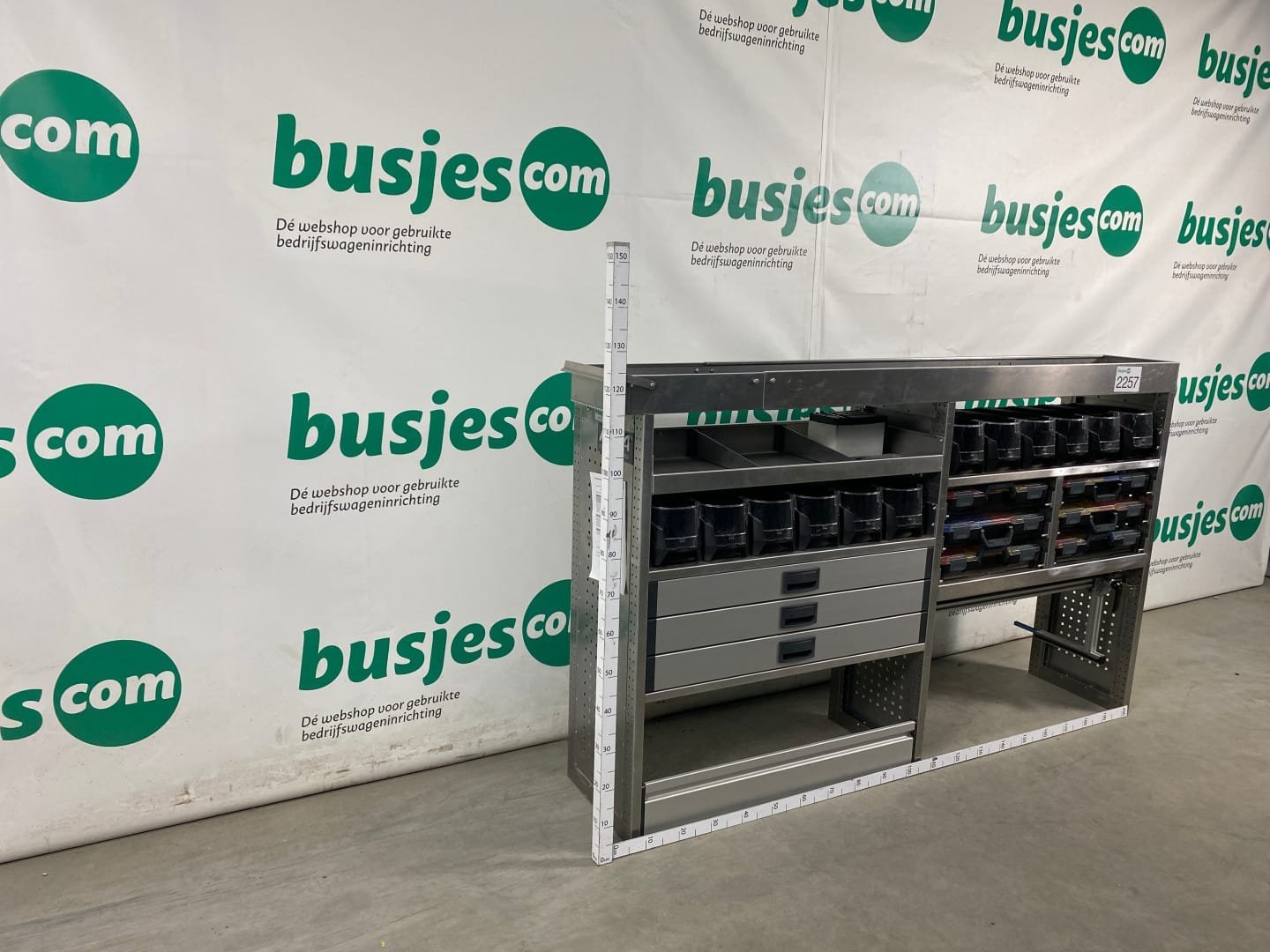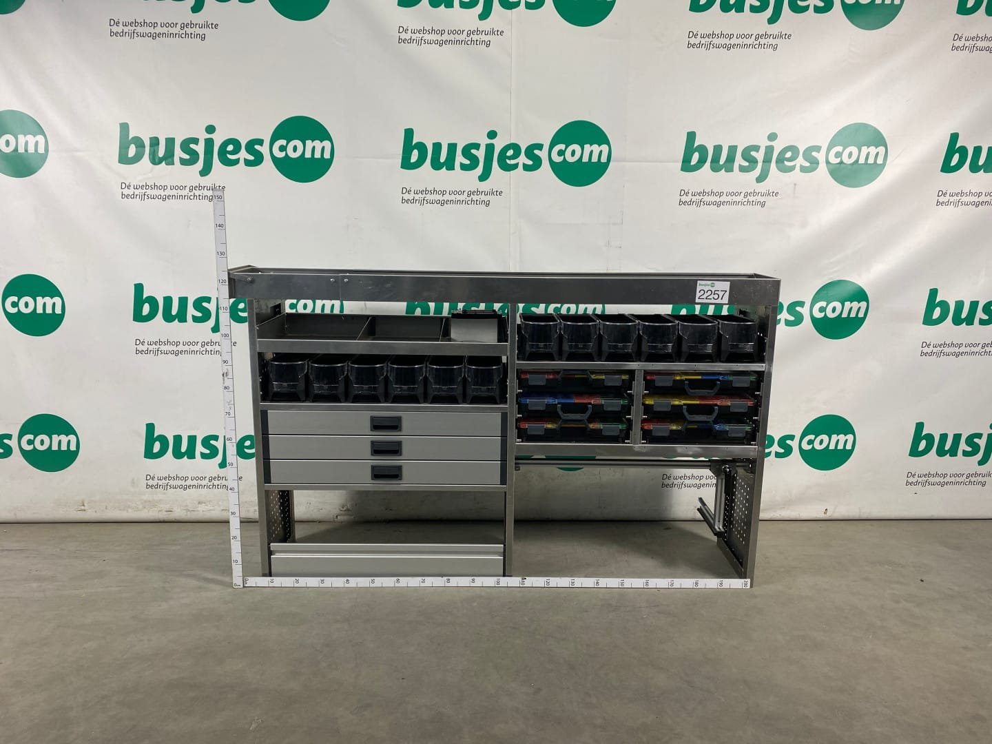 👉 Belangrijk: dit is een gebruikte inrichting. De staat is goed, maar check de afmetingen goed. Meet je voertuig zelf na of laat het doen, zodat je zeker weet dat het past.