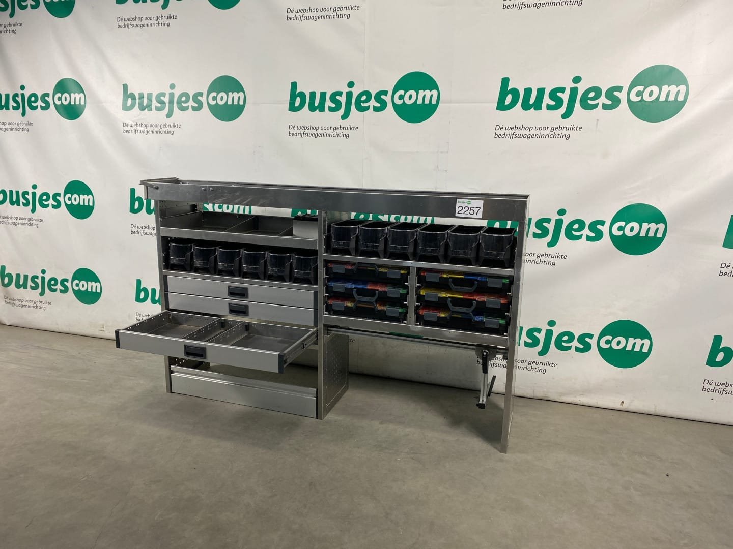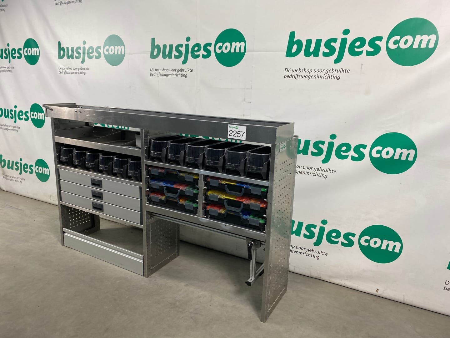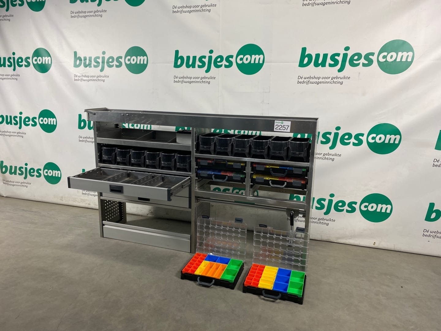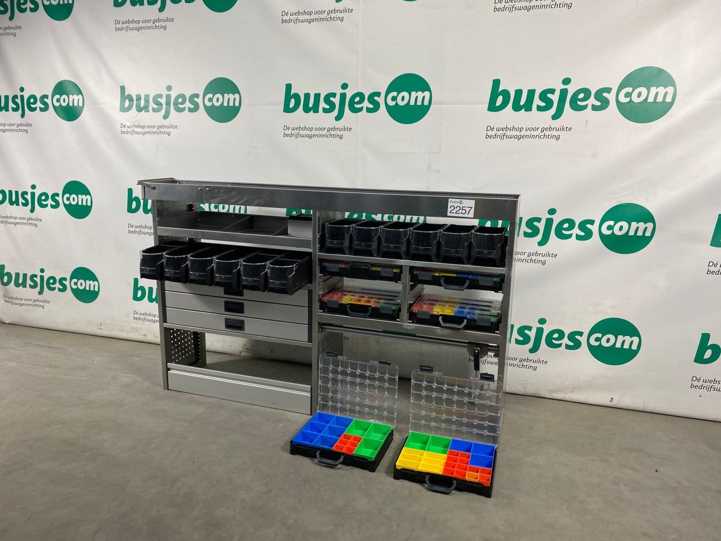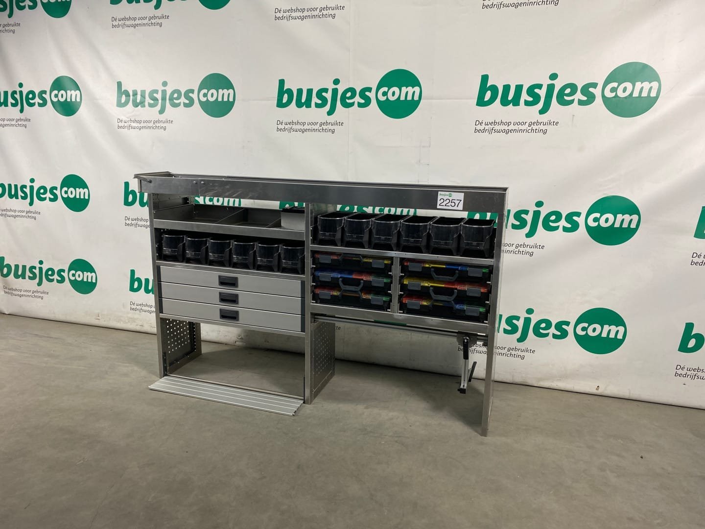 👉 Belangrijk: dit is een gebruikte inrichting. De staat is goed, maar check de afmetingen goed. Meet je voertuig zelf na of laat het doen, zodat je zeker weet dat het past.