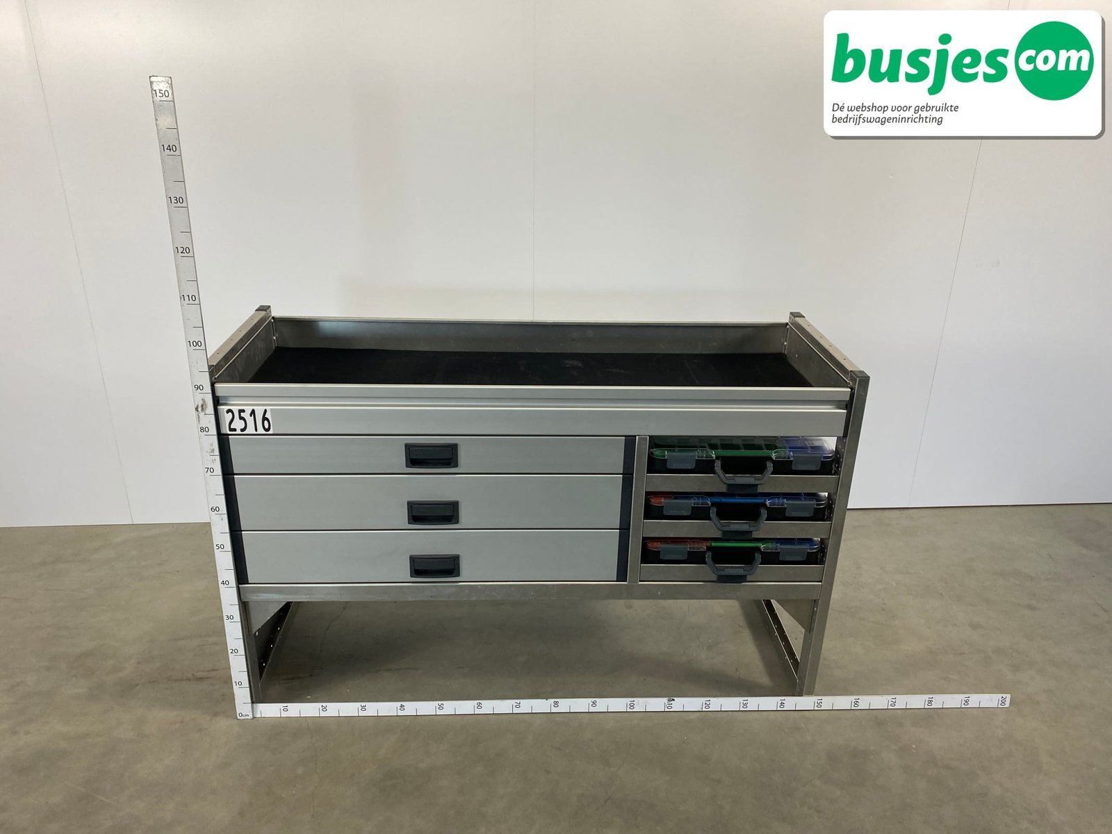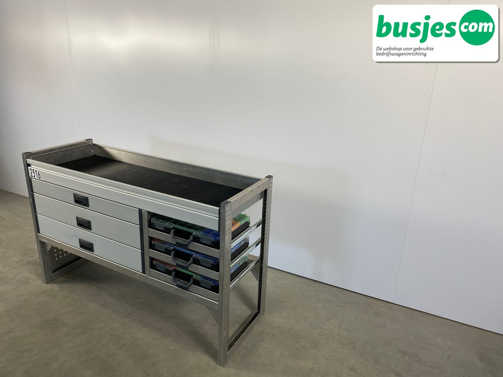 👉 Belangrijk: dit is een gebruikte inrichting. De staat is goed, maar check de afmetingen goed. Meet je voertuig zelf na of laat het doen, zodat je zeker weet dat het past.