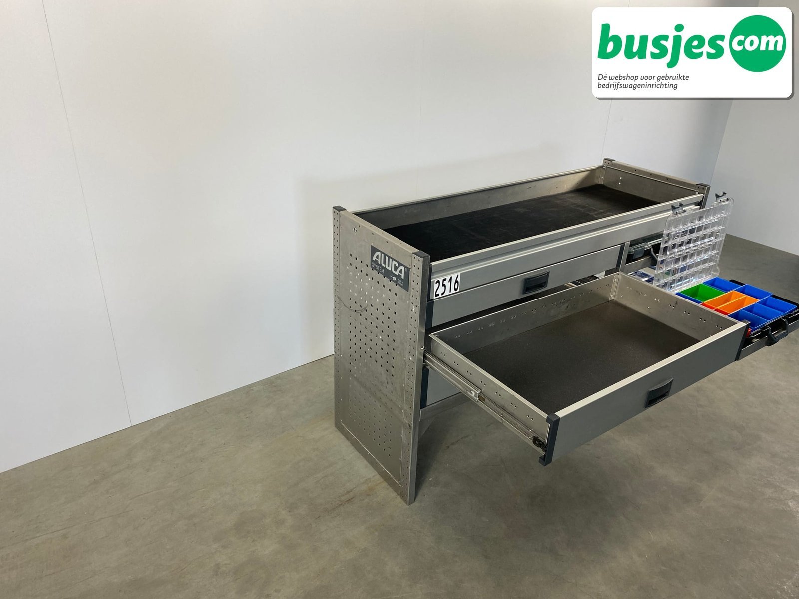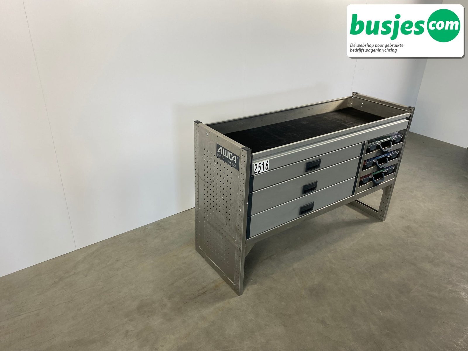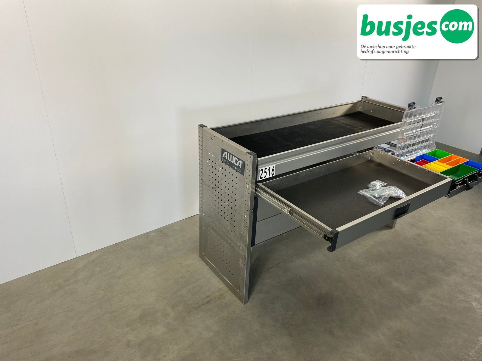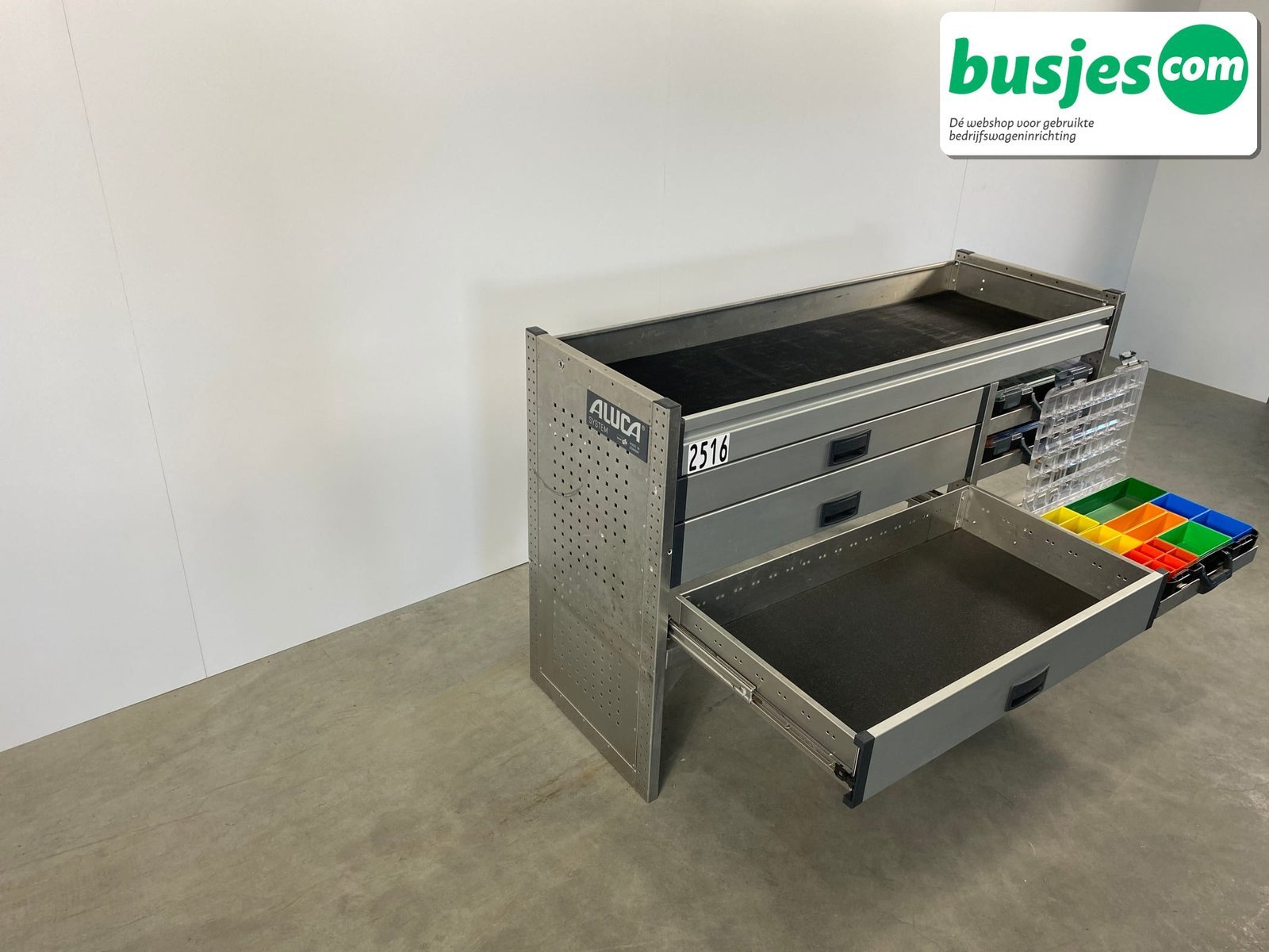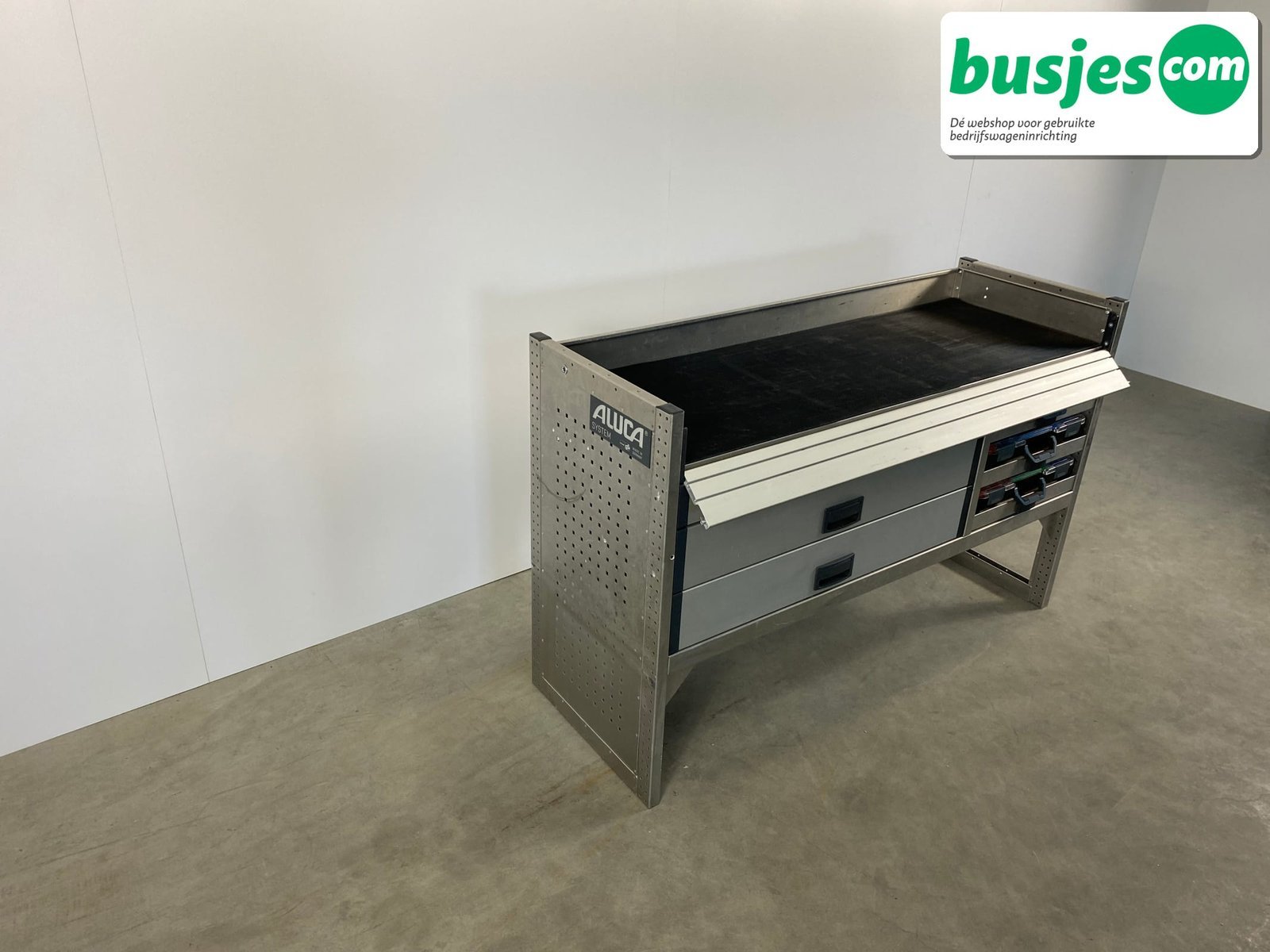 Deze gebruikte Aluca aluminium bedrijfswageninrichting is nog in topvorm. Gemaakt om lang mee te gaan én klaar voor een tweede ronde. Licht in gewicht, sterk als staal, en perfect voor het overzichtelijk vervoeren van je gereedschap en materiaal.