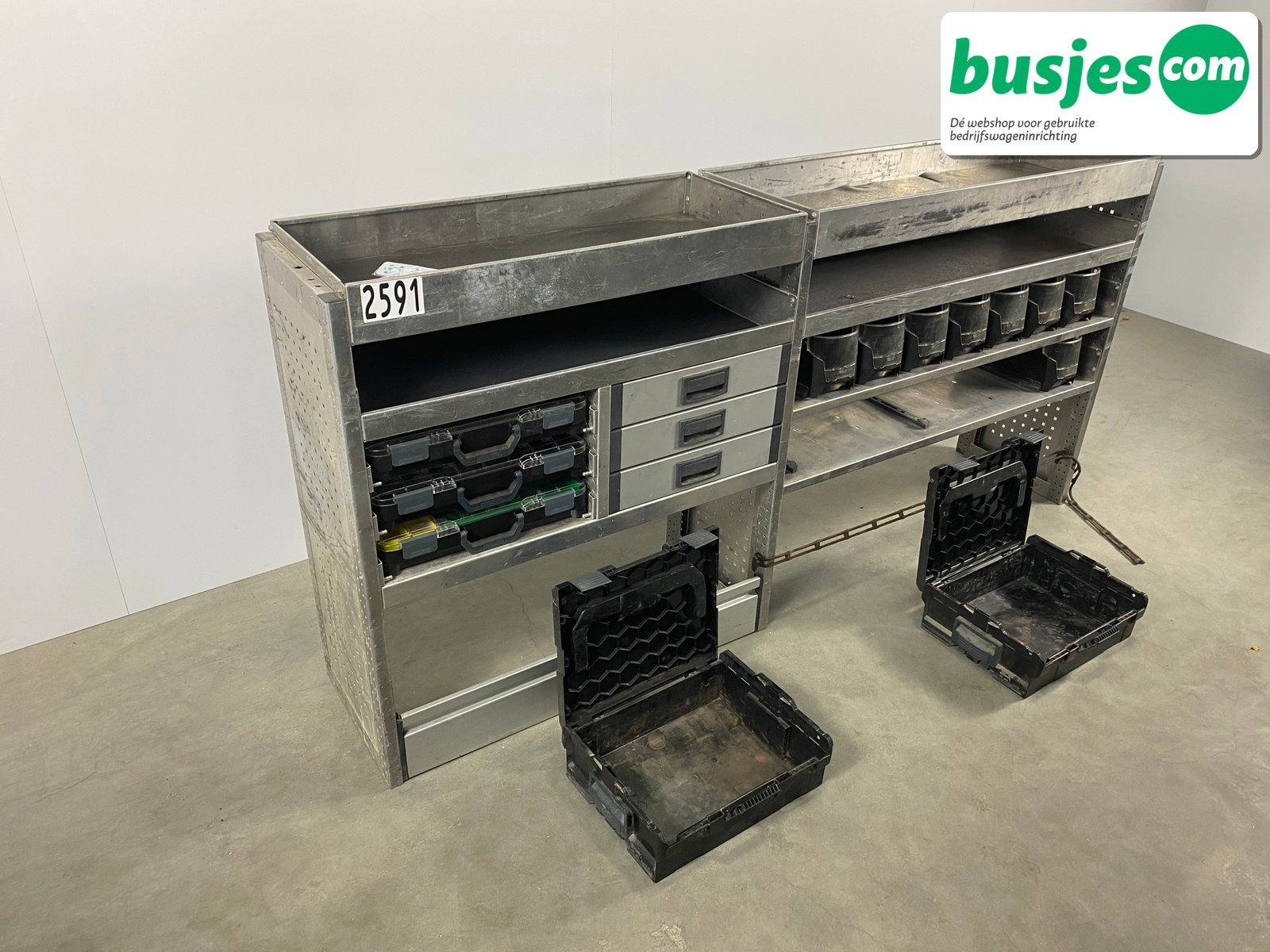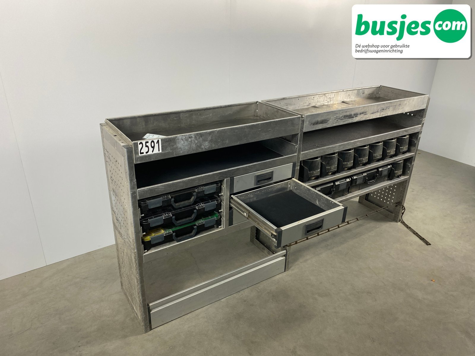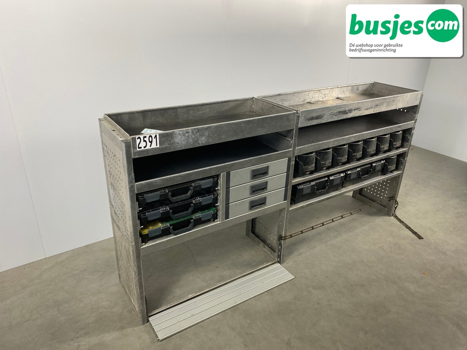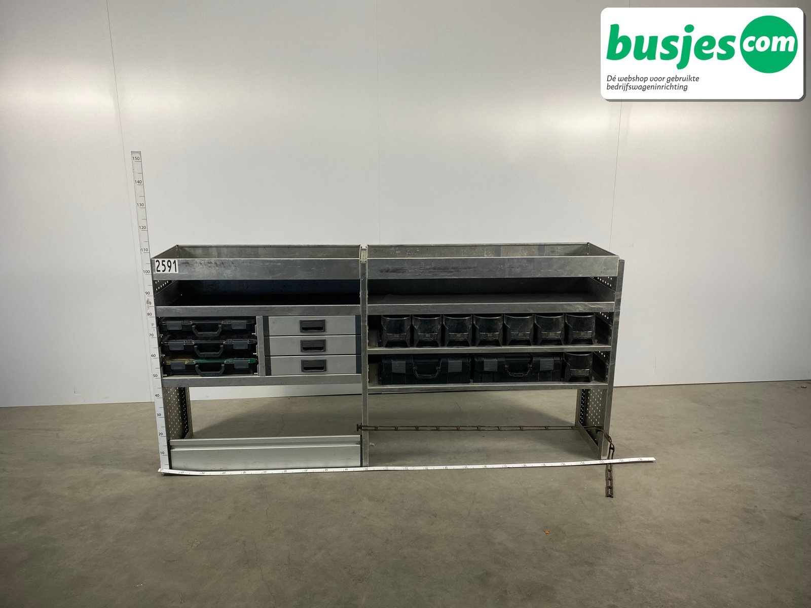 👉 Belangrijk: dit is een gebruikte inrichting. De staat is goed, maar check de afmetingen goed. Meet je voertuig zelf na of laat het doen, zodat je zeker weet dat het past.