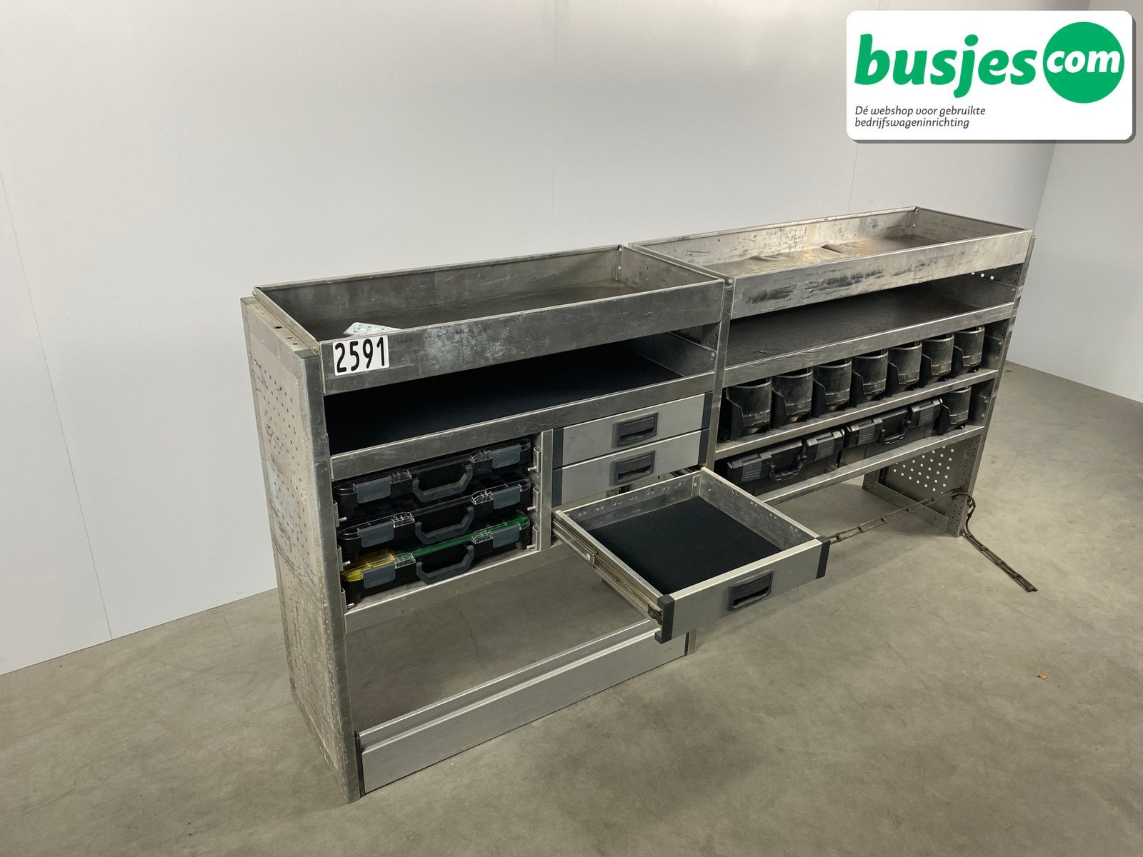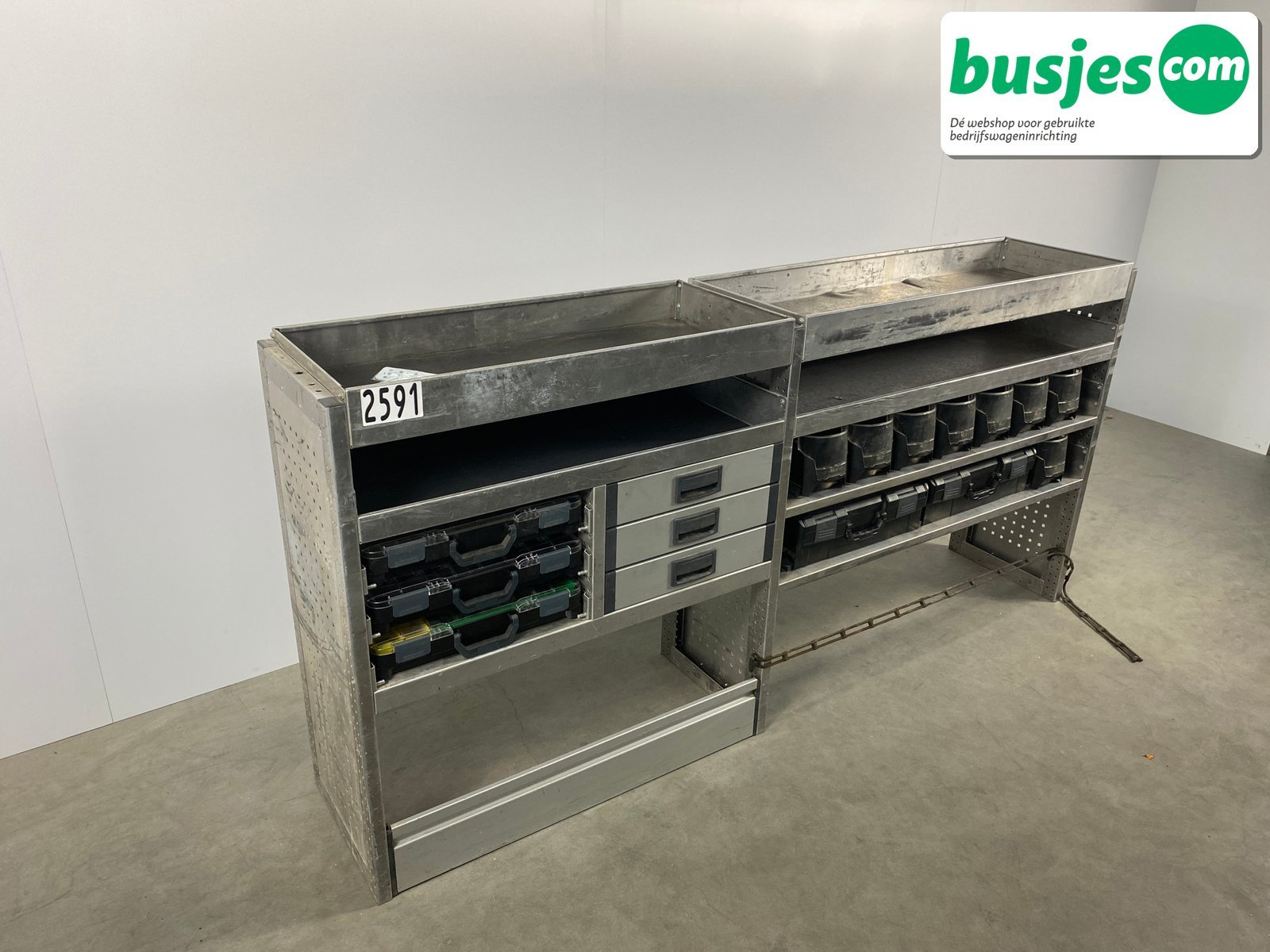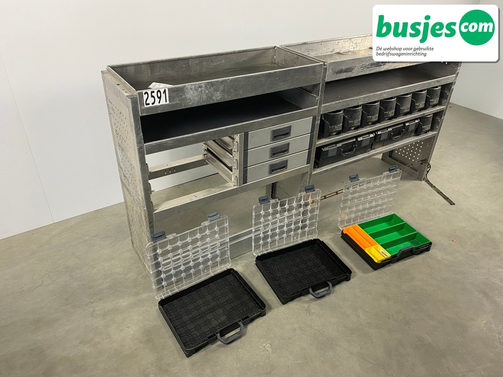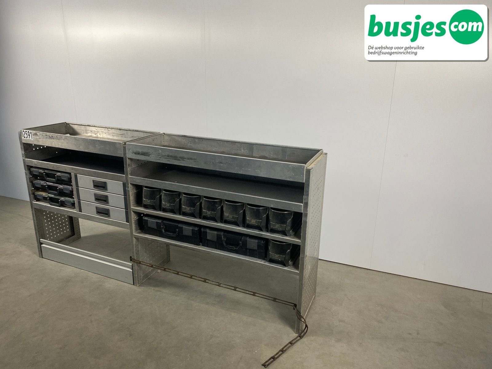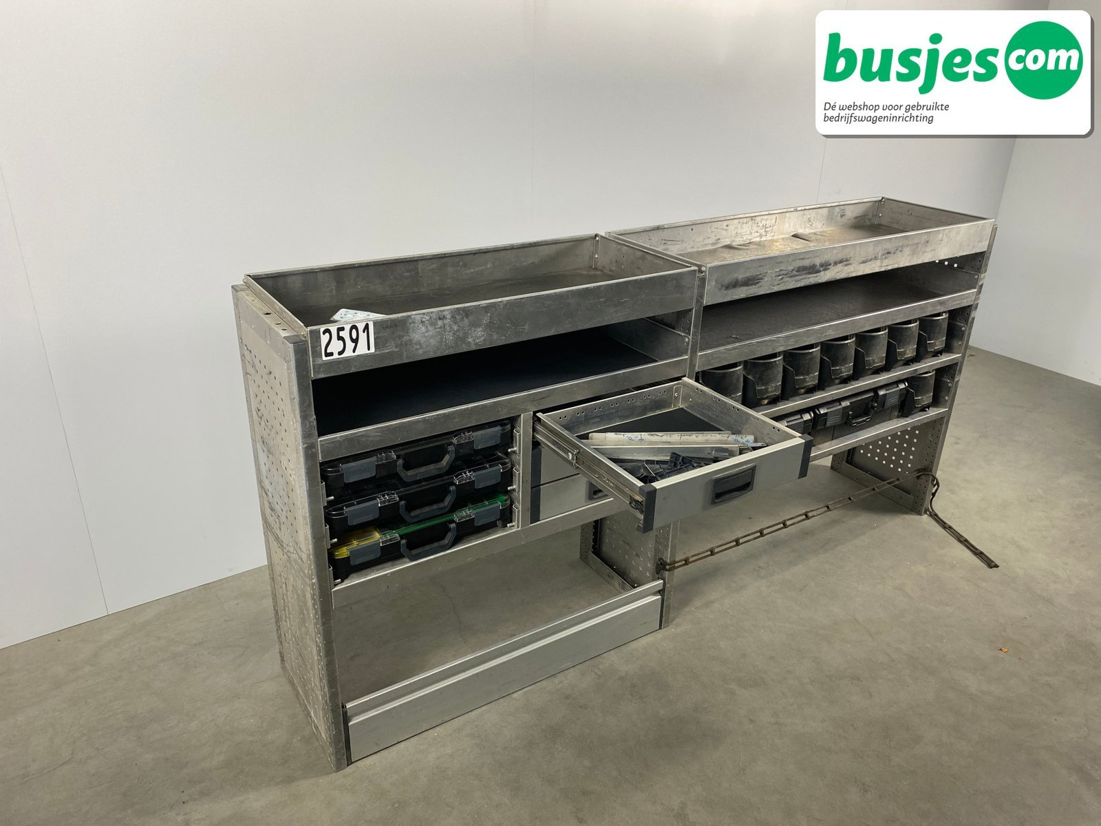 👉 Belangrijk: dit is een gebruikte inrichting. De staat is goed, maar check de afmetingen goed. Meet je voertuig zelf na of laat het doen, zodat je zeker weet dat het past.