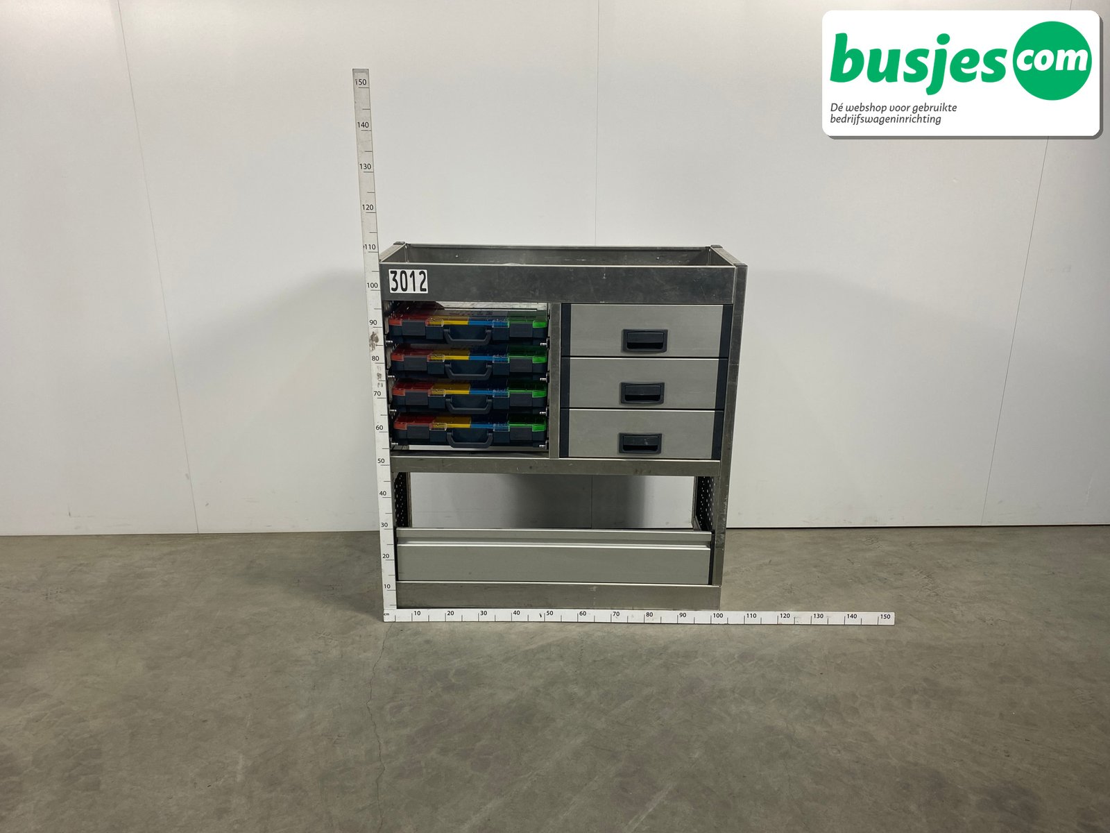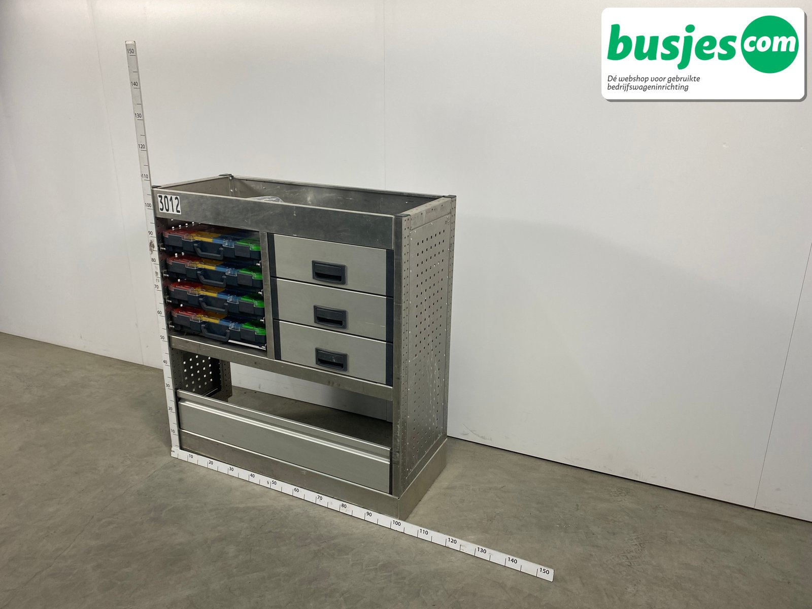 👉 Belangrijk: dit is een gebruikte inrichting. De staat is goed, maar check de afmetingen goed. Meet je voertuig zelf na of laat het doen, zodat je zeker weet dat het past.