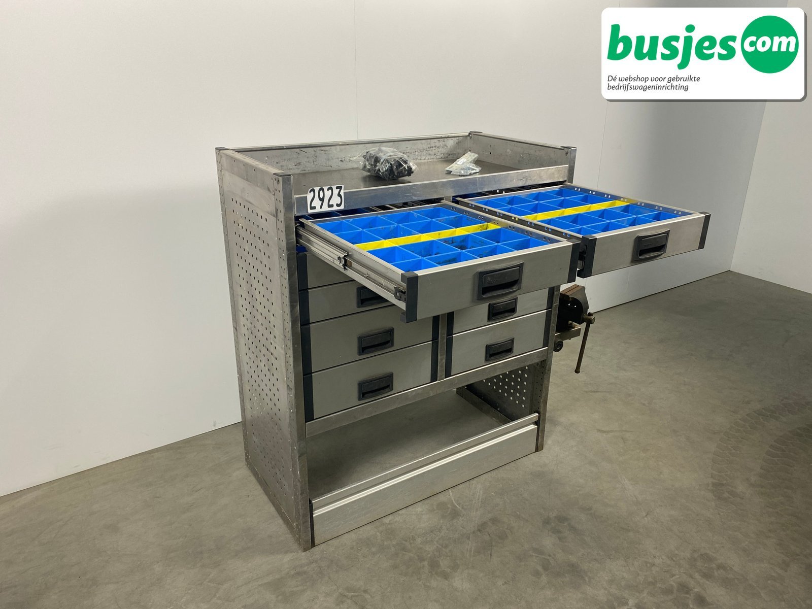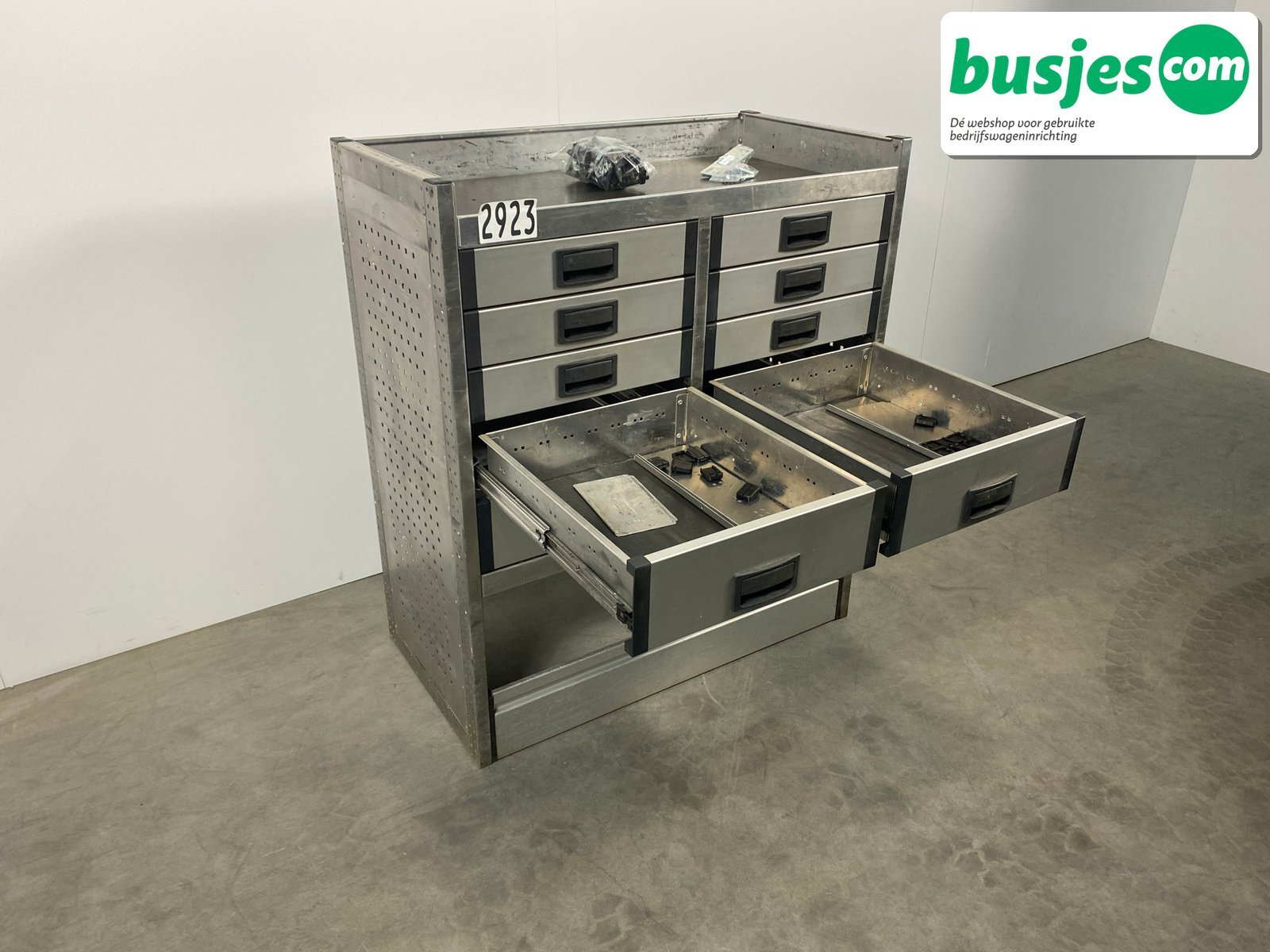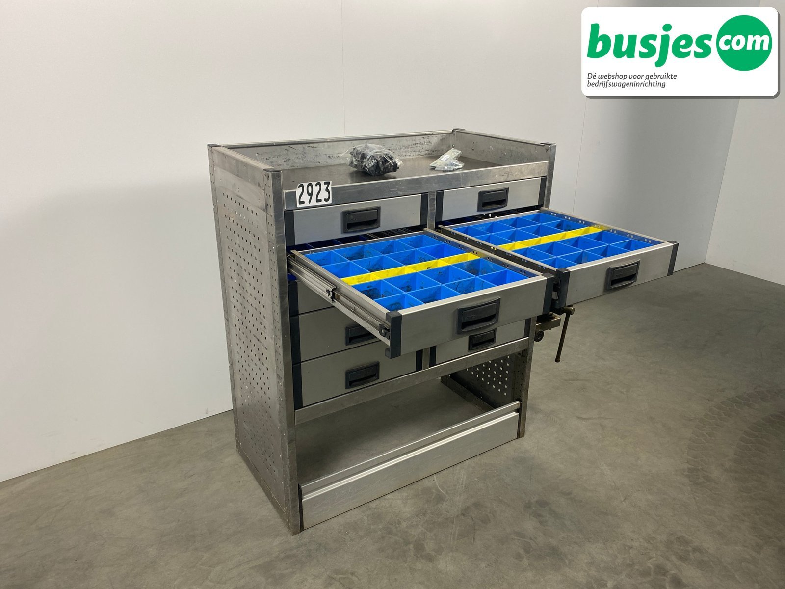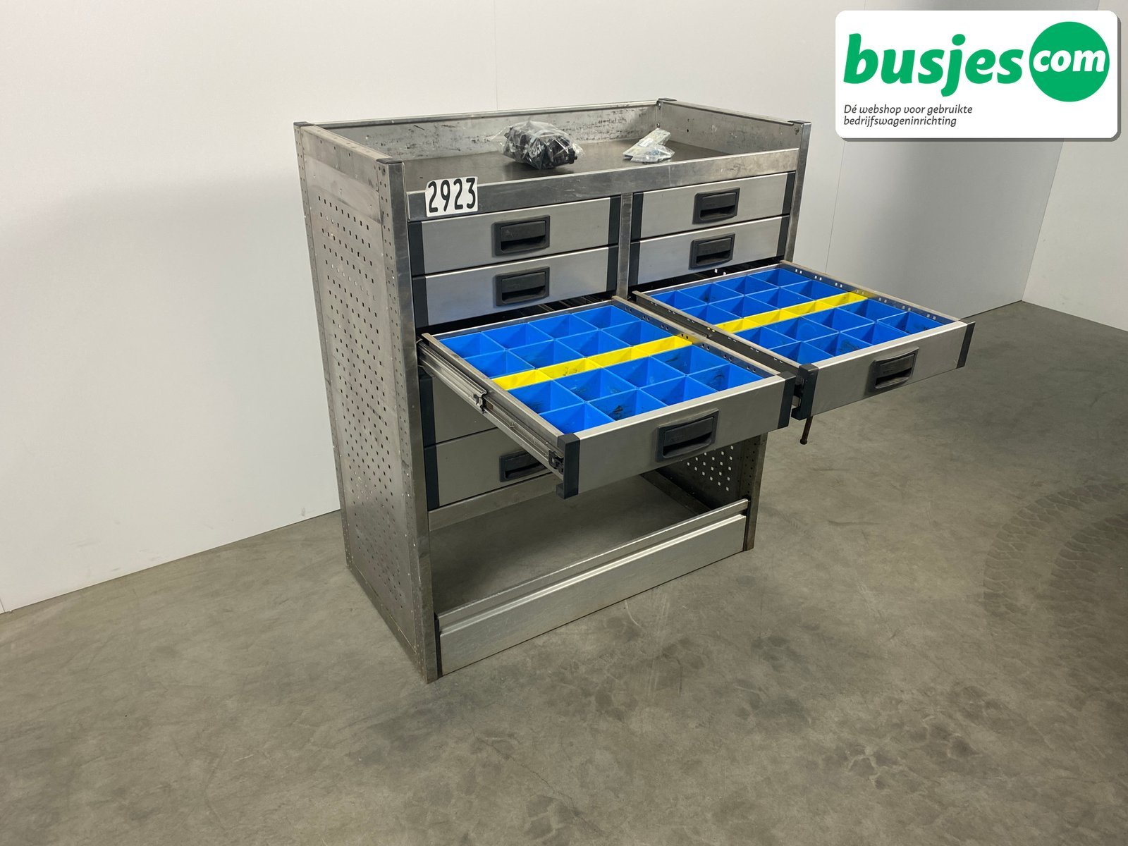 👉 Belangrijk: dit is een gebruikte inrichting. De staat is goed, maar check de afmetingen goed. Meet je voertuig zelf na of laat het doen, zodat je zeker weet dat het past.