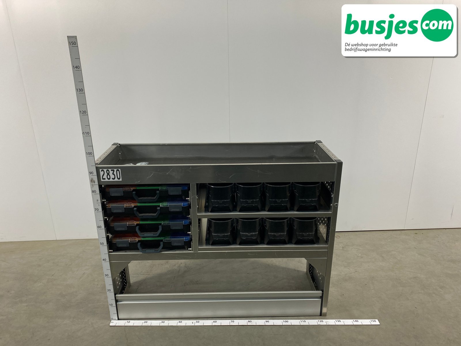 👉 Belangrijk: dit is een gebruikte inrichting. De staat is goed, maar check de afmetingen goed. Meet je voertuig zelf na of laat het doen, zodat je zeker weet dat het past.