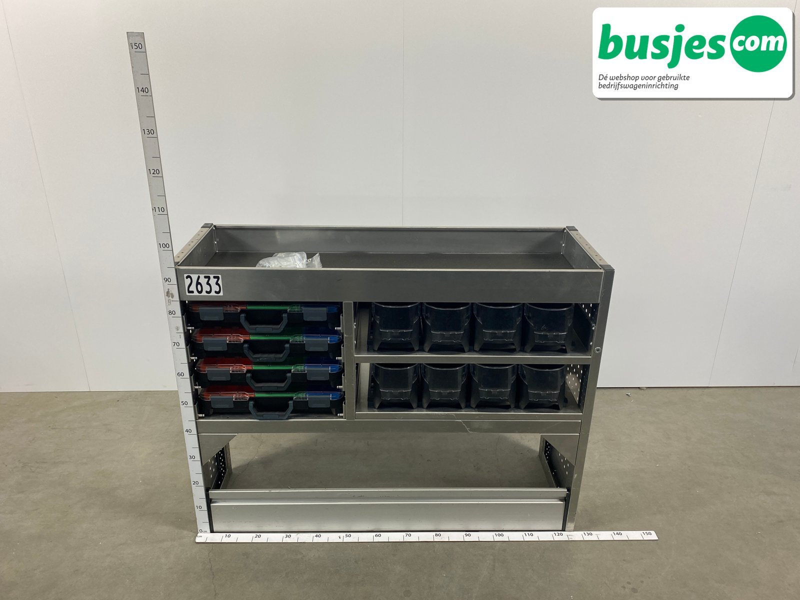 👉 Belangrijk: dit is een gebruikte inrichting. De staat is goed, maar check de afmetingen goed. Meet je voertuig zelf na of laat het doen, zodat je zeker weet dat het past.