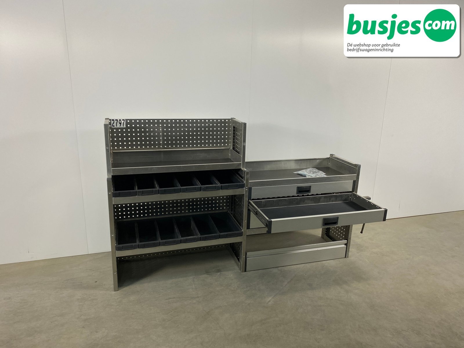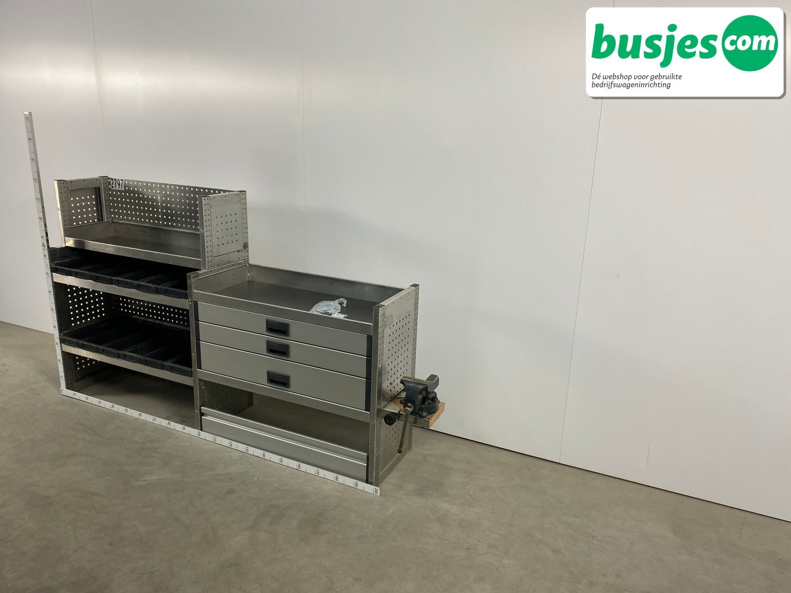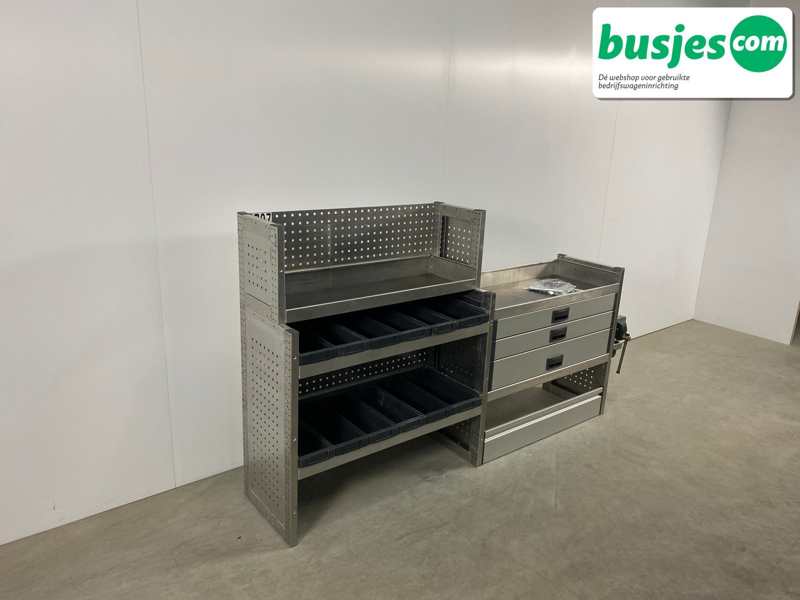 👉 Belangrijk: dit is een gebruikte inrichting. De staat is goed, maar check de afmetingen goed. Meet je voertuig zelf na of laat het doen, zodat je zeker weet dat het past.