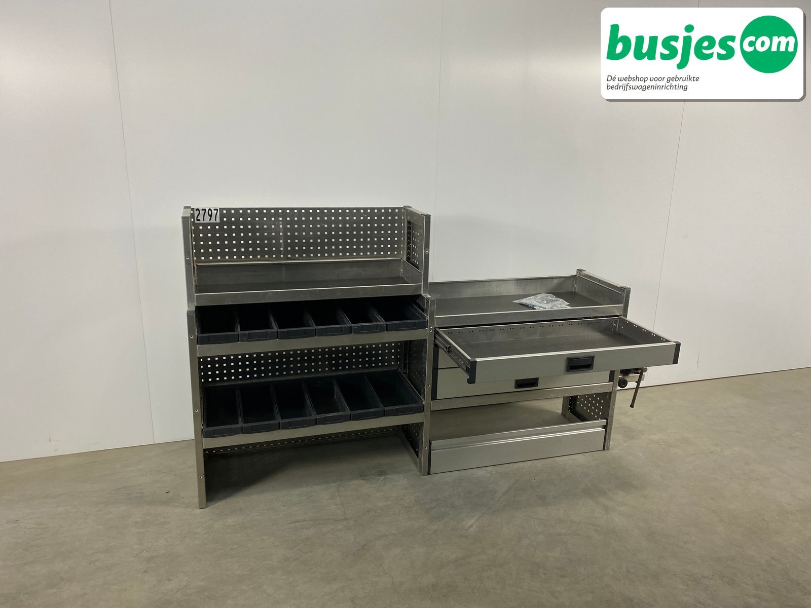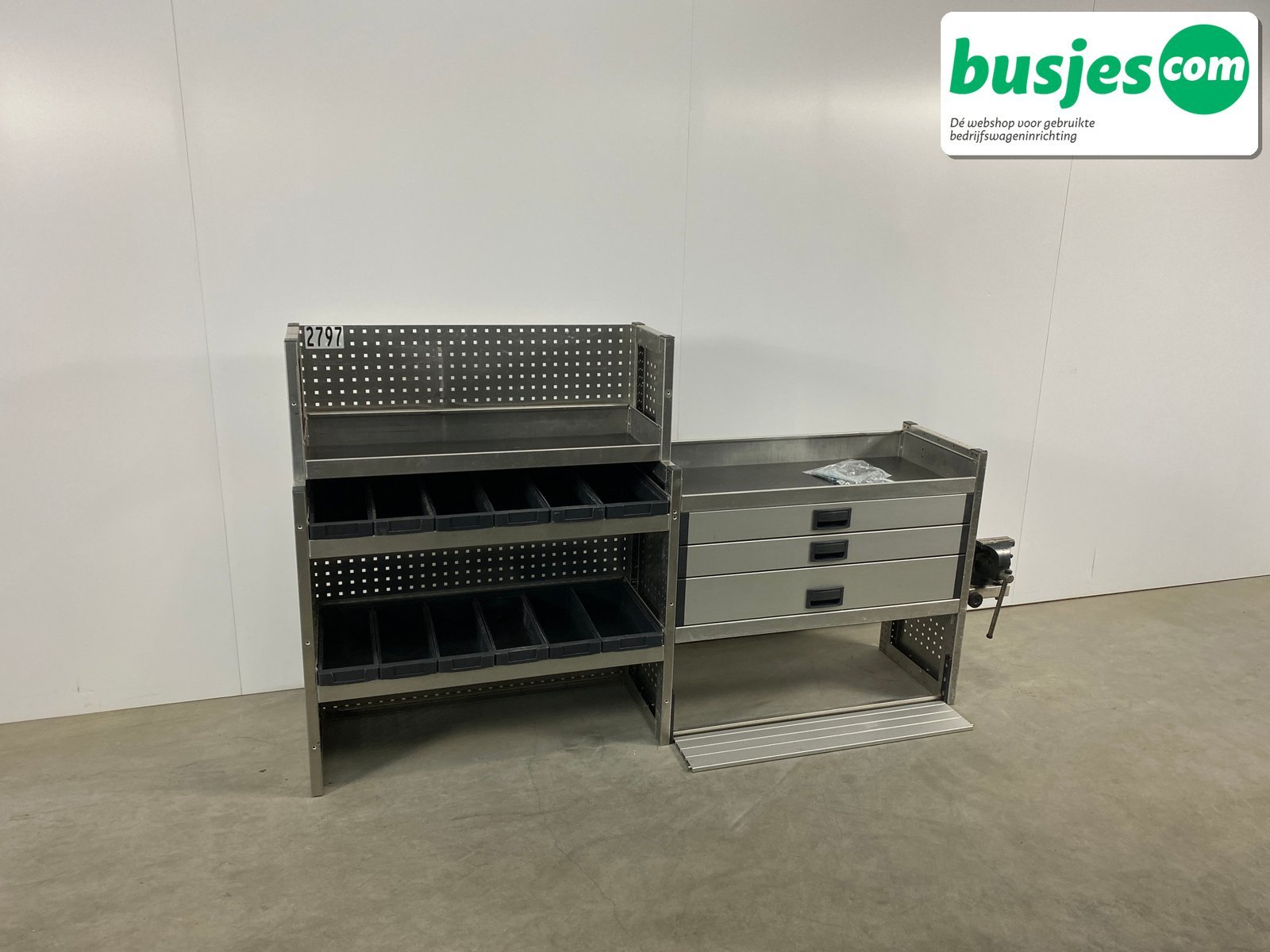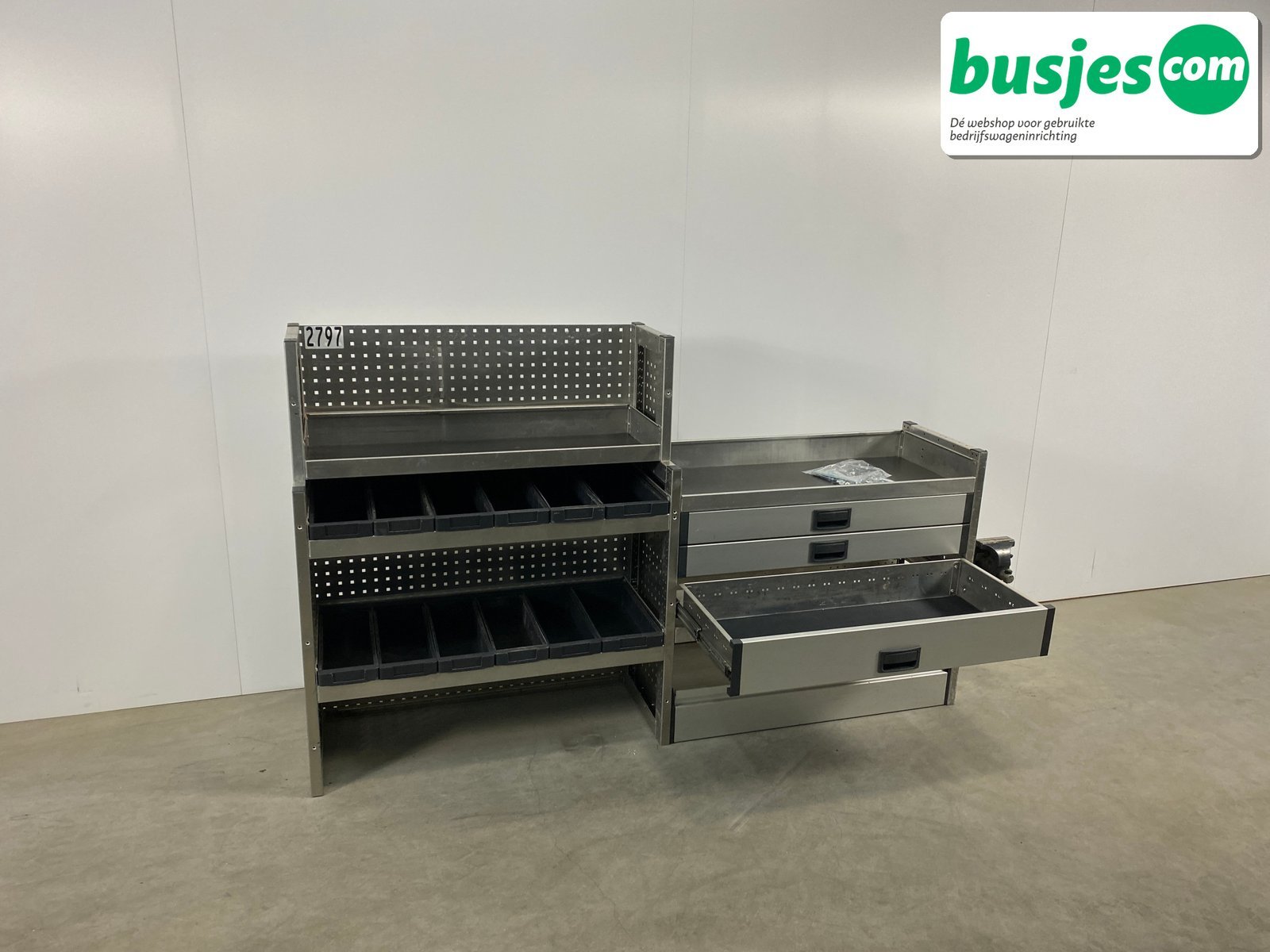 👉 Belangrijk: dit is een gebruikte inrichting. De staat is goed, maar check de afmetingen goed. Meet je voertuig zelf na of laat het doen, zodat je zeker weet dat het past.