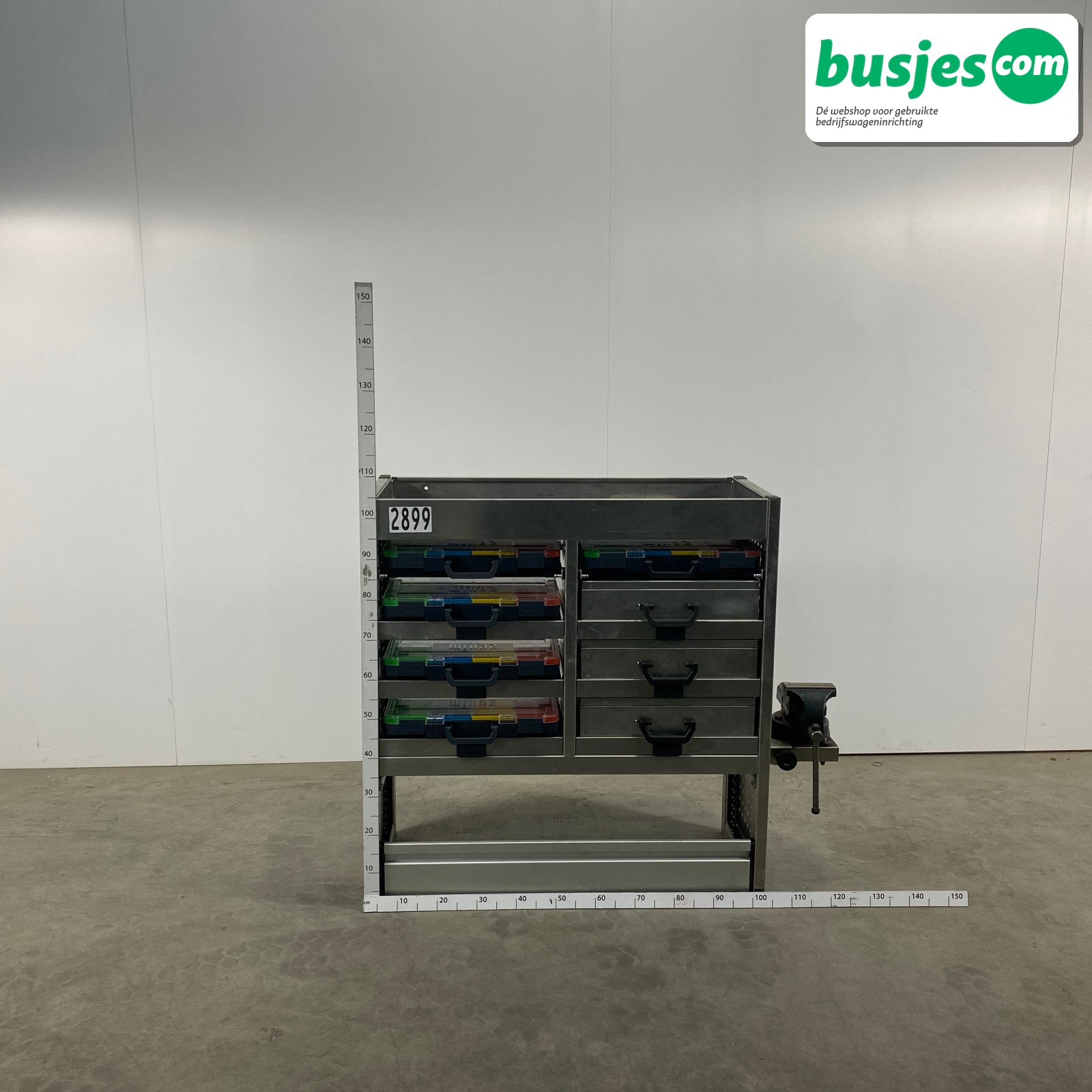 👉 Belangrijk: dit is een gebruikte inrichting. De staat is goed, maar check de afmetingen goed. Meet je voertuig zelf na of laat het doen, zodat je zeker weet dat het past.