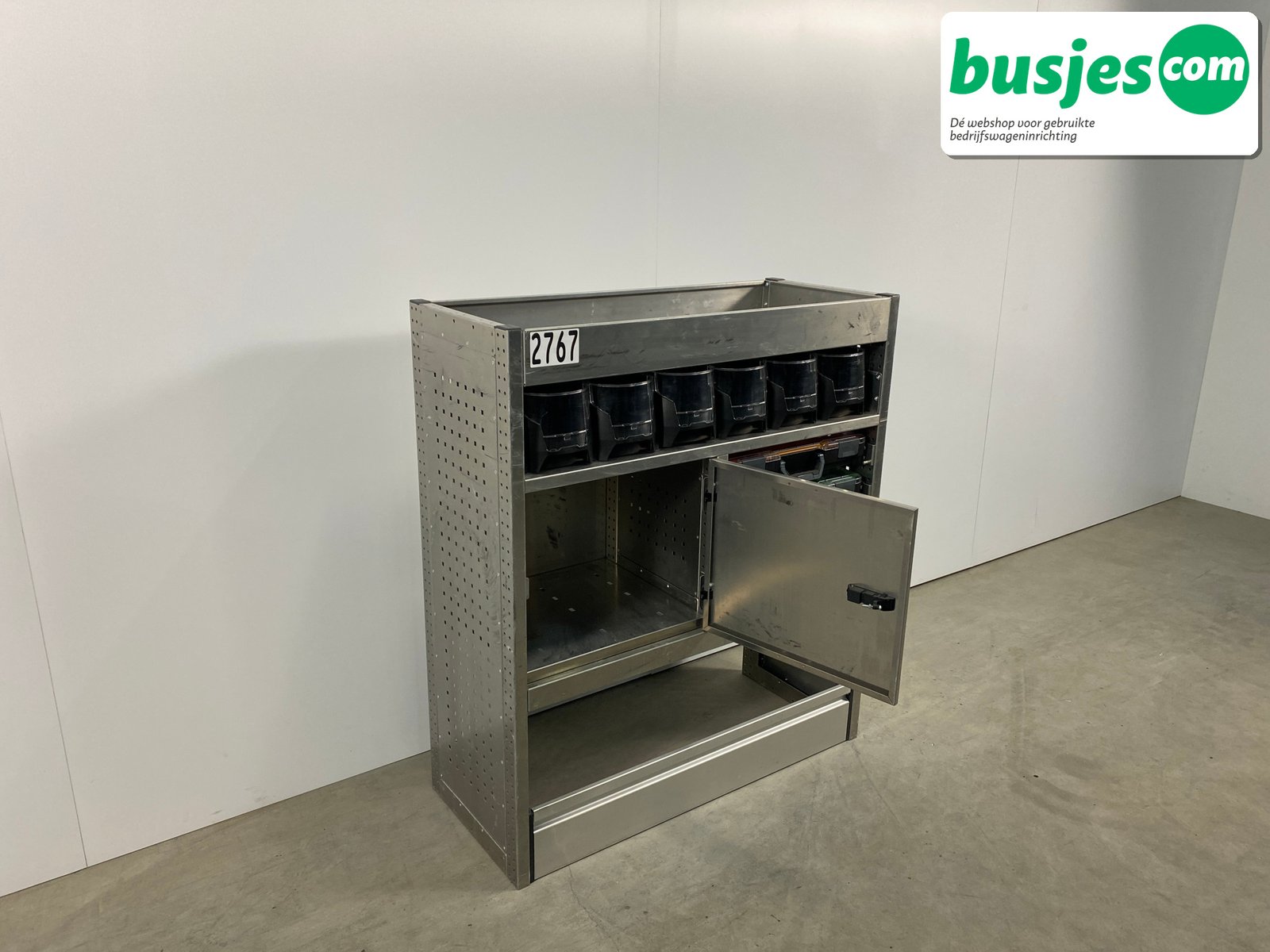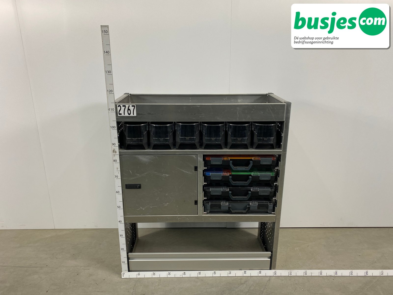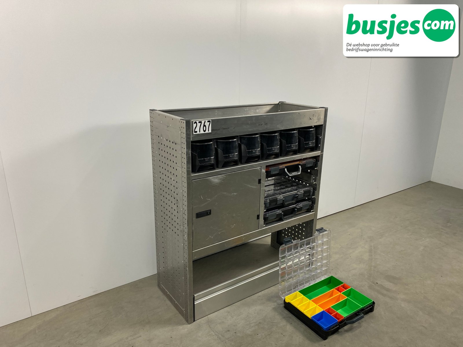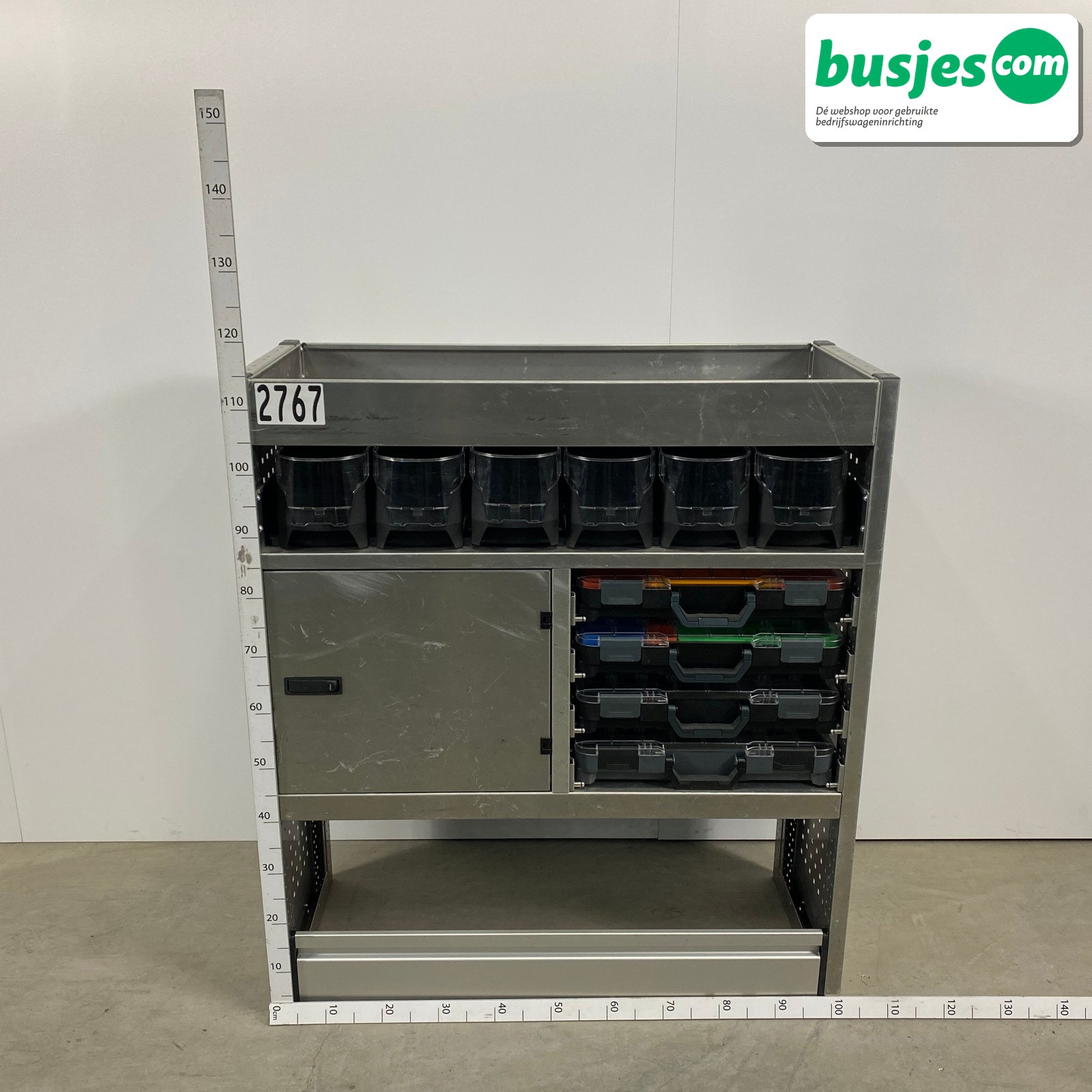 👉 Belangrijk: dit is een gebruikte inrichting. De staat is goed, maar check de afmetingen goed. Meet je voertuig zelf na of laat het doen, zodat je zeker weet dat het past.