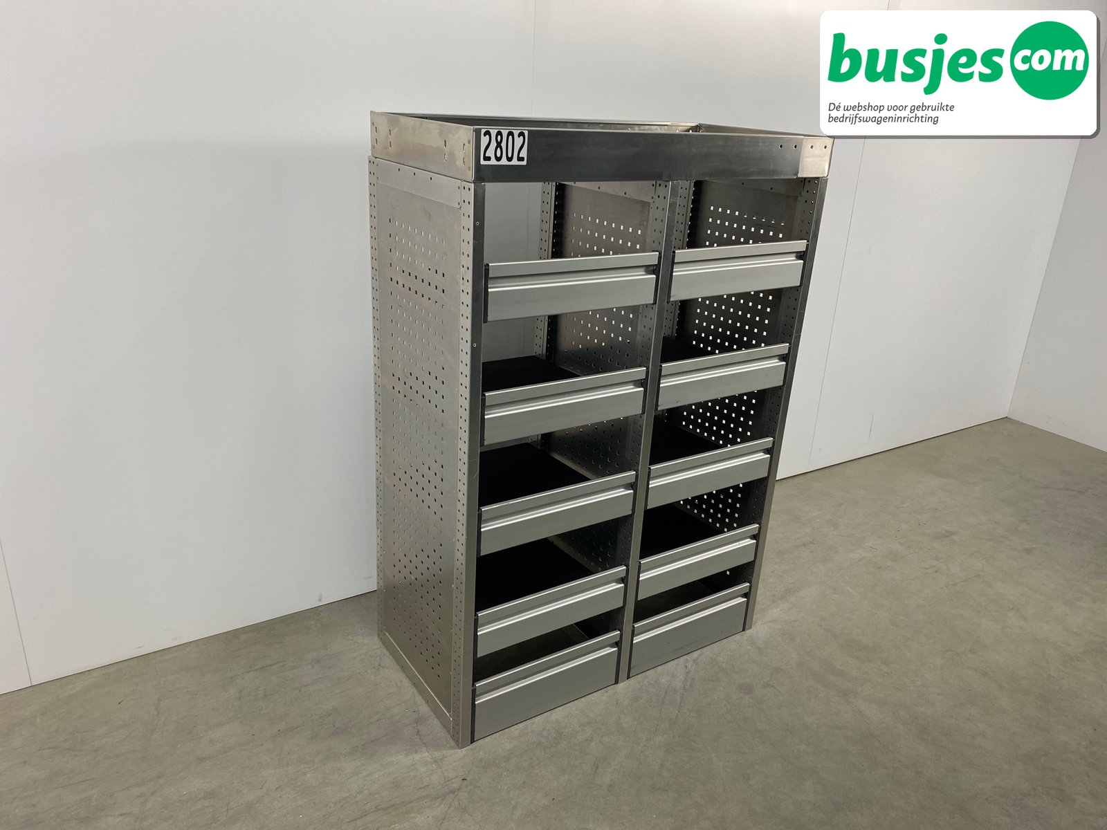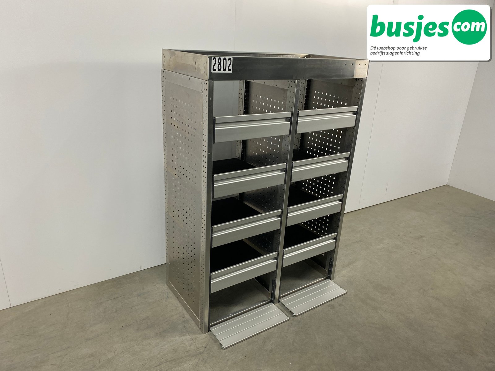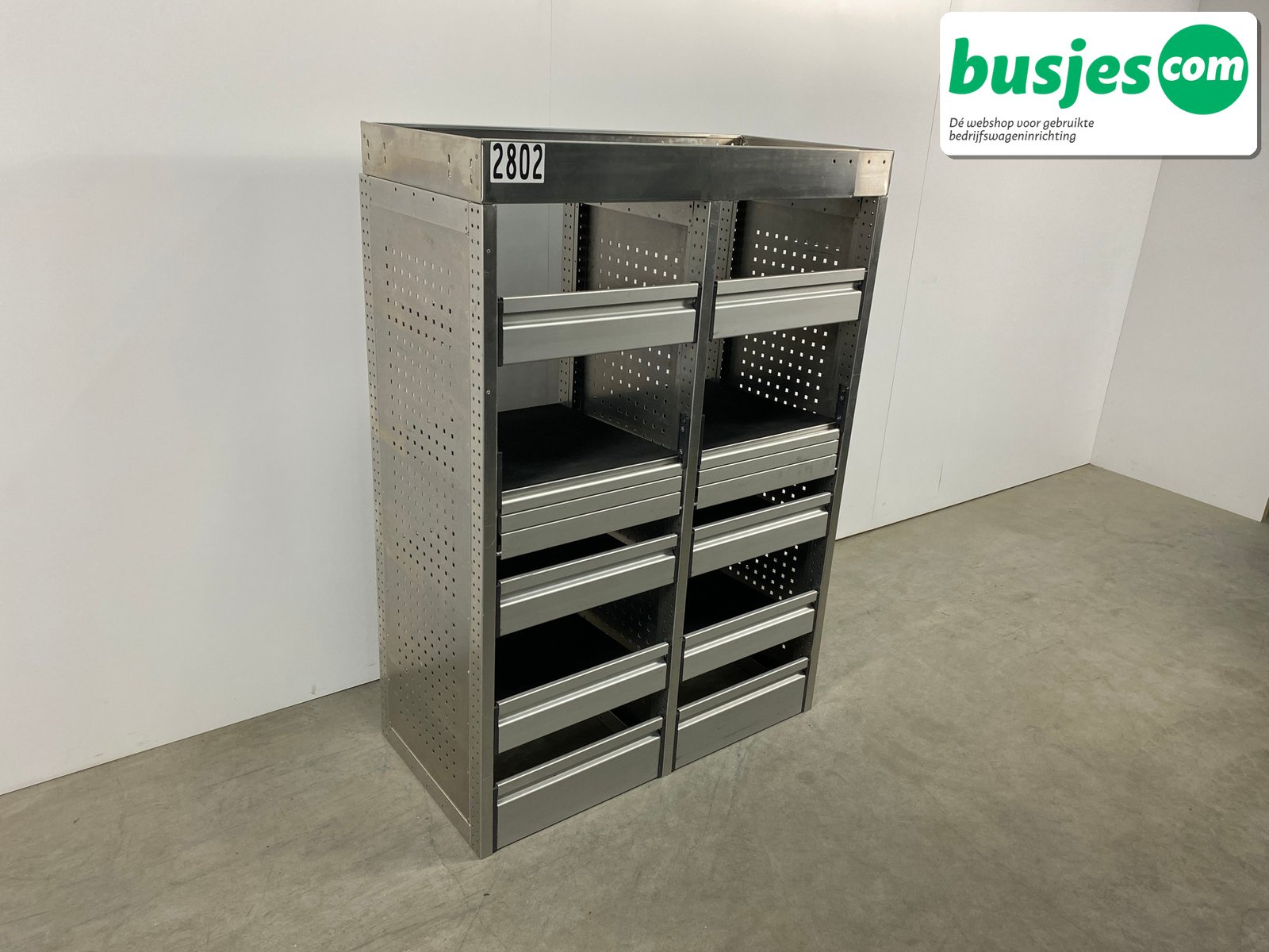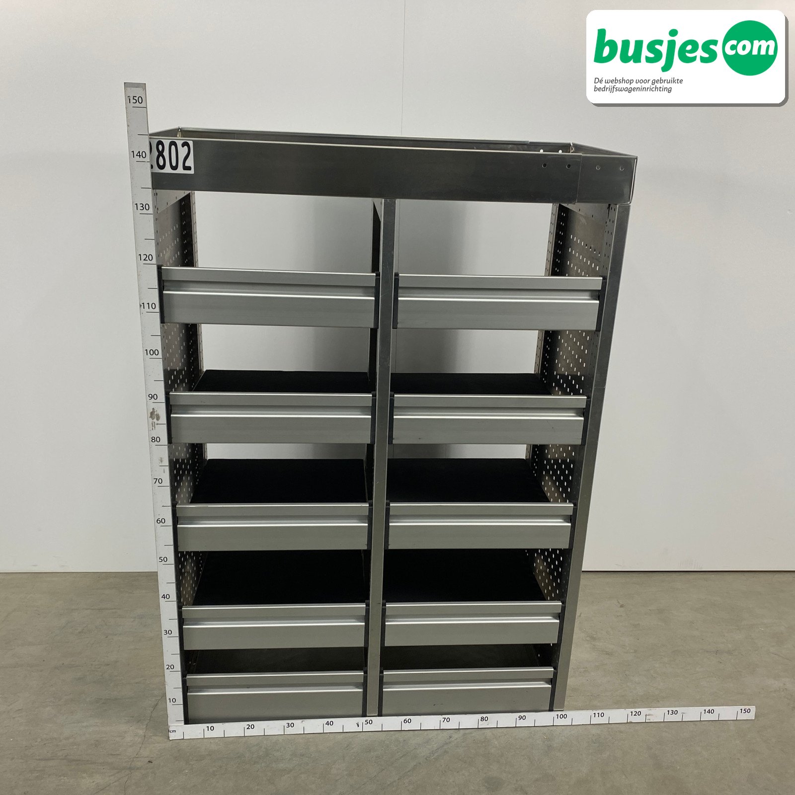 👉 Belangrijk: dit is een gebruikte inrichting. De staat is goed, maar check de afmetingen goed. Meet je voertuig zelf na of laat het doen, zodat je zeker weet dat het past.