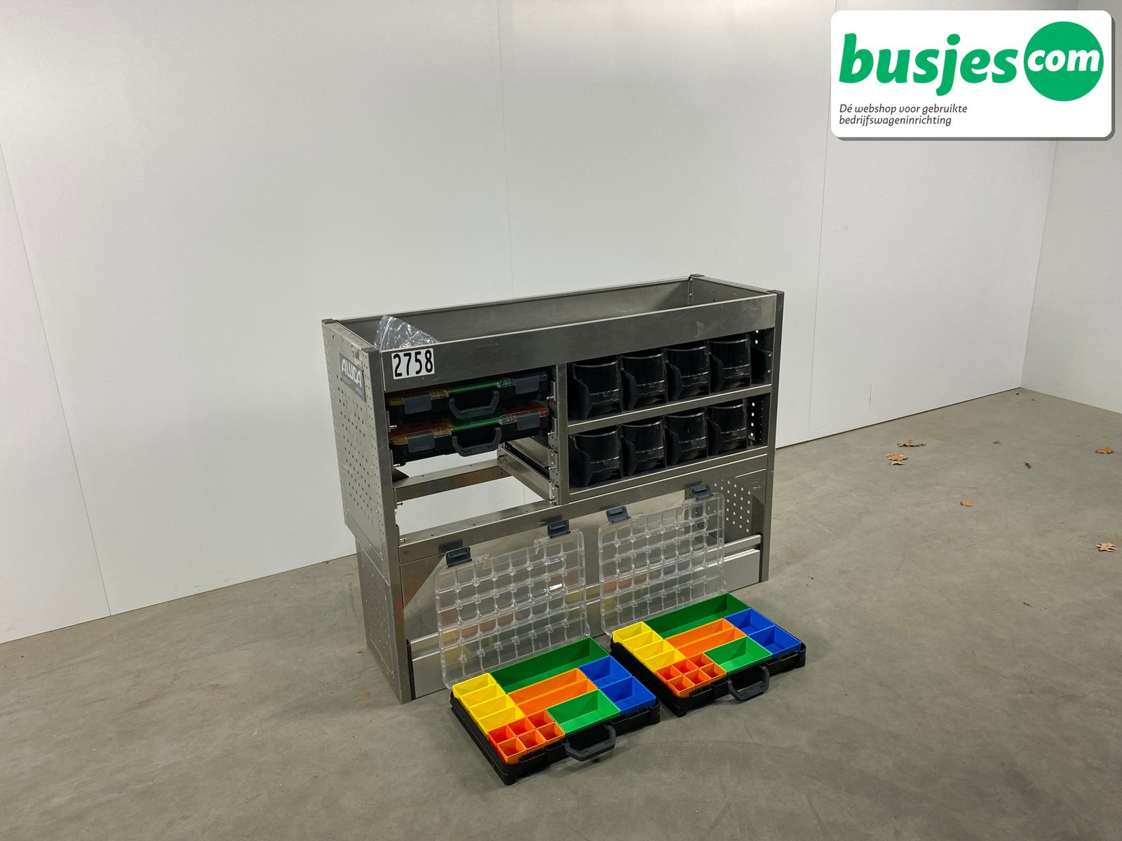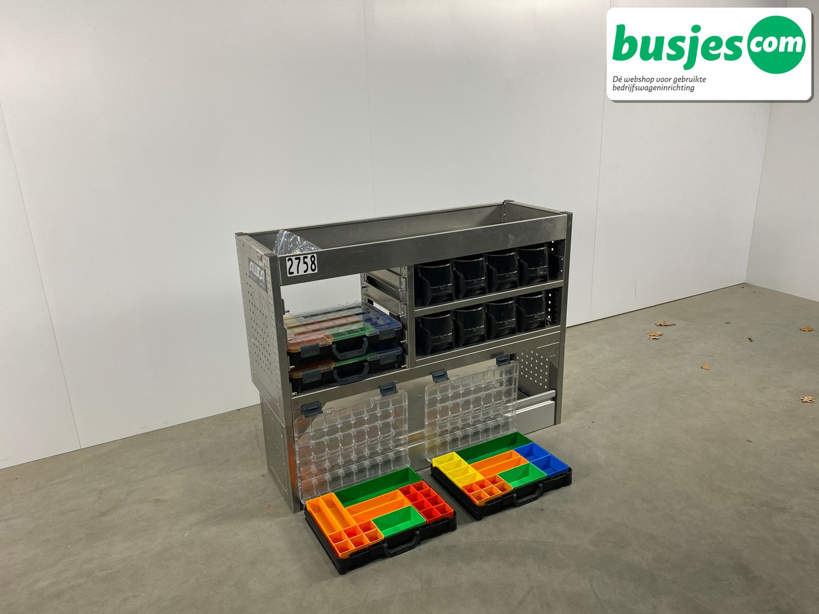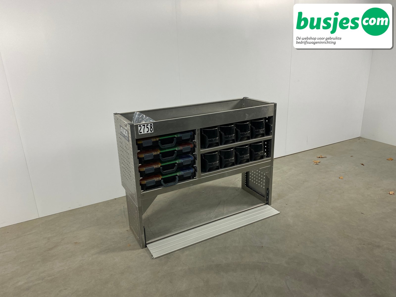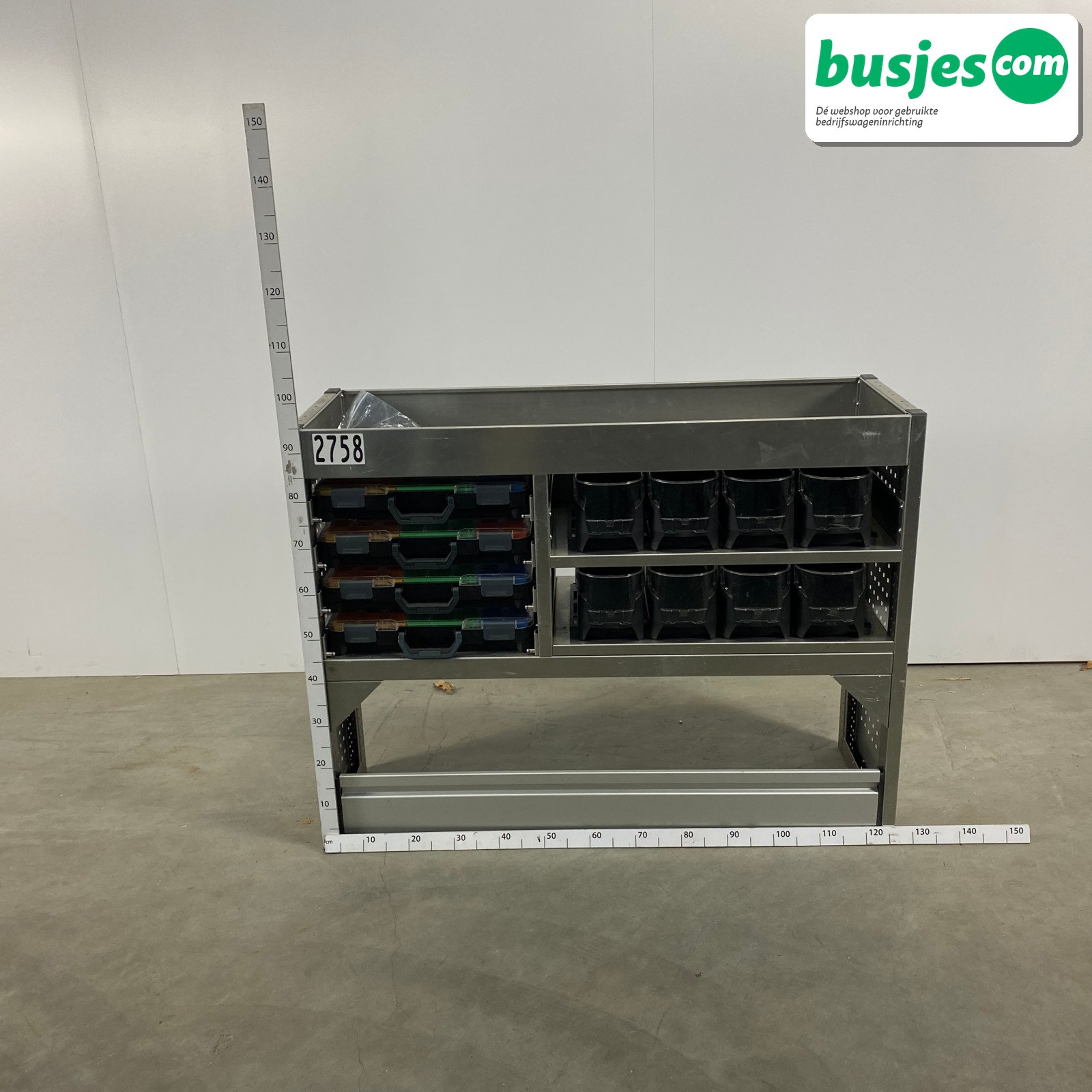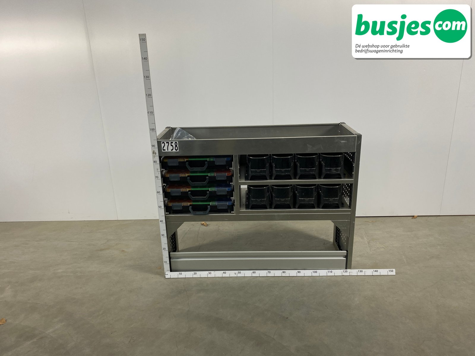 👉 Belangrijk: dit is een gebruikte inrichting. De staat is goed, maar check de afmetingen goed. Meet je voertuig zelf na of laat het doen, zodat je zeker weet dat het past.