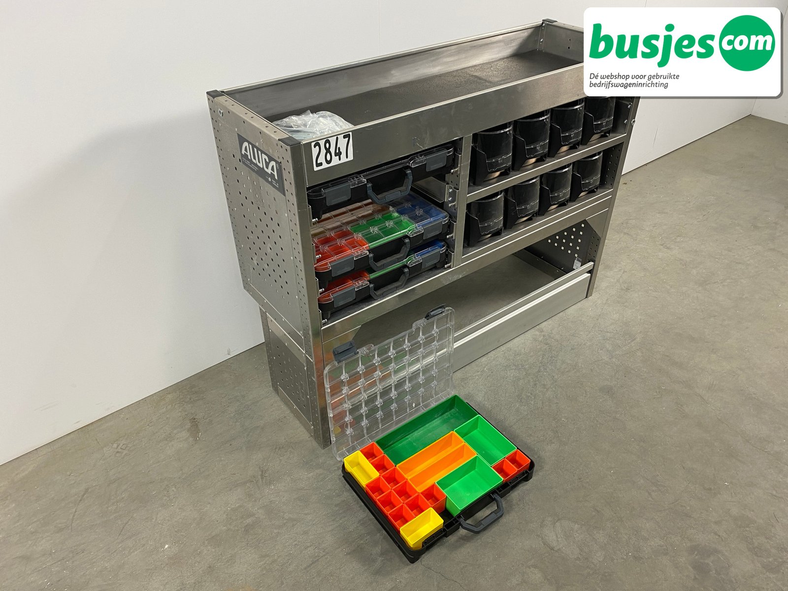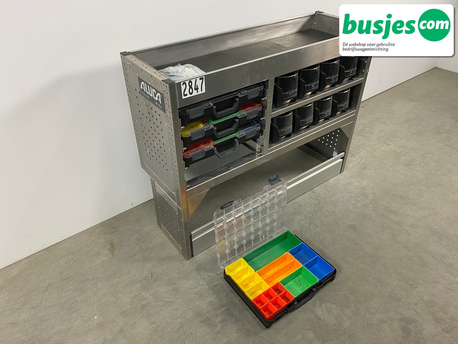 Deze gebruikte Aluca aluminium bedrijfswageninrichting is nog in topvorm. Gemaakt om lang mee te gaan én klaar voor een tweede ronde. Licht in gewicht, sterk als staal, en perfect voor het overzichtelijk vervoeren van je gereedschap en materiaal.