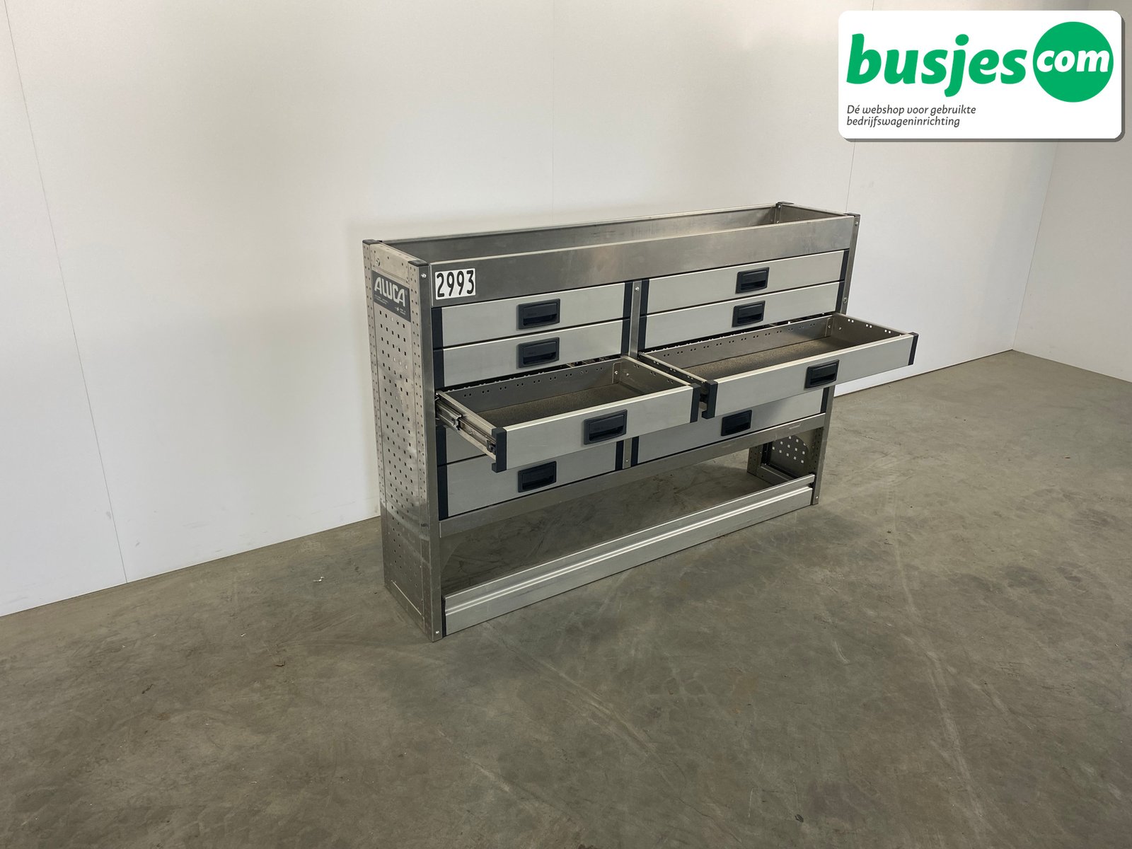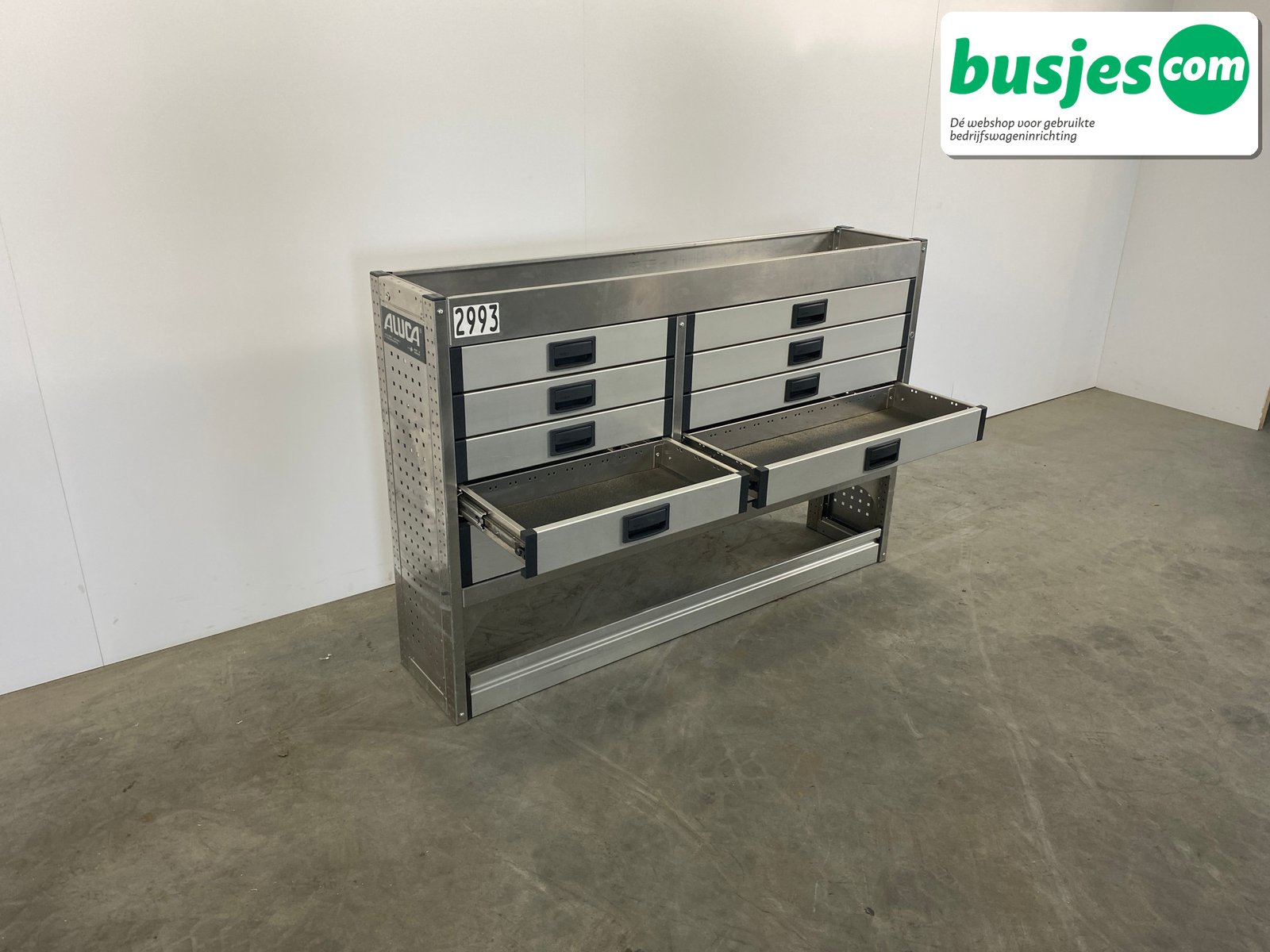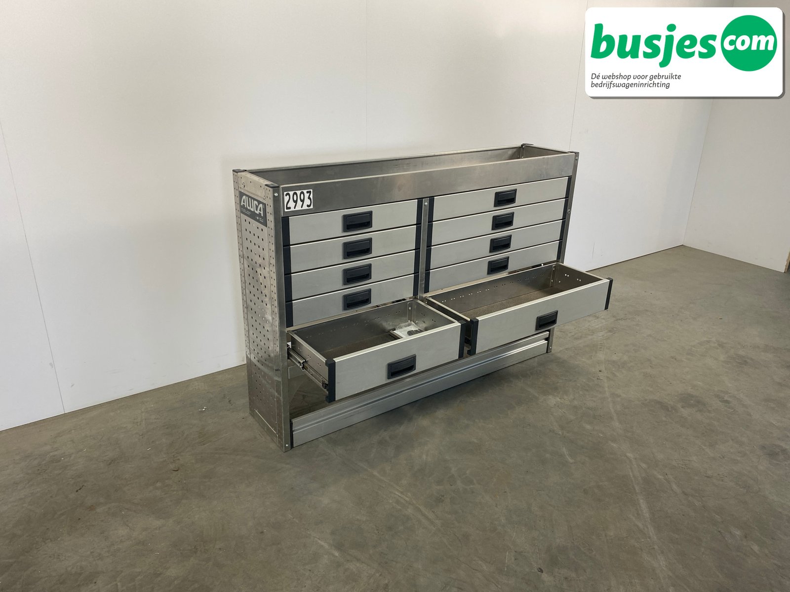 Deze gebruikte Aluca aluminium bedrijfswageninrichting is nog in topvorm. Gemaakt om lang mee te gaan én klaar voor een tweede ronde. Licht in gewicht, sterk als staal, en perfect voor het overzichtelijk vervoeren van je gereedschap en materiaal.