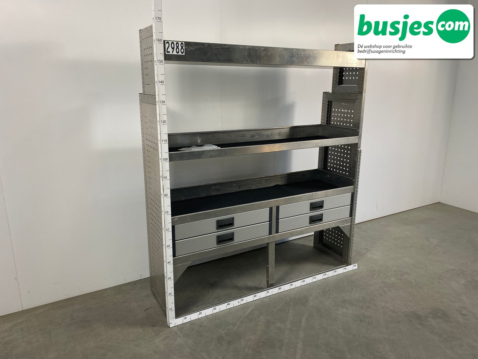 👉 Belangrijk: dit is een gebruikte inrichting. De staat is goed, maar check de afmetingen goed. Meet je voertuig zelf na of laat het doen, zodat je zeker weet dat het past.