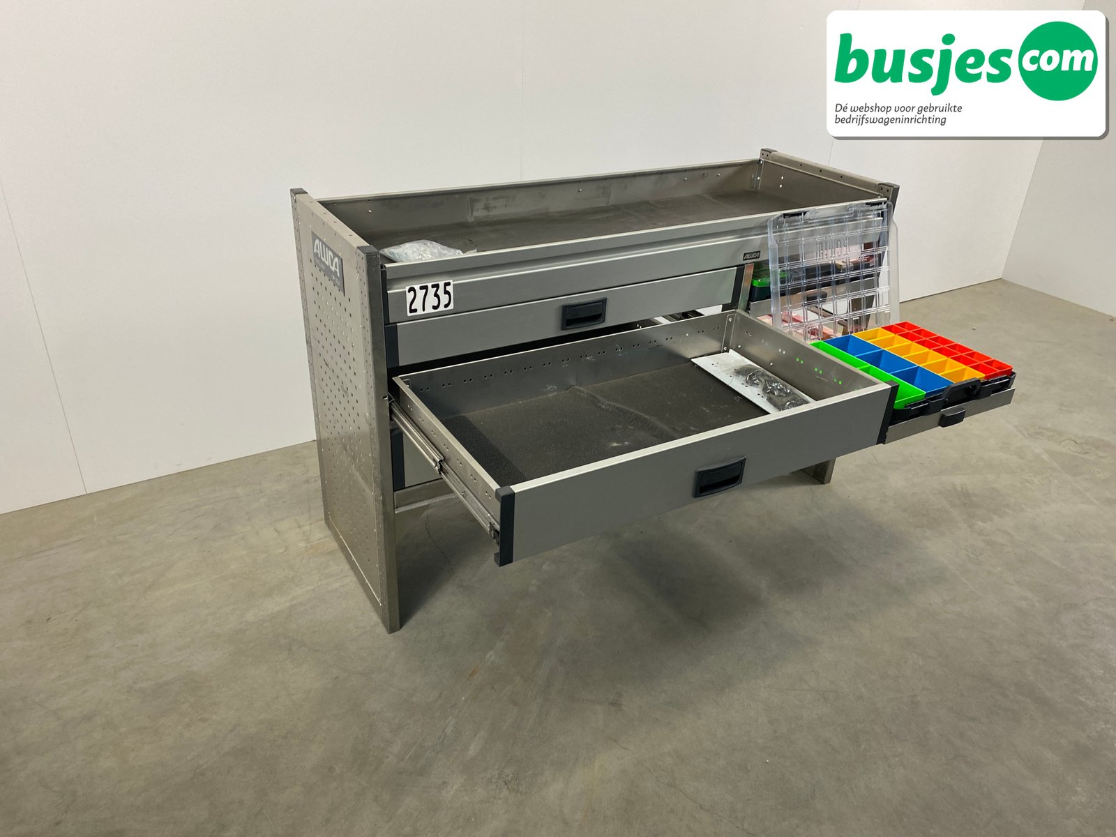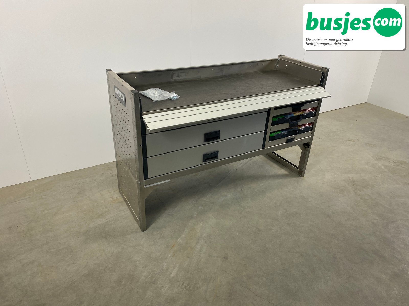 Deze gebruikte Aluca aluminium bedrijfswageninrichting is nog in topvorm. Gemaakt om lang mee te gaan én klaar voor een tweede ronde. Licht in gewicht, sterk als staal, en perfect voor het overzichtelijk vervoeren van je gereedschap en materiaal.