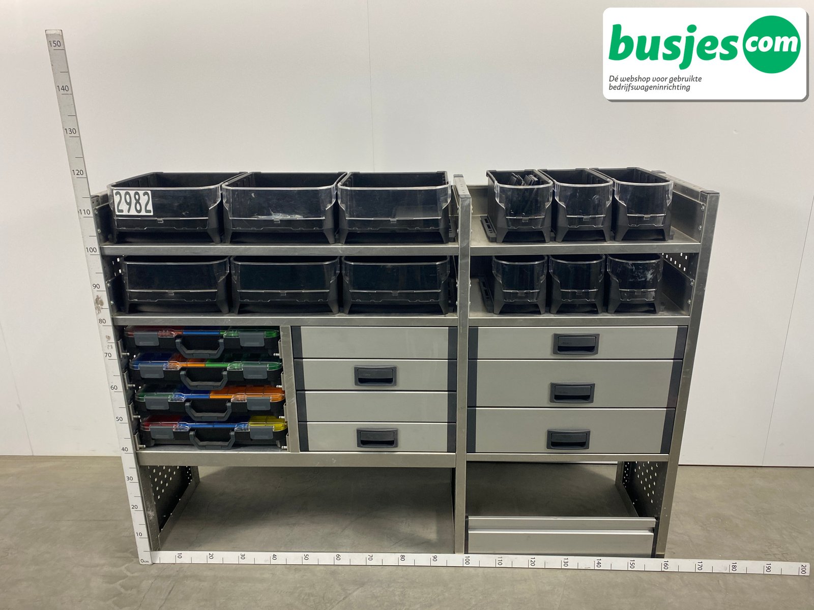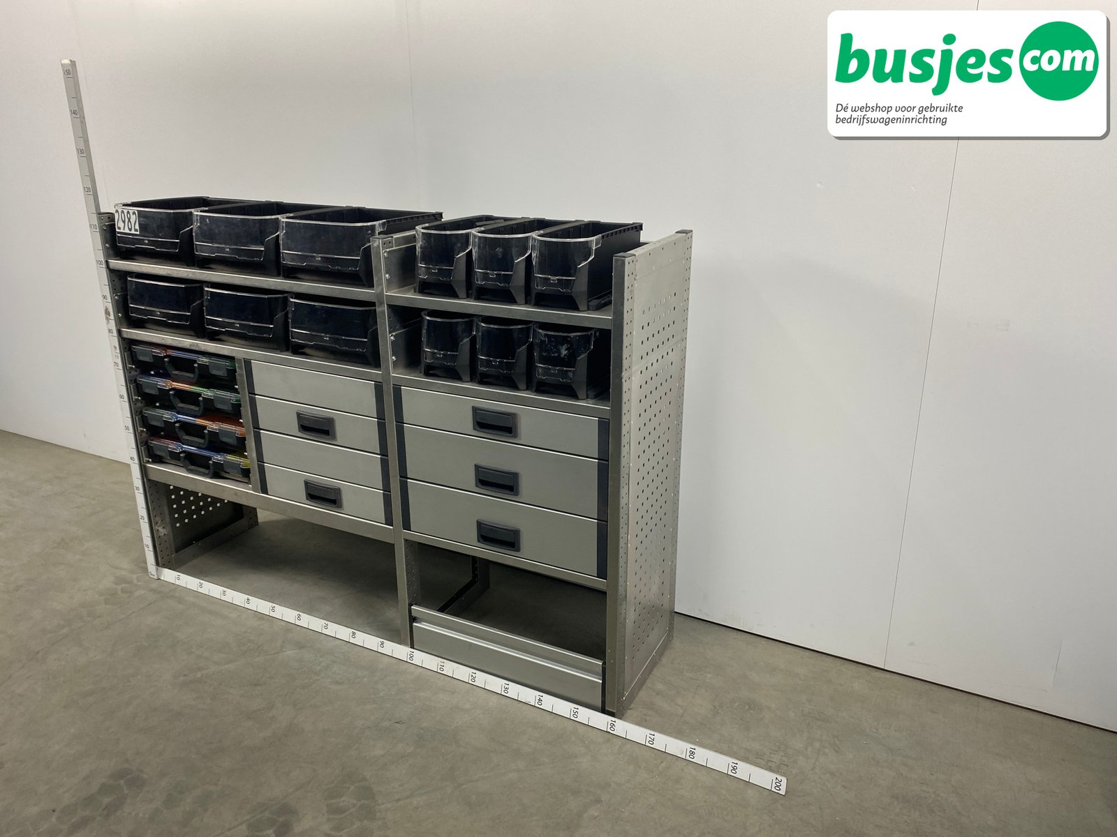 👉 Belangrijk: dit is een gebruikte inrichting. De staat is goed, maar check de afmetingen goed. Meet je voertuig zelf na of laat het doen, zodat je zeker weet dat het past.