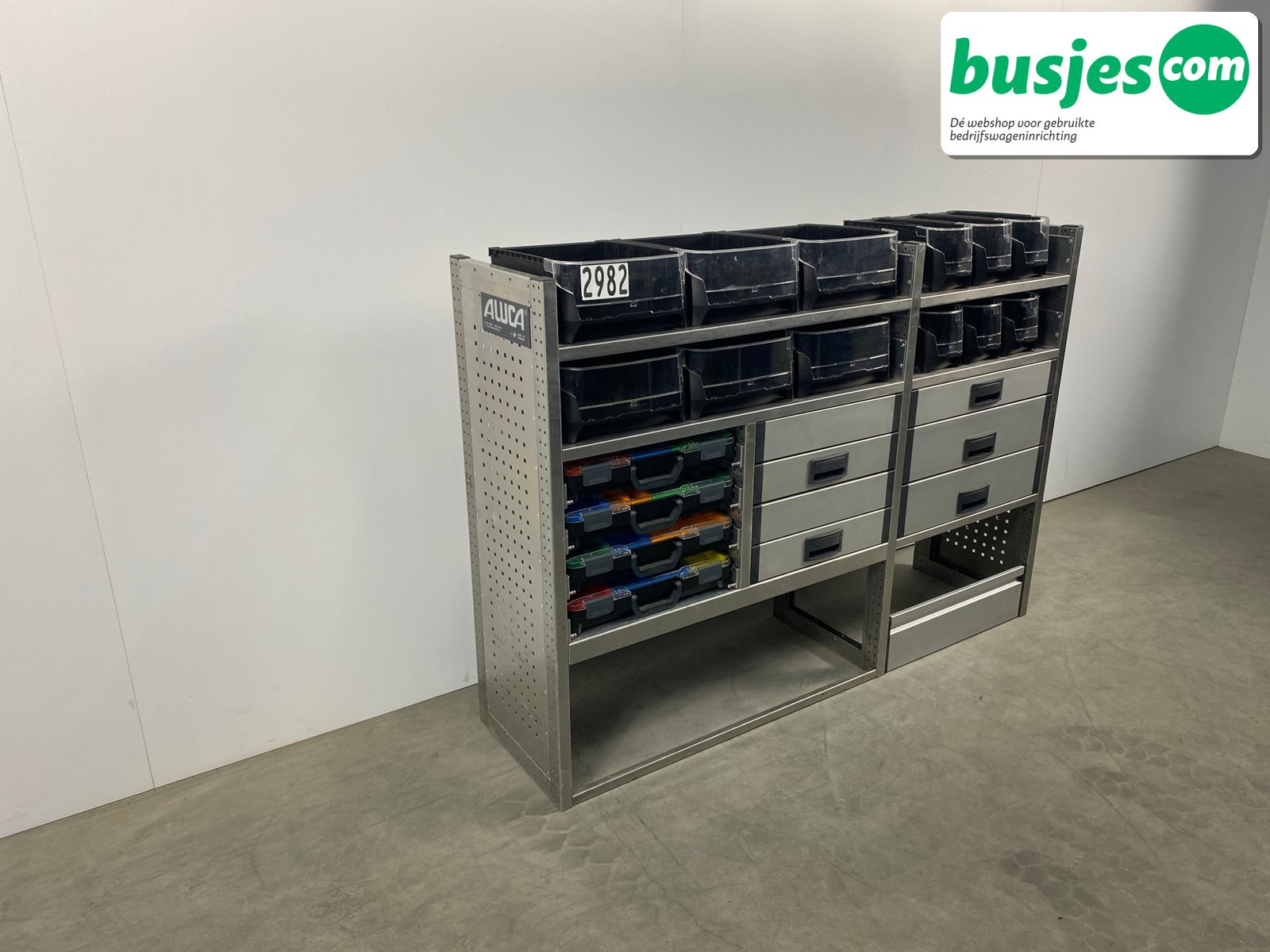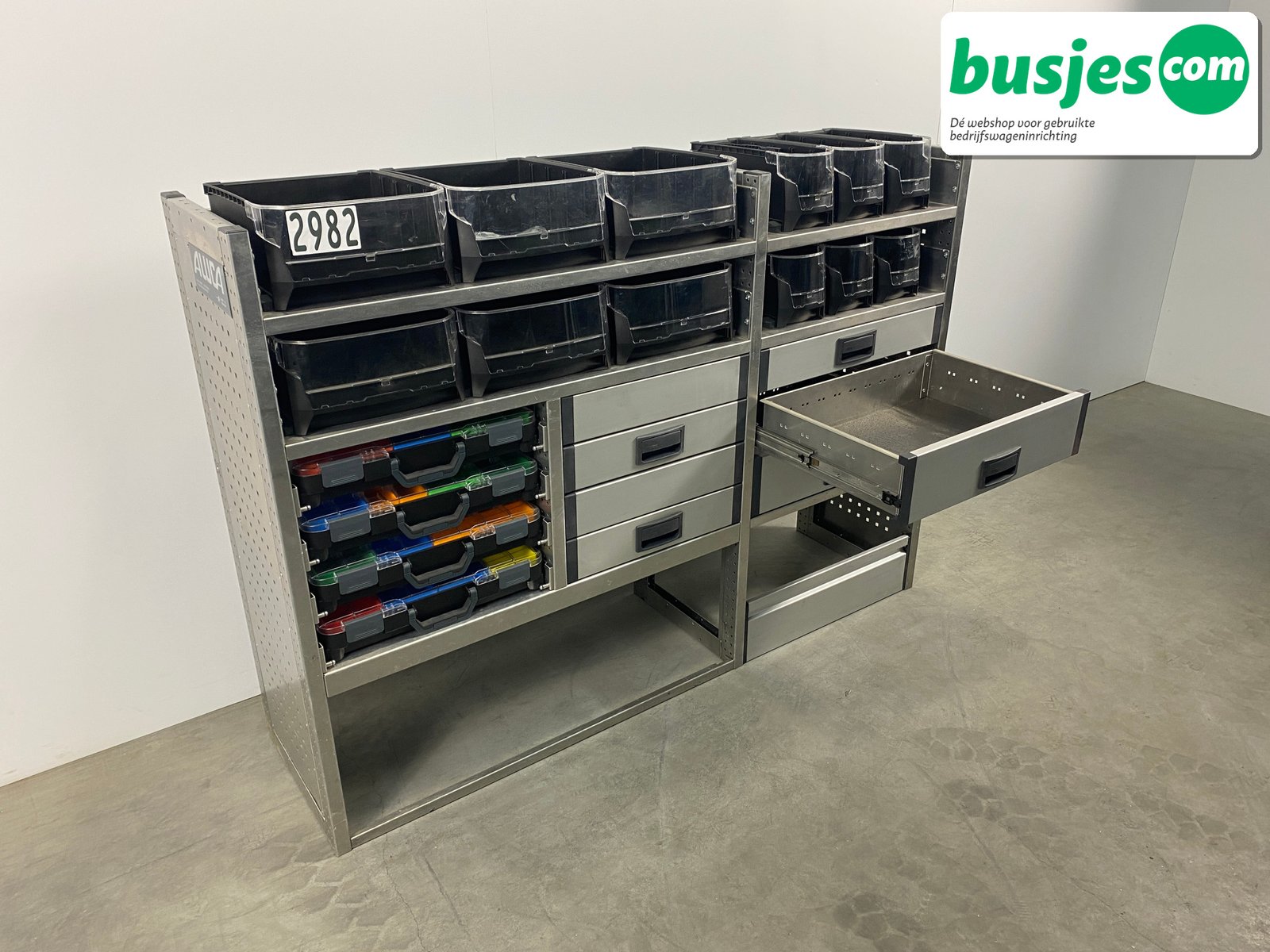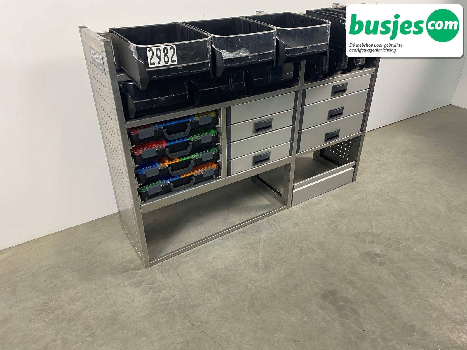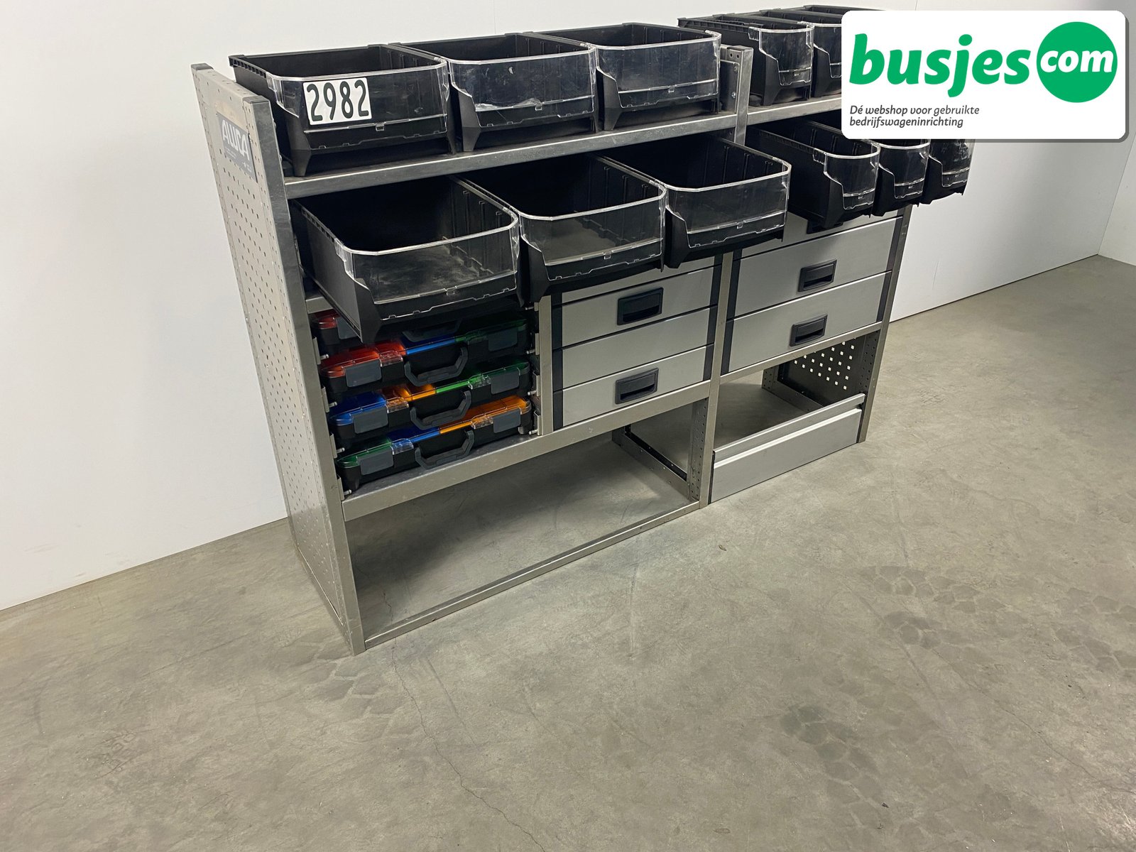 Deze gebruikte Aluca aluminium bedrijfswageninrichting is nog in topvorm. Gemaakt om lang mee te gaan én klaar voor een tweede ronde. Licht in gewicht, sterk als staal, en perfect voor het overzichtelijk vervoeren van je gereedschap en materiaal.