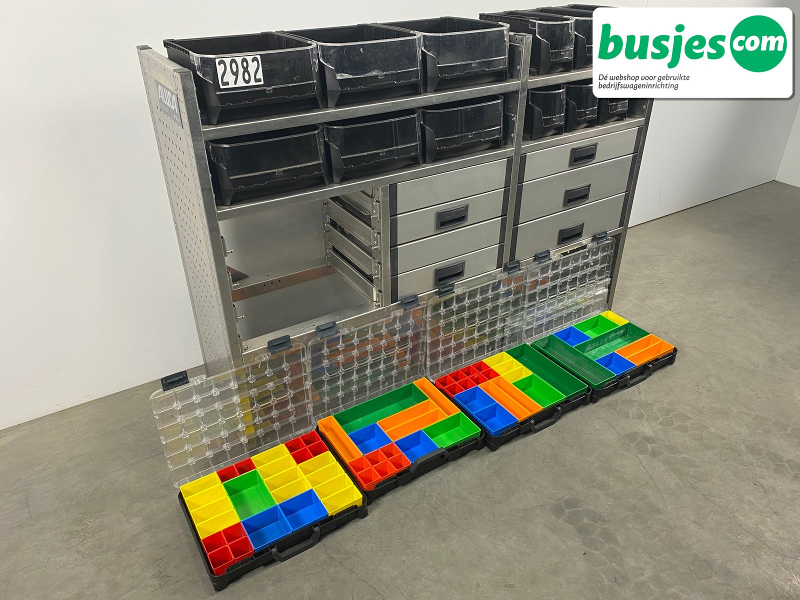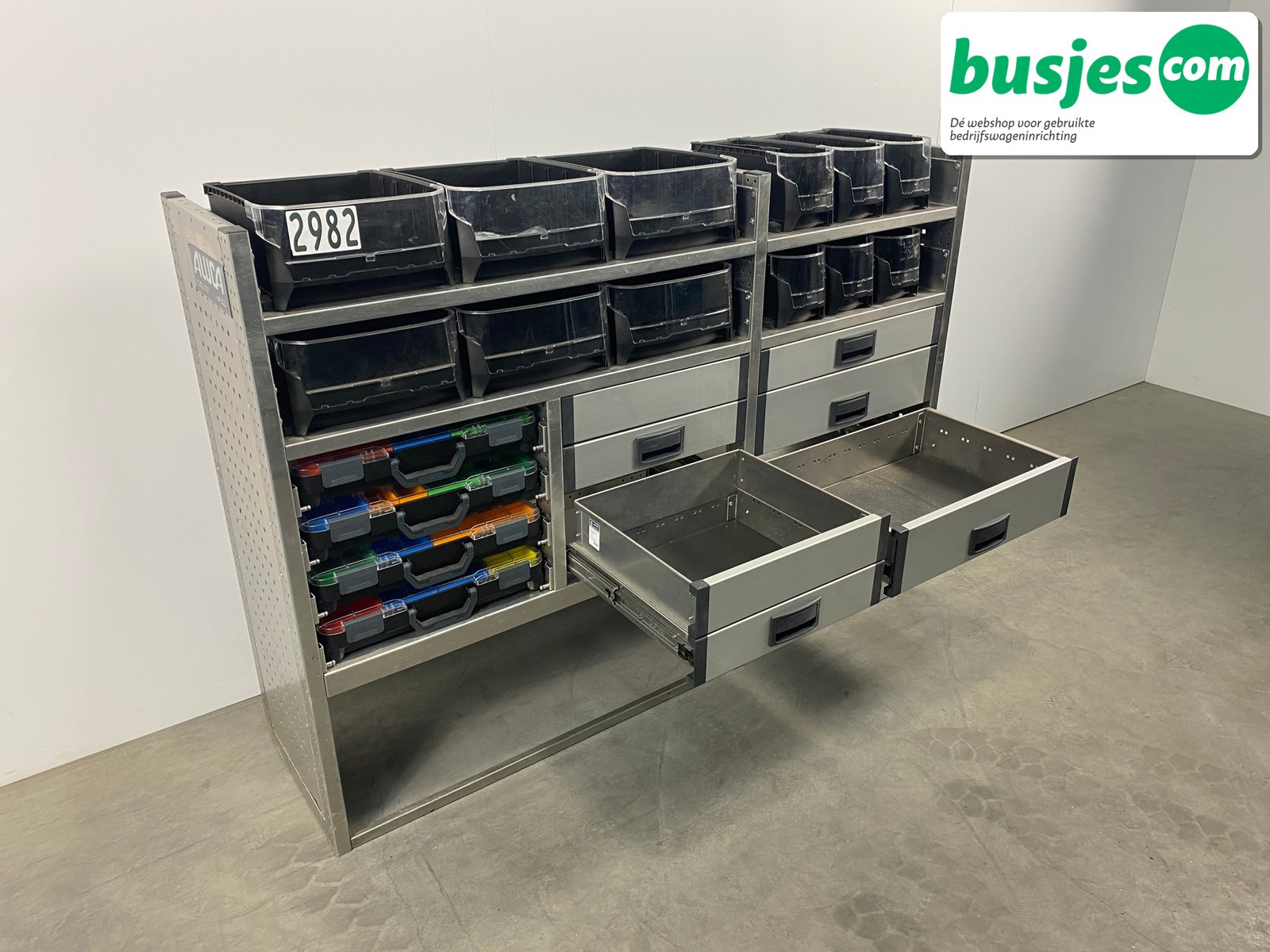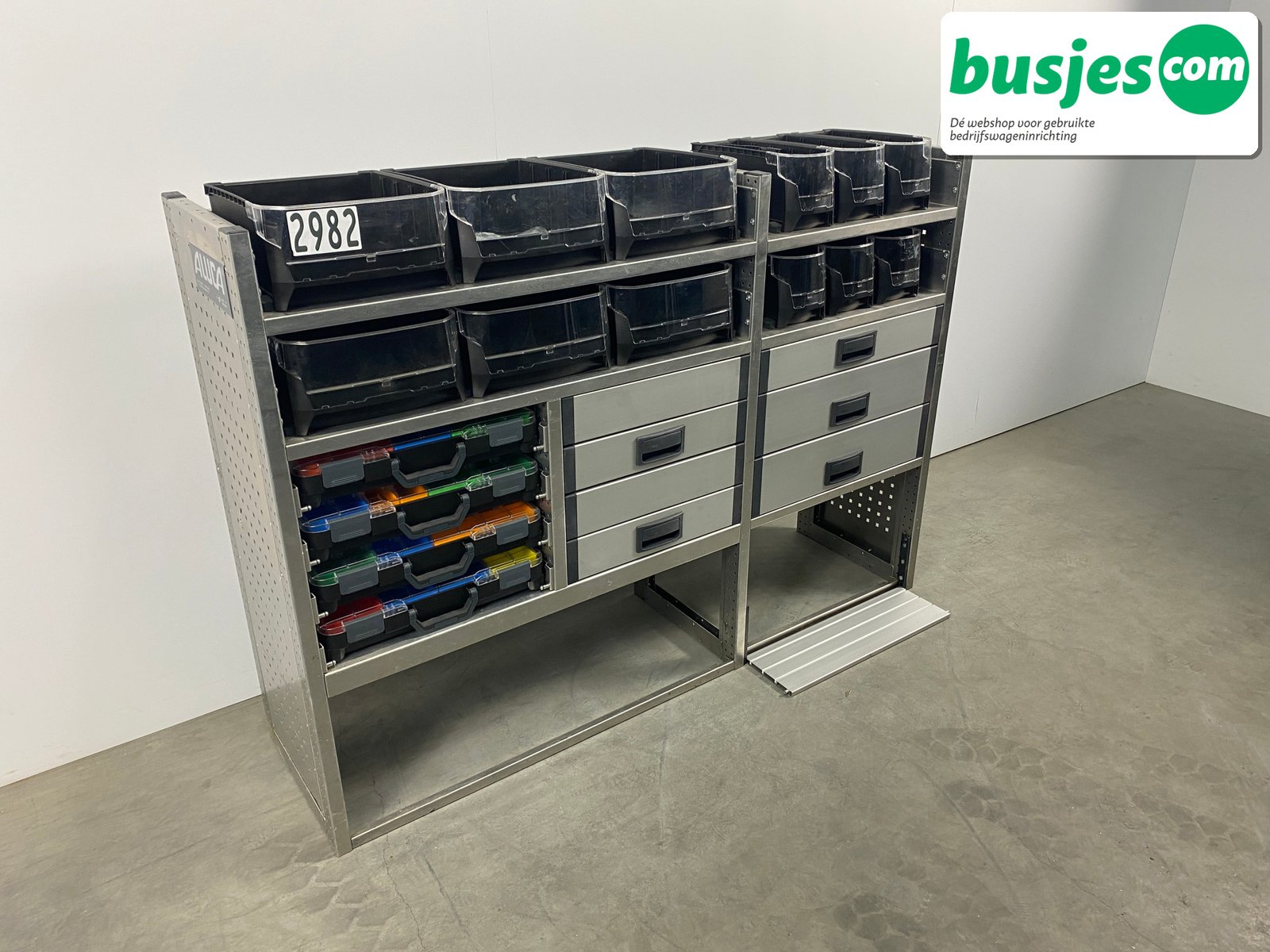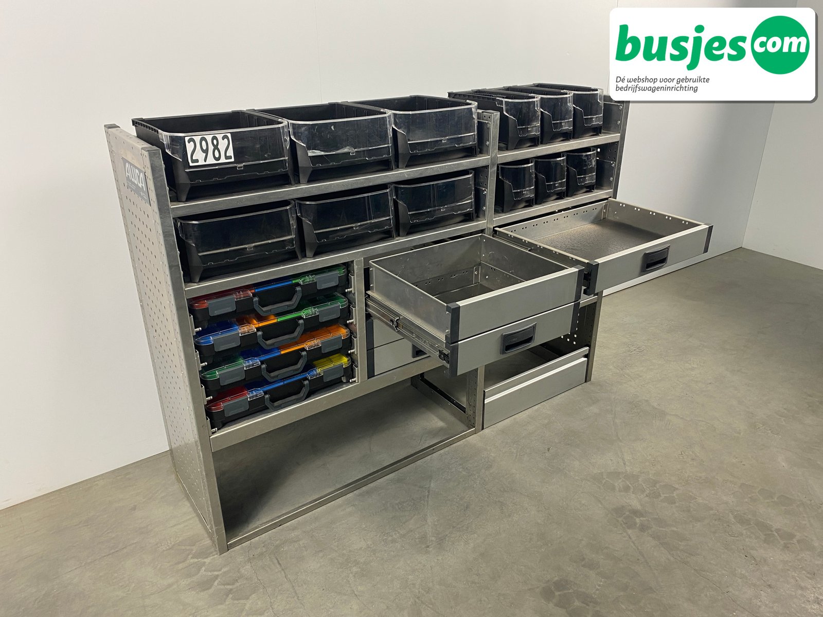 Deze gebruikte Aluca aluminium bedrijfswageninrichting is nog in topvorm. Gemaakt om lang mee te gaan én klaar voor een tweede ronde. Licht in gewicht, sterk als staal, en perfect voor het overzichtelijk vervoeren van je gereedschap en materiaal.