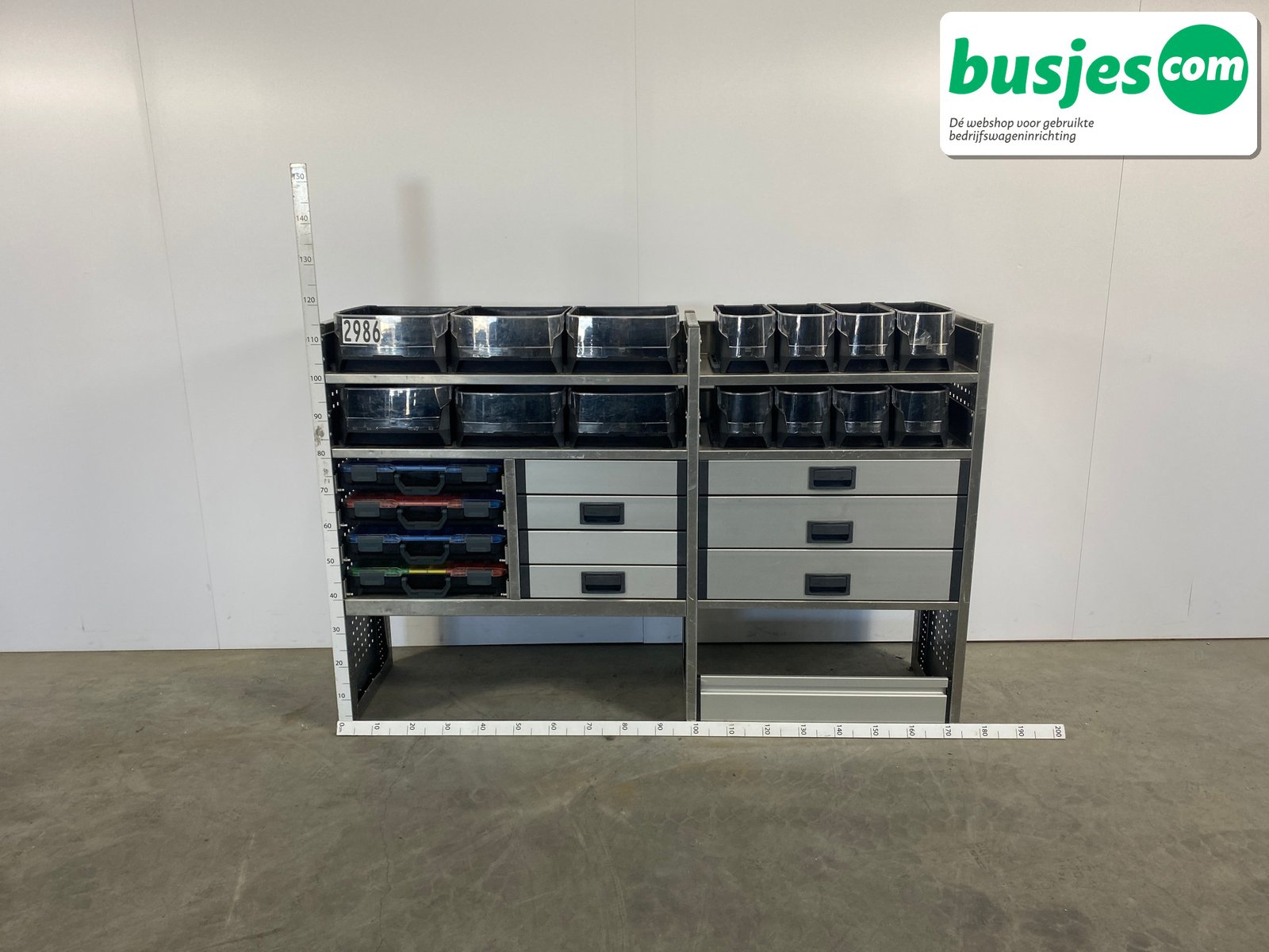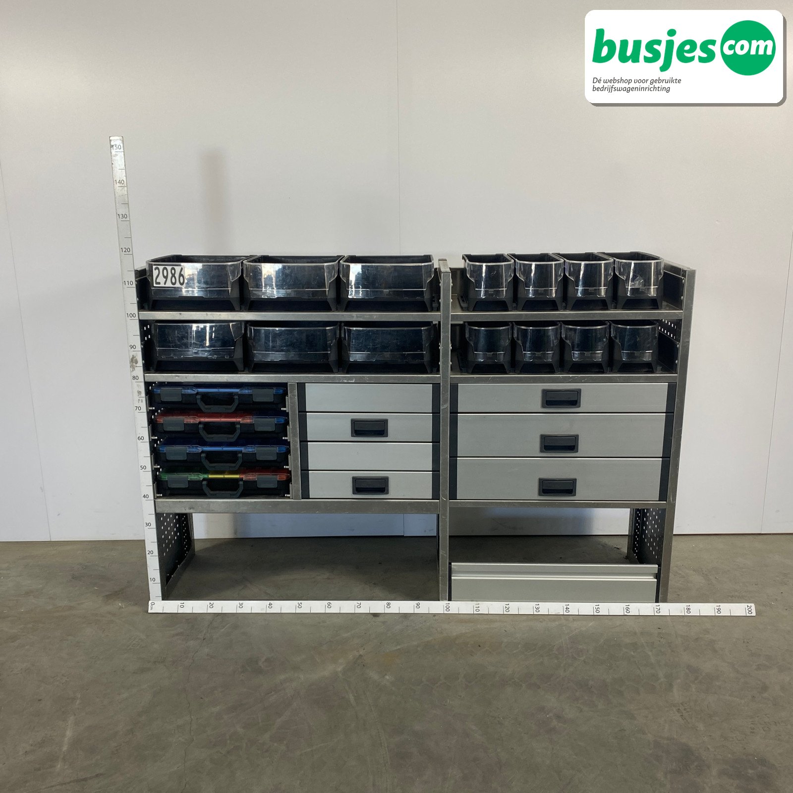 👉 Belangrijk: dit is een gebruikte inrichting. De staat is goed, maar check de afmetingen goed. Meet je voertuig zelf na of laat het doen, zodat je zeker weet dat het past.