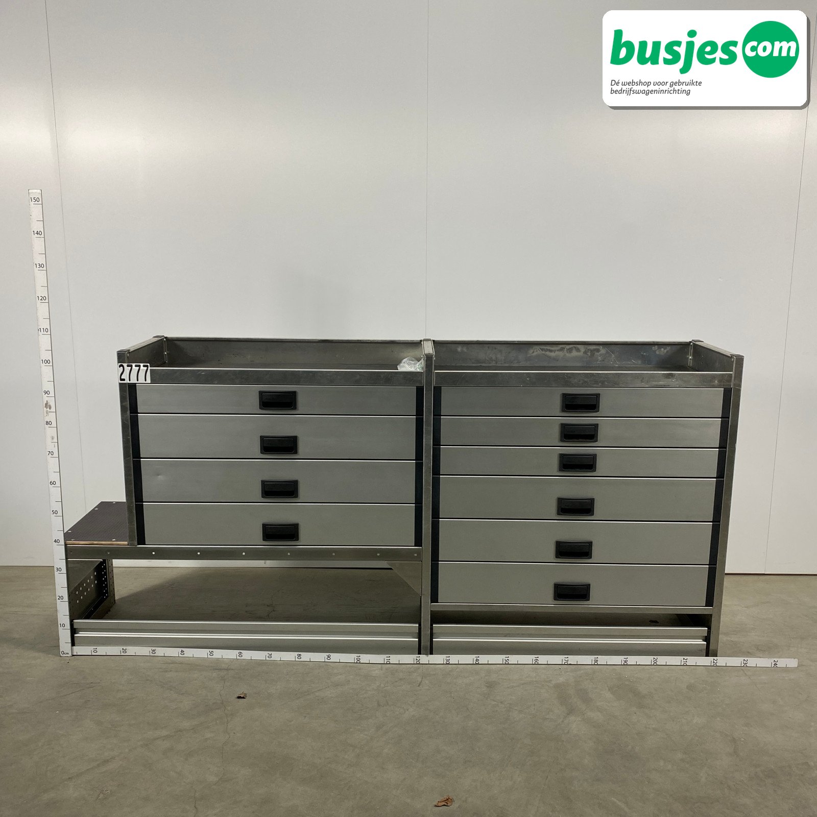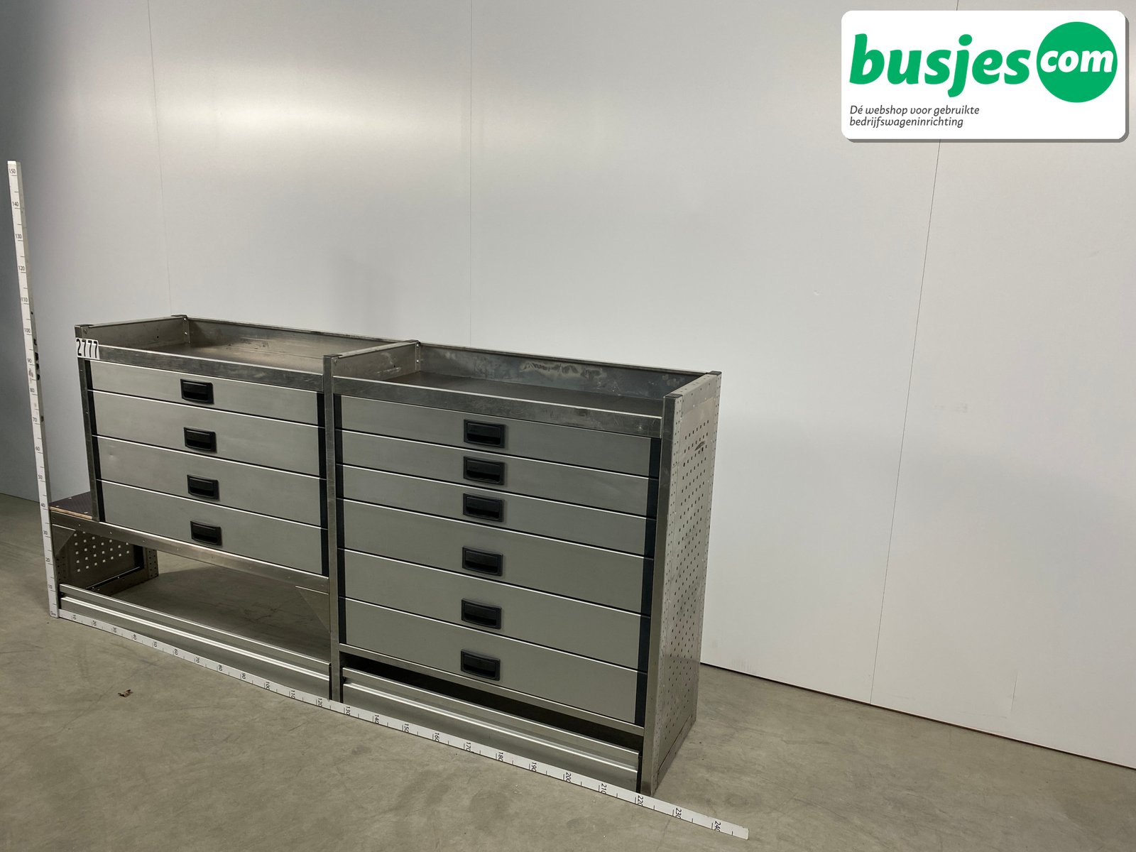 👉 Belangrijk: dit is een gebruikte inrichting. De staat is goed, maar check de afmetingen goed. Meet je voertuig zelf na of laat het doen, zodat je zeker weet dat het past.