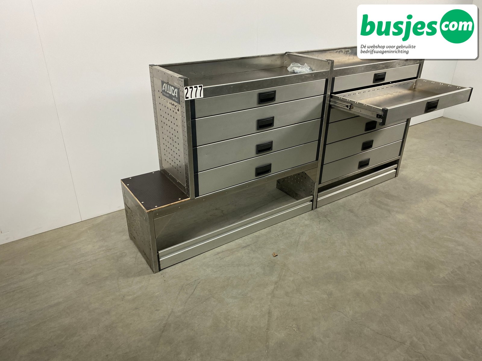 Deze gebruikte Aluca aluminium bedrijfswageninrichting is nog in topvorm. Gemaakt om lang mee te gaan én klaar voor een tweede ronde. Licht in gewicht, sterk als staal, en perfect voor het overzichtelijk vervoeren van je gereedschap en materiaal.