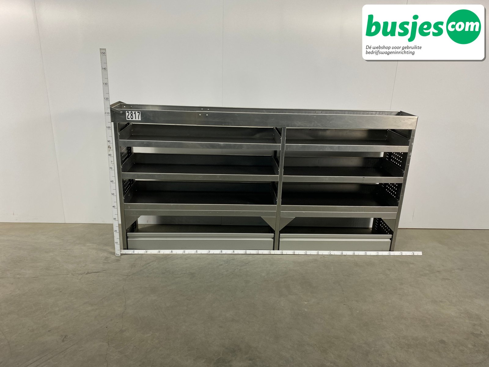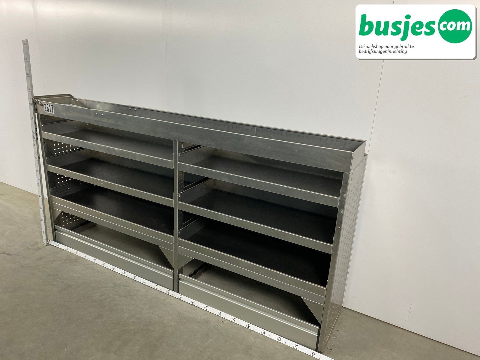 👉 Belangrijk: dit is een gebruikte inrichting. De staat is goed, maar check de afmetingen goed. Meet je voertuig zelf na of laat het doen, zodat je zeker weet dat het past.