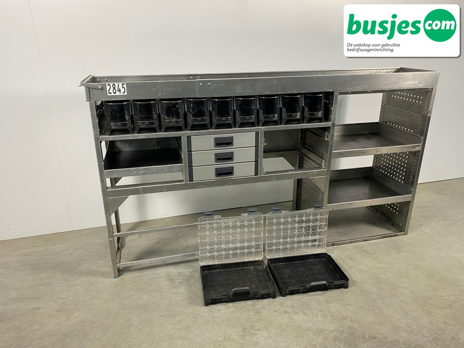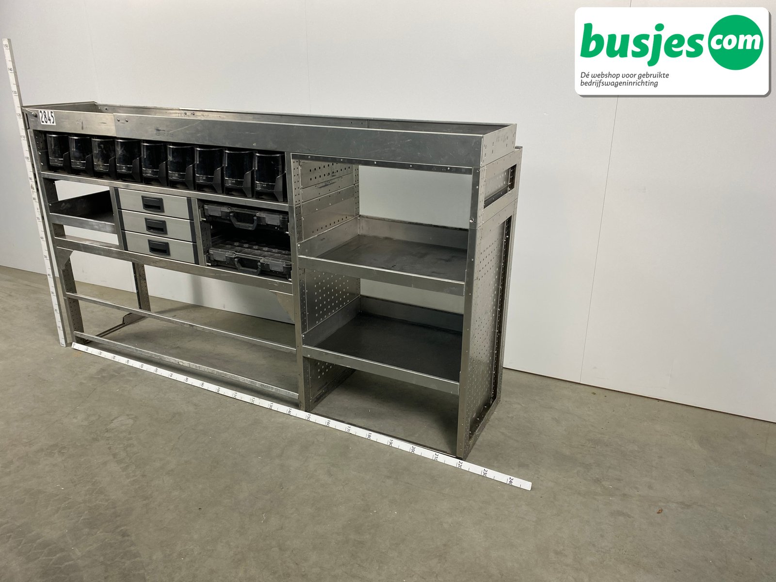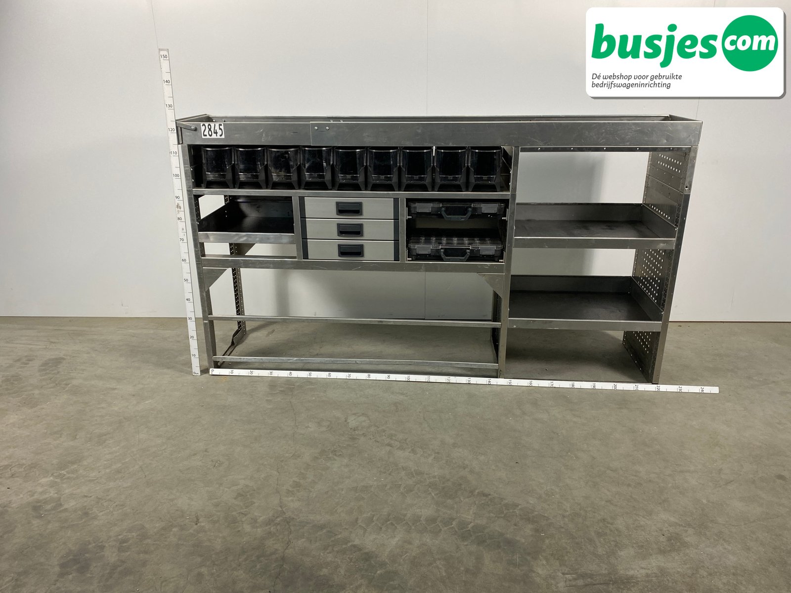 👉 Belangrijk: dit is een gebruikte inrichting. De staat is goed, maar check de afmetingen goed. Meet je voertuig zelf na of laat het doen, zodat je zeker weet dat het past.