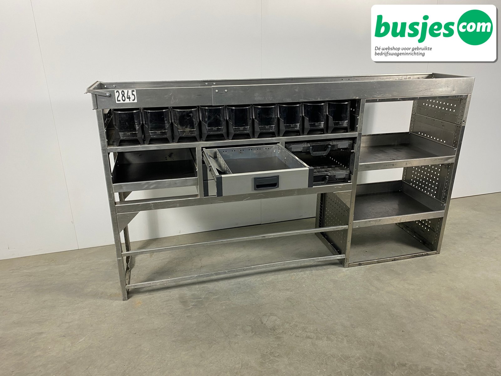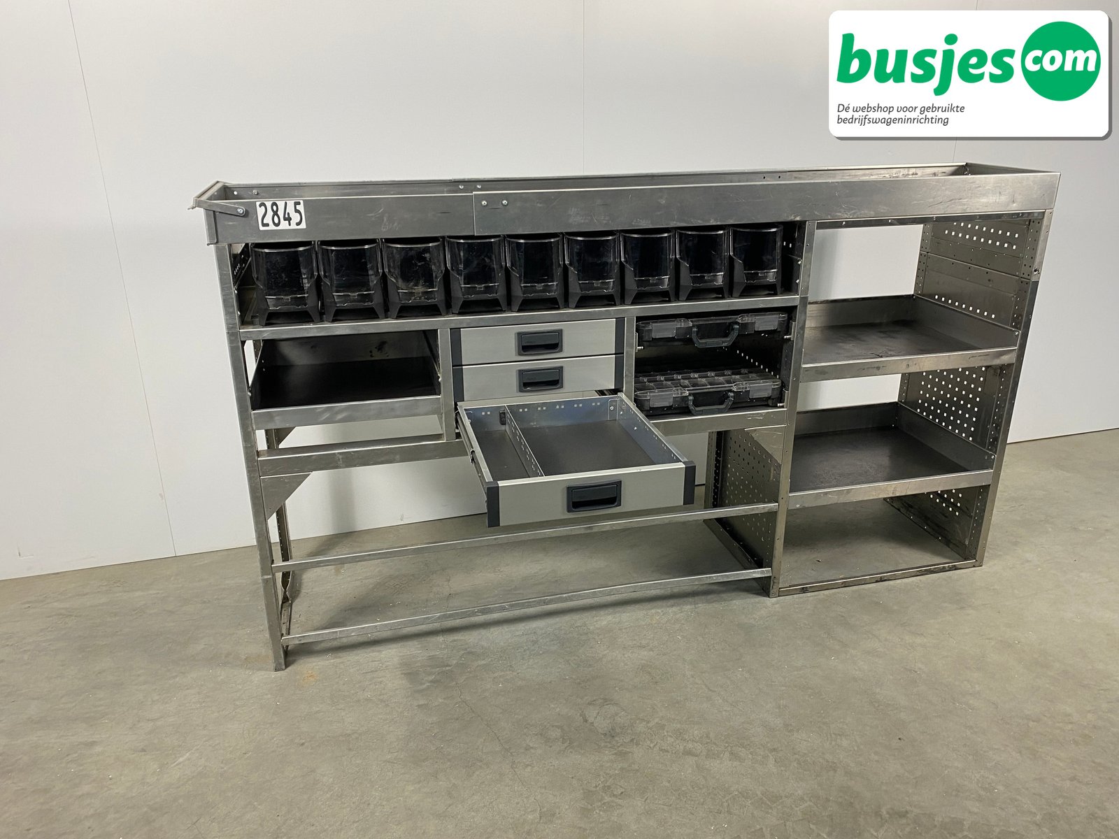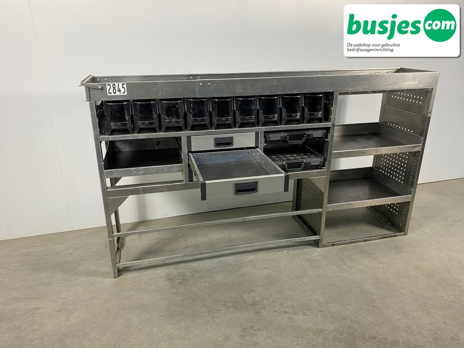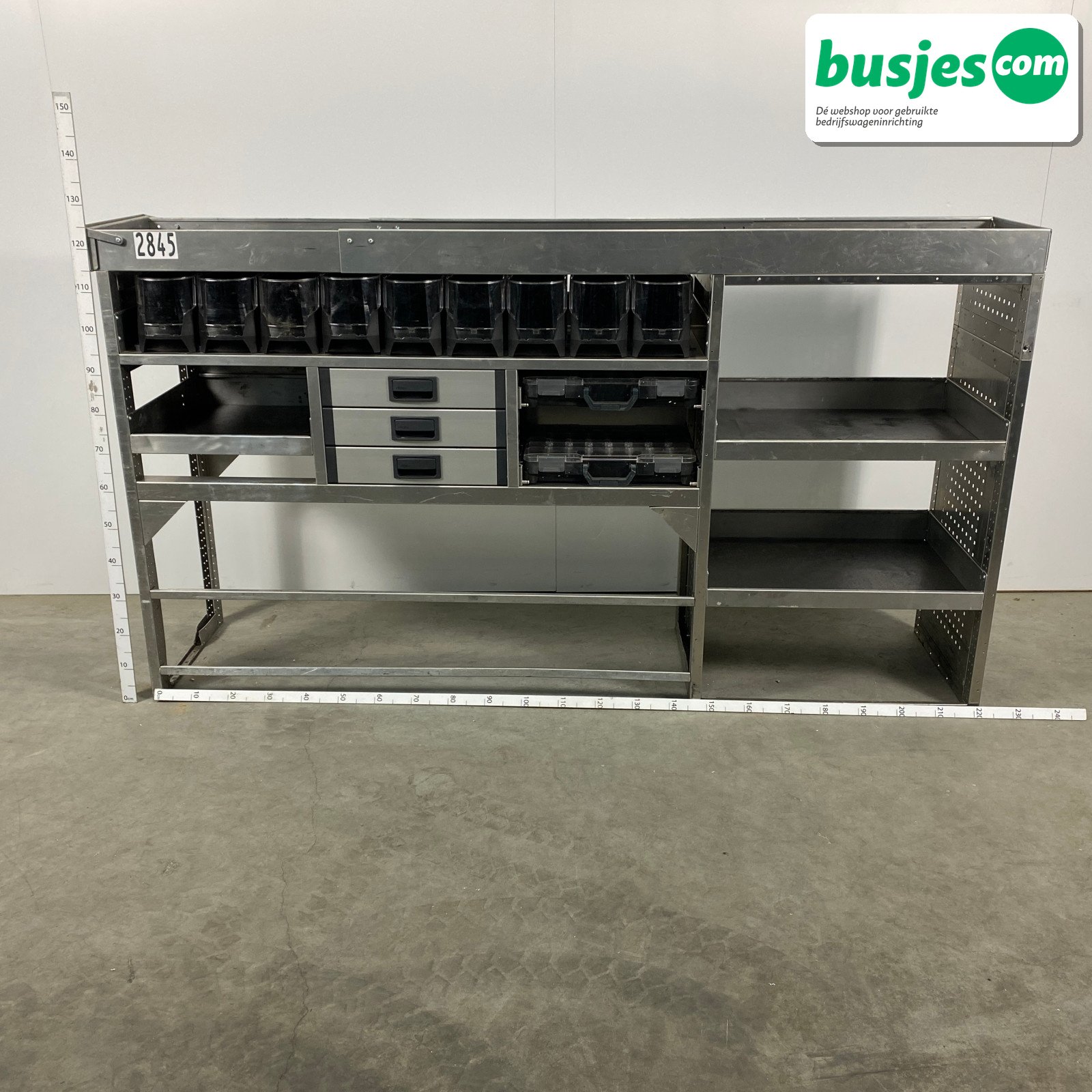 👉 Belangrijk: dit is een gebruikte inrichting. De staat is goed, maar check de afmetingen goed. Meet je voertuig zelf na of laat het doen, zodat je zeker weet dat het past.