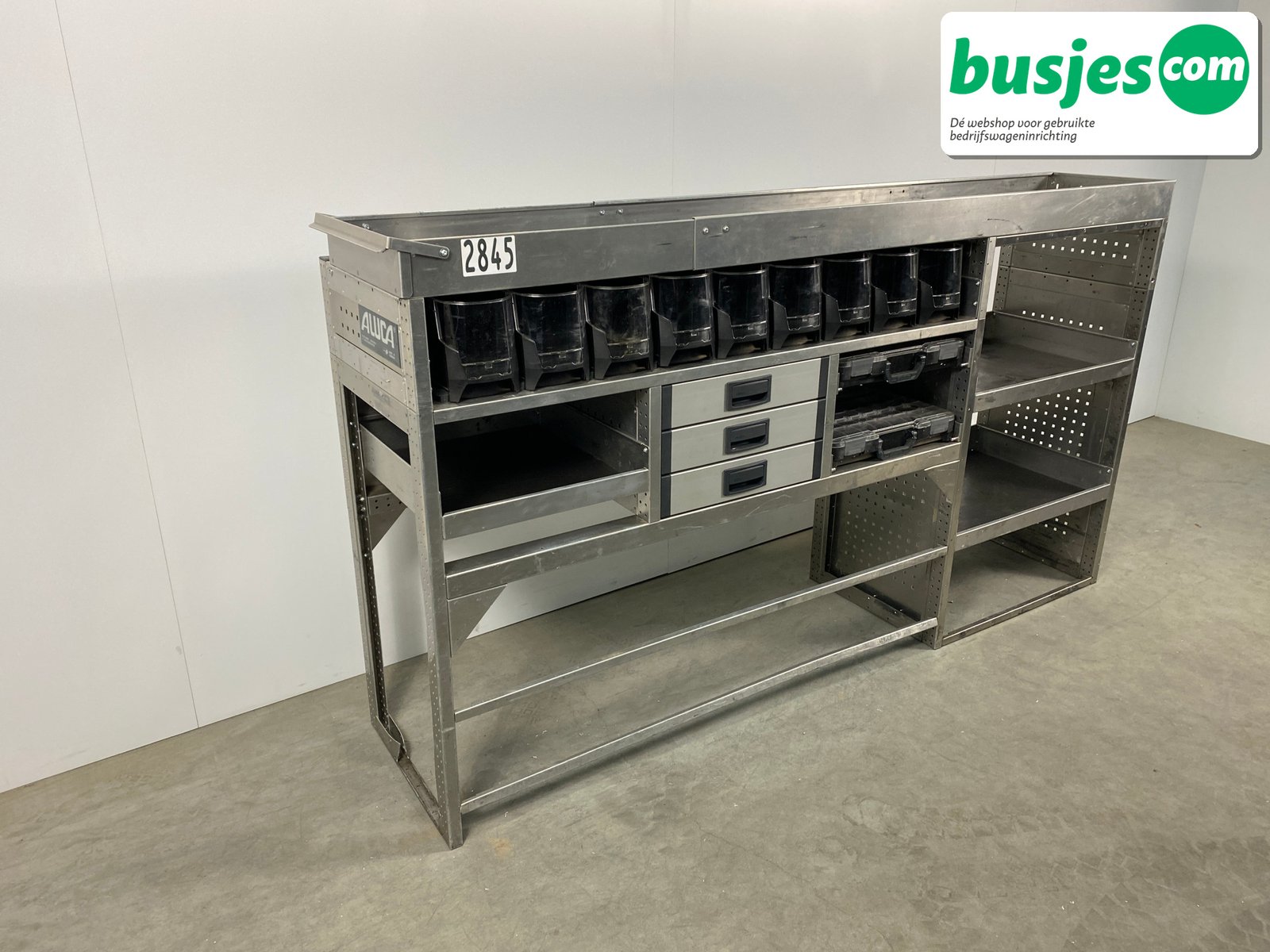 Deze gebruikte Aluca aluminium bedrijfswageninrichting is nog in topvorm. Gemaakt om lang mee te gaan én klaar voor een tweede ronde. Licht in gewicht, sterk als staal, en perfect voor het overzichtelijk vervoeren van je gereedschap en materiaal.