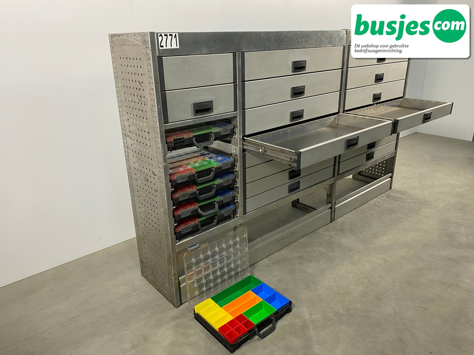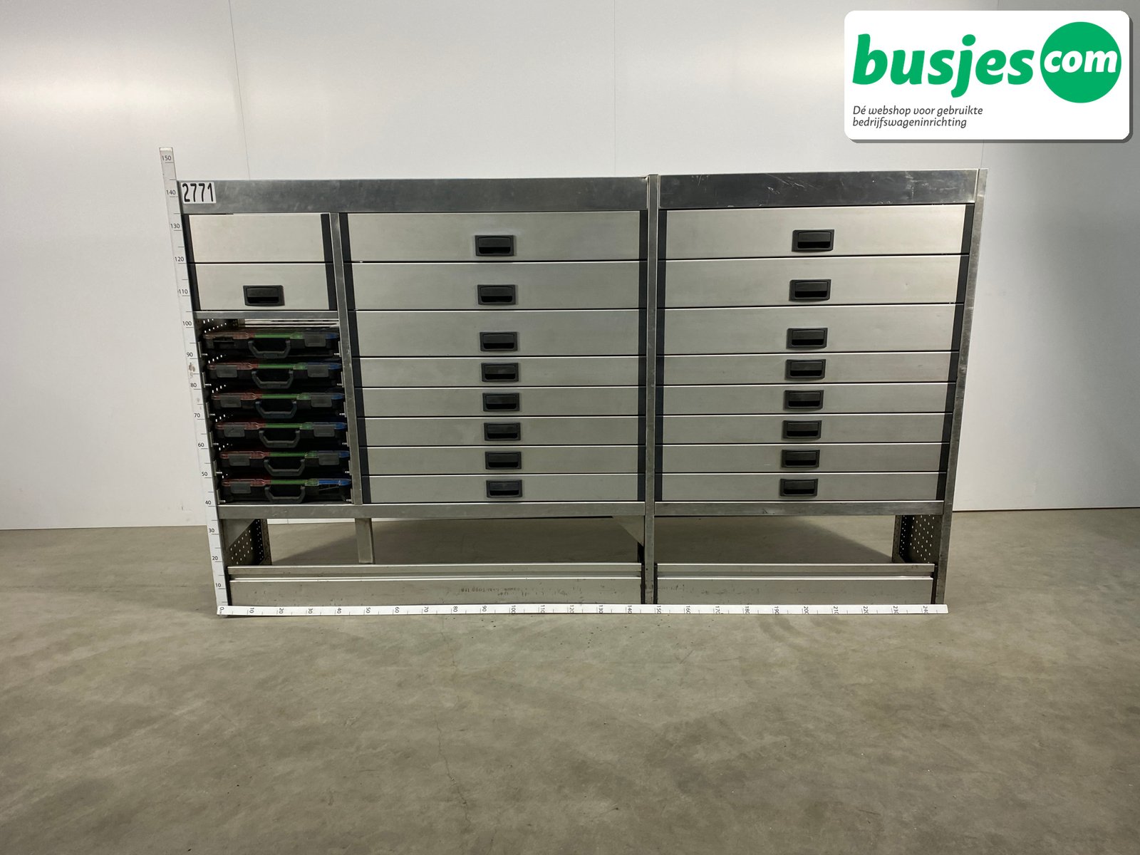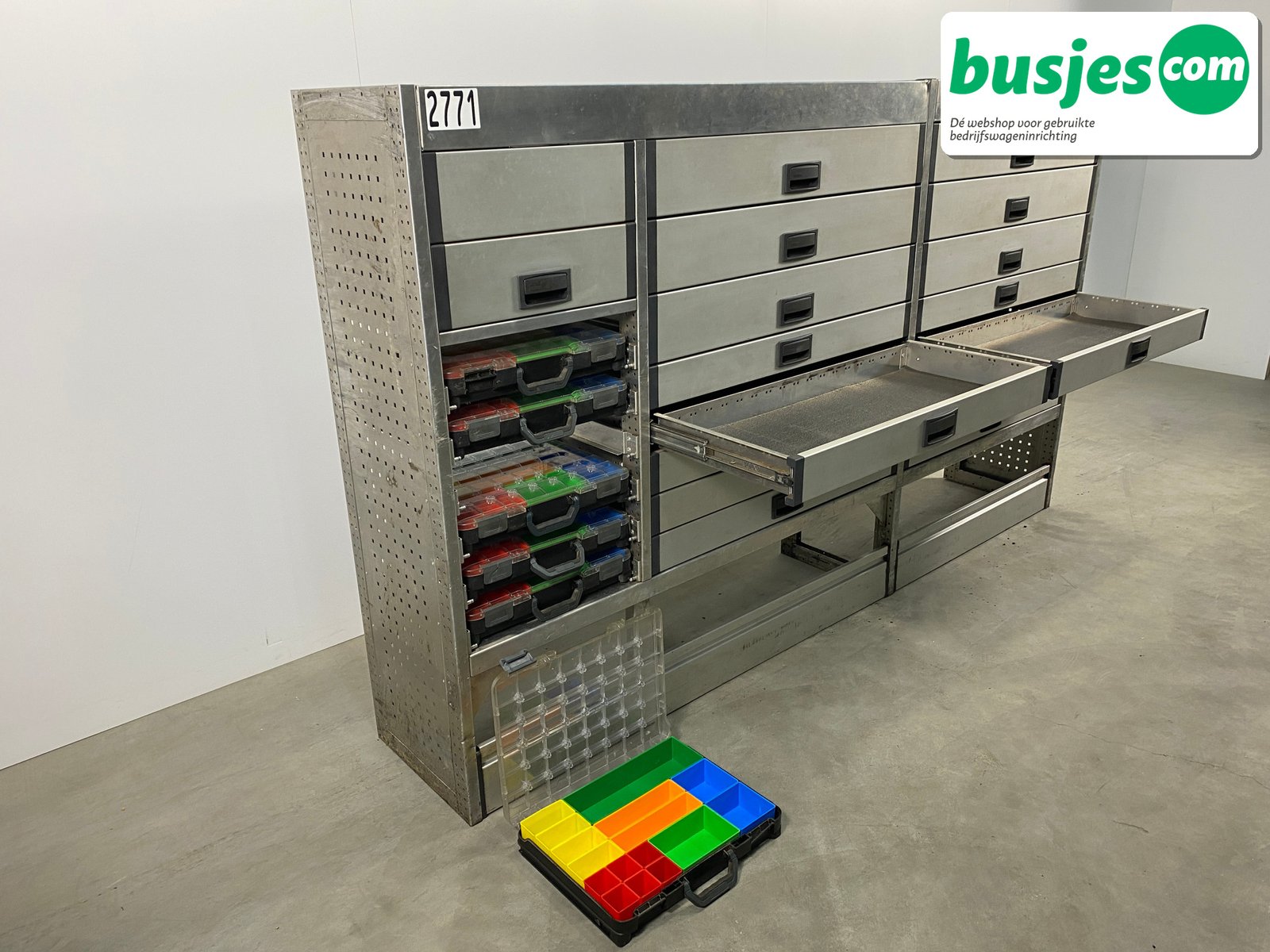 👉 Belangrijk: dit is een gebruikte inrichting. De staat is goed, maar check de afmetingen goed. Meet je voertuig zelf na of laat het doen, zodat je zeker weet dat het past.
