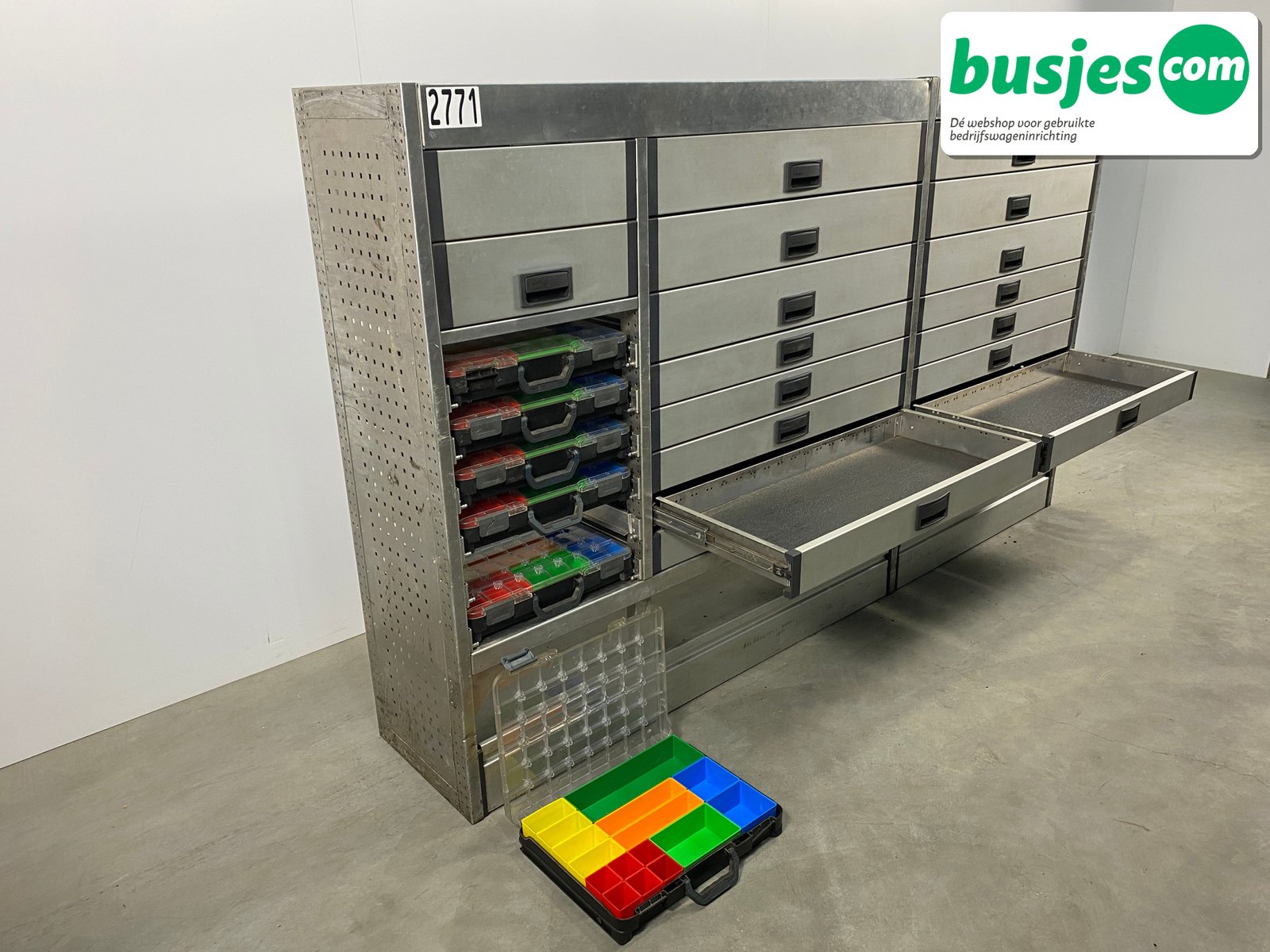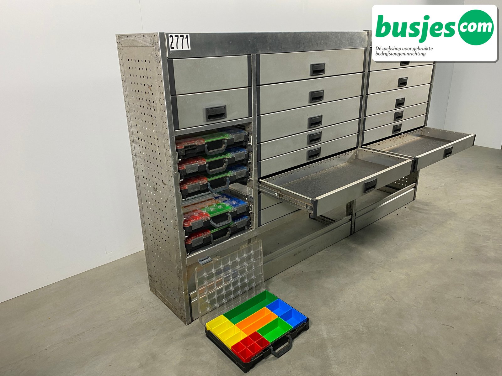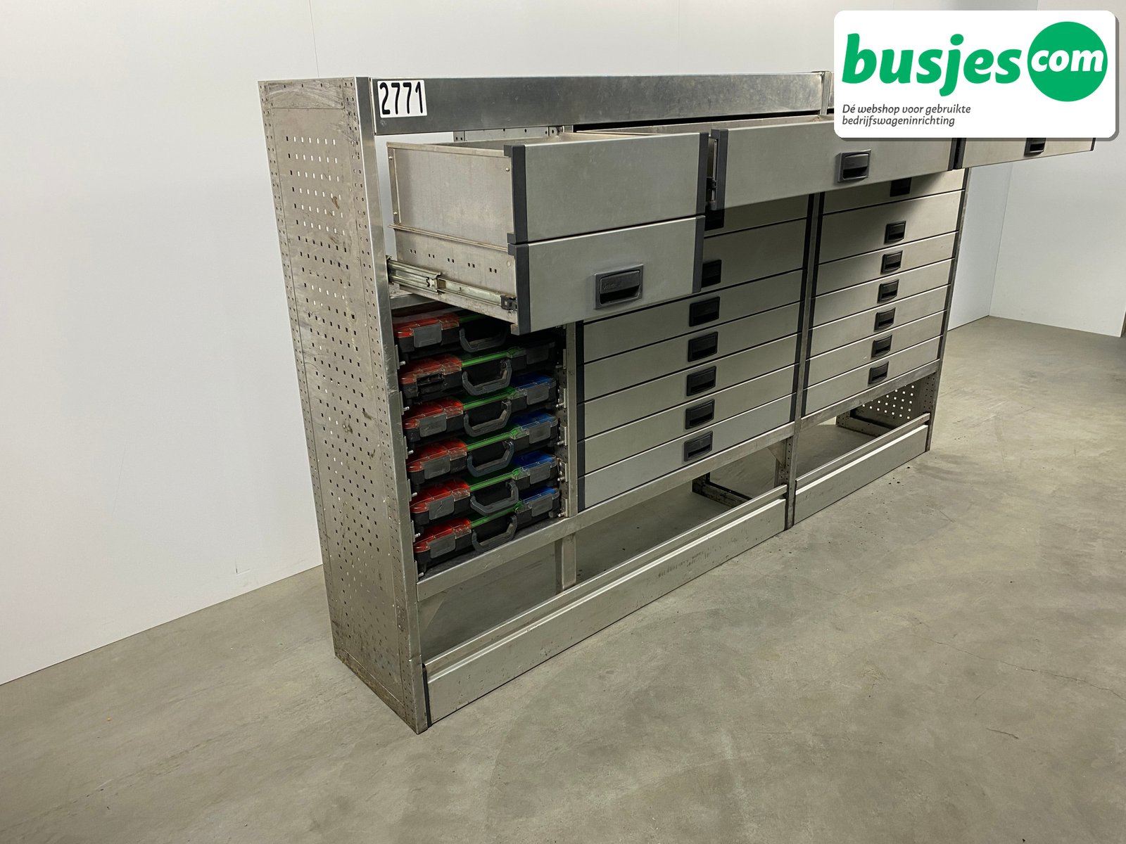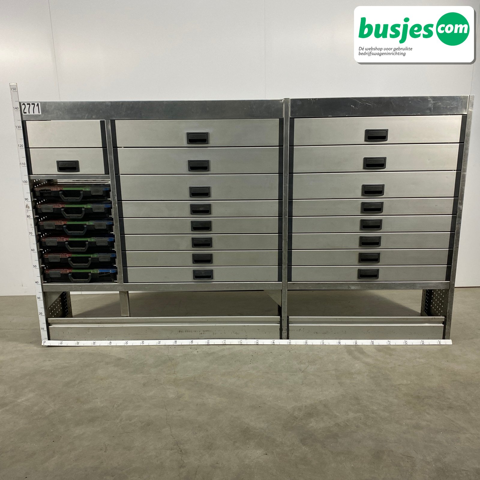 👉 Belangrijk: dit is een gebruikte inrichting. De staat is goed, maar check de afmetingen goed. Meet je voertuig zelf na of laat het doen, zodat je zeker weet dat het past.