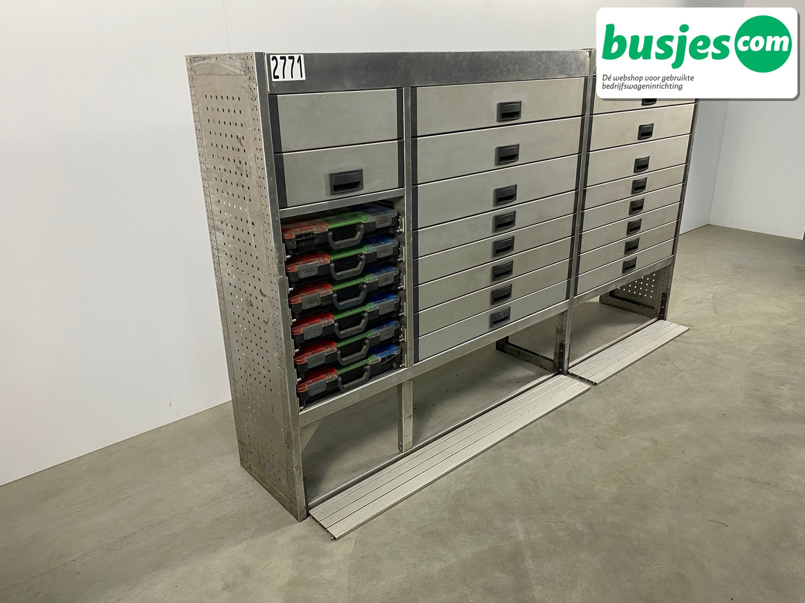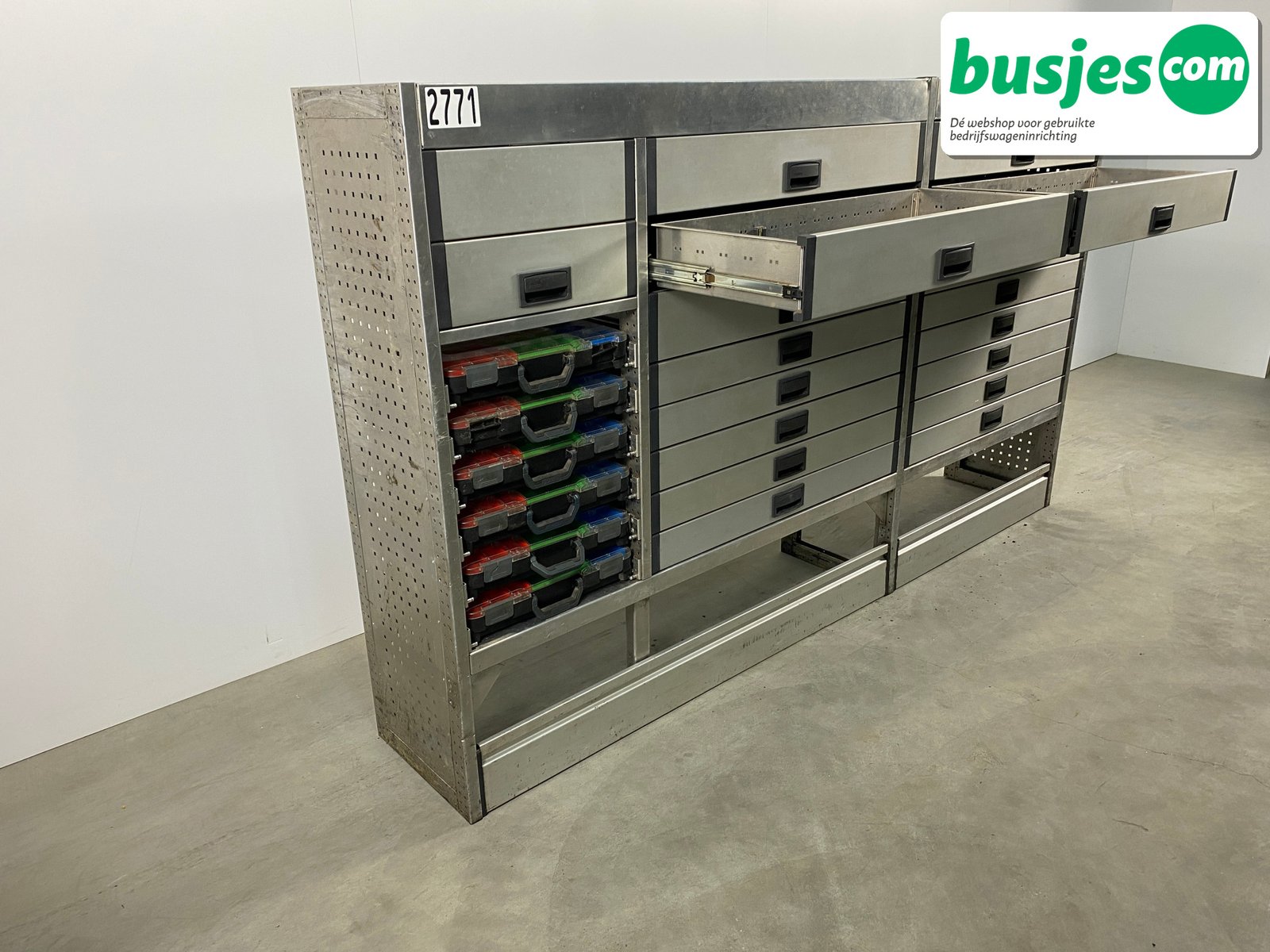 Deze gebruikte Aluca aluminium bedrijfswageninrichting is nog in topvorm. Gemaakt om lang mee te gaan én klaar voor een tweede ronde. Licht in gewicht, sterk als staal, en perfect voor het overzichtelijk vervoeren van je gereedschap en materiaal.