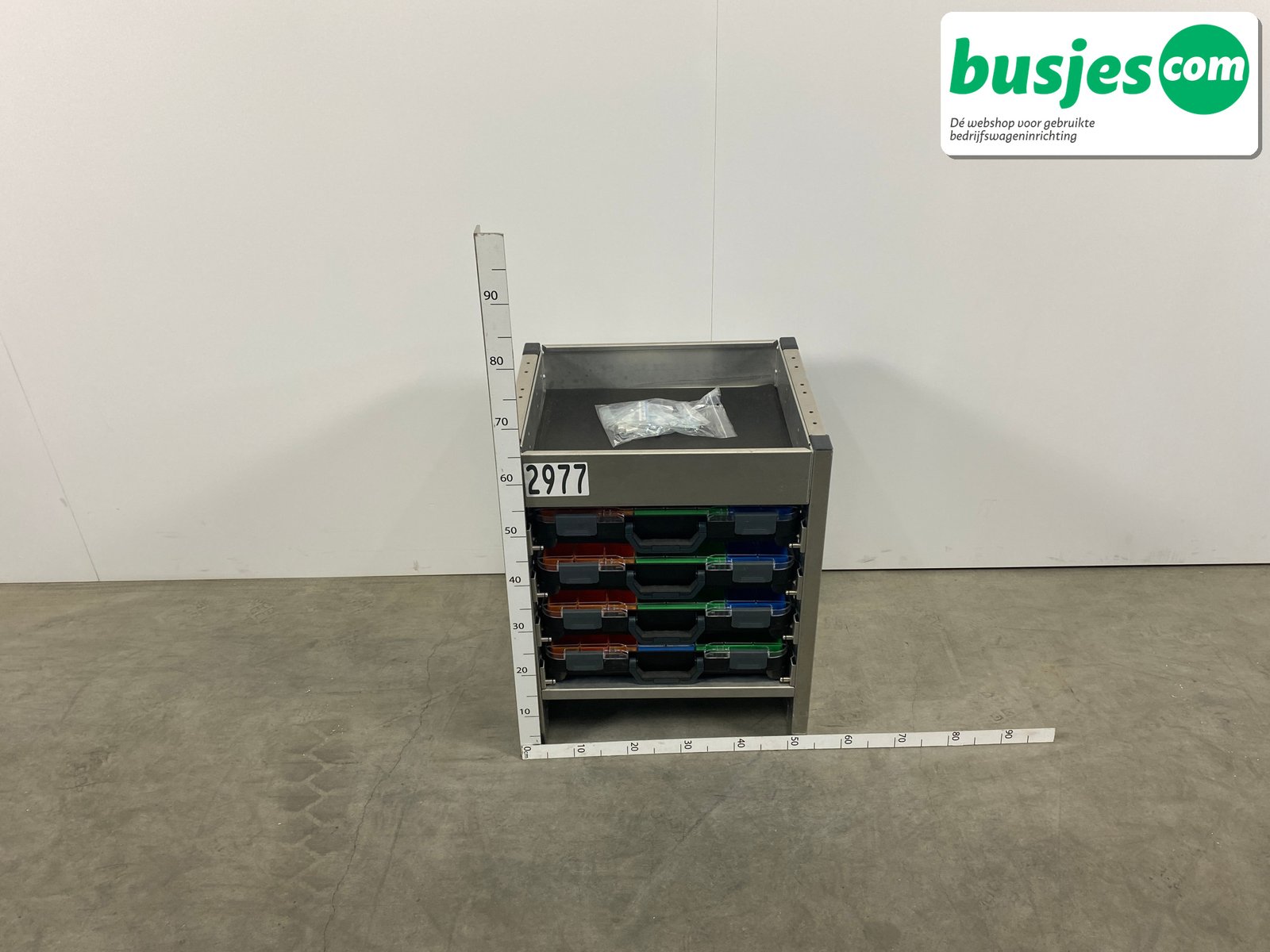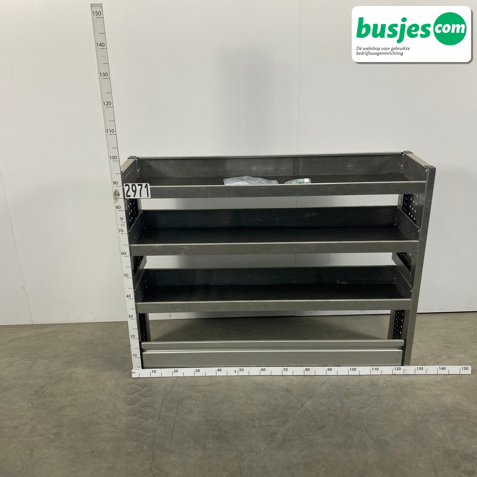 👉 Belangrijk: dit is een gebruikte inrichting. De staat is goed, maar check de afmetingen goed. Meet je voertuig zelf na of laat het doen, zodat je zeker weet dat het past.