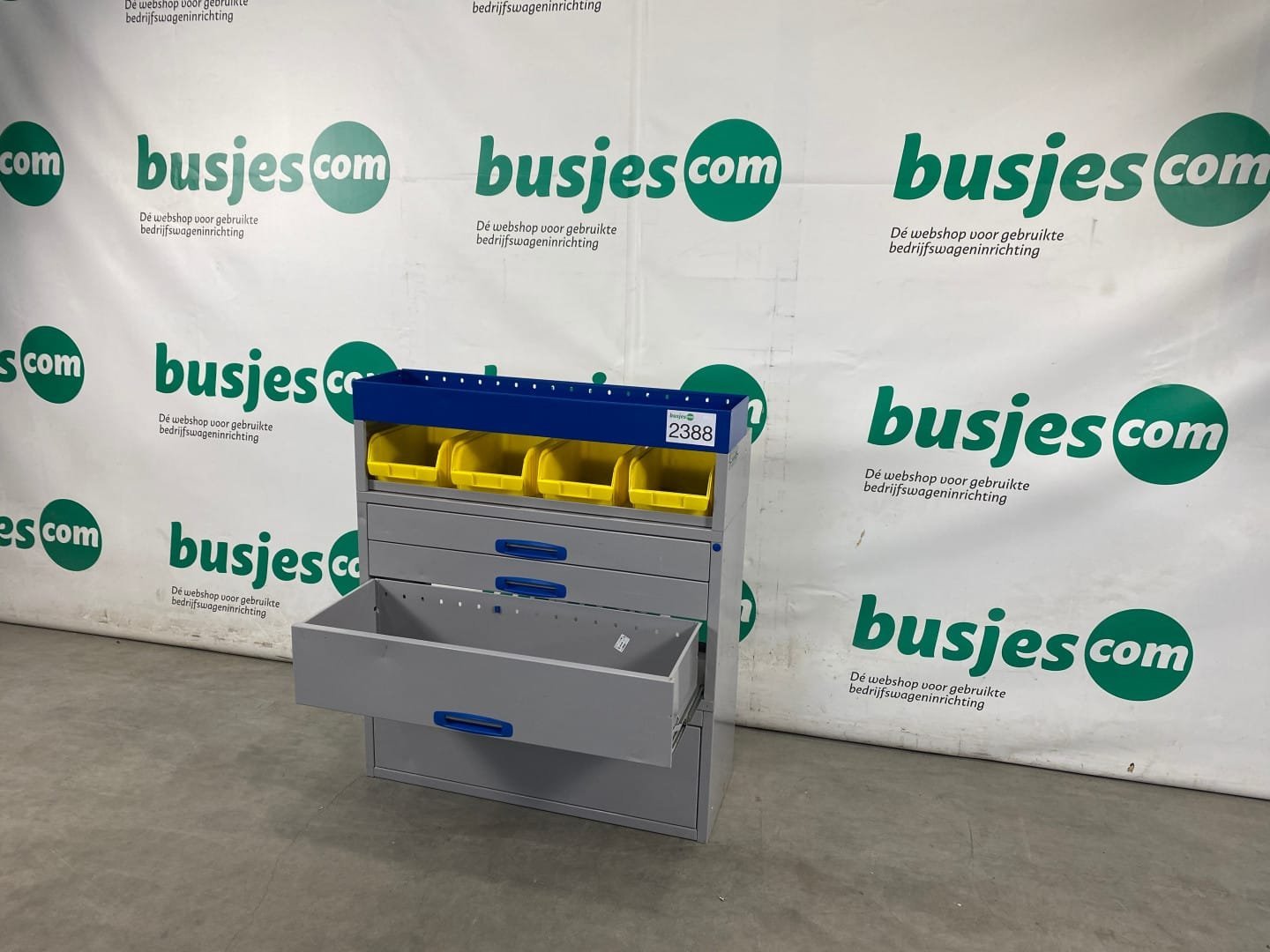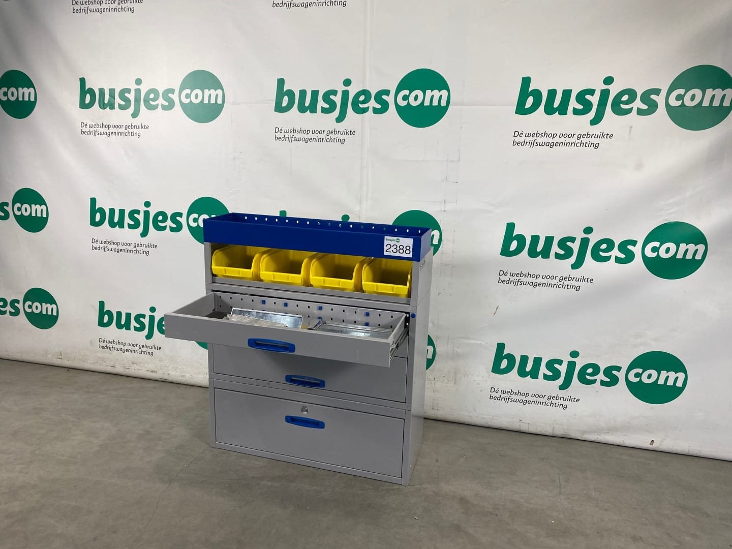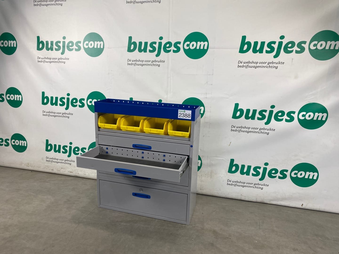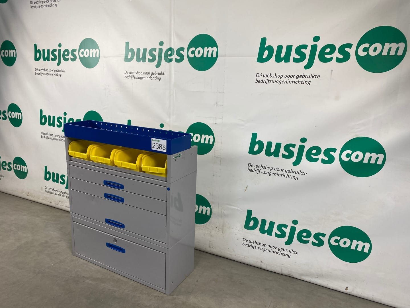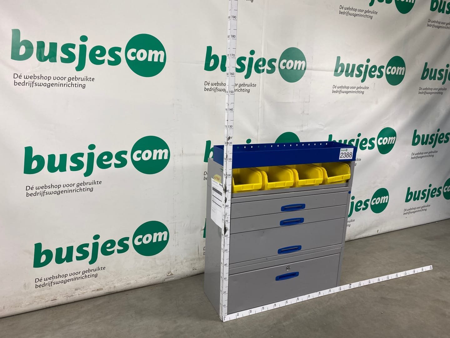 Deze gebruikte stelling is ontworpen voor professioneel gebruik en biedt een zee aan opbergruimte voor gereedschap, onderdelen en materialen. Alles overzichtelijk, alles binnen handbereik. En dat scheelt tijd – elke klus opnieuw.