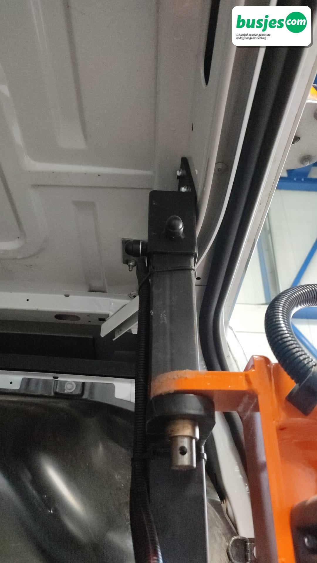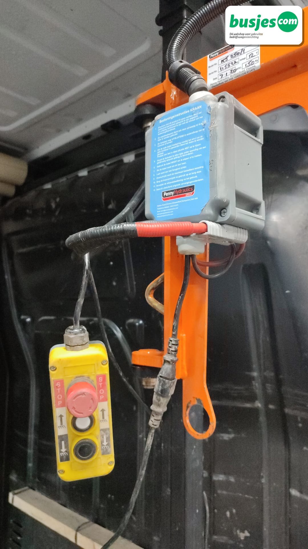 Deze gebruikte Penny kraan KJ150 (12V) is afkomstig uit een Renault Master H2 en wordt geleverd inclusief maatwerk pilaar, uitgevoerd voor montage rechts bij de schuifdeuropening. Een complete en praktische oplossing voor het veilig en efficiënt laden en lossen van materialen.