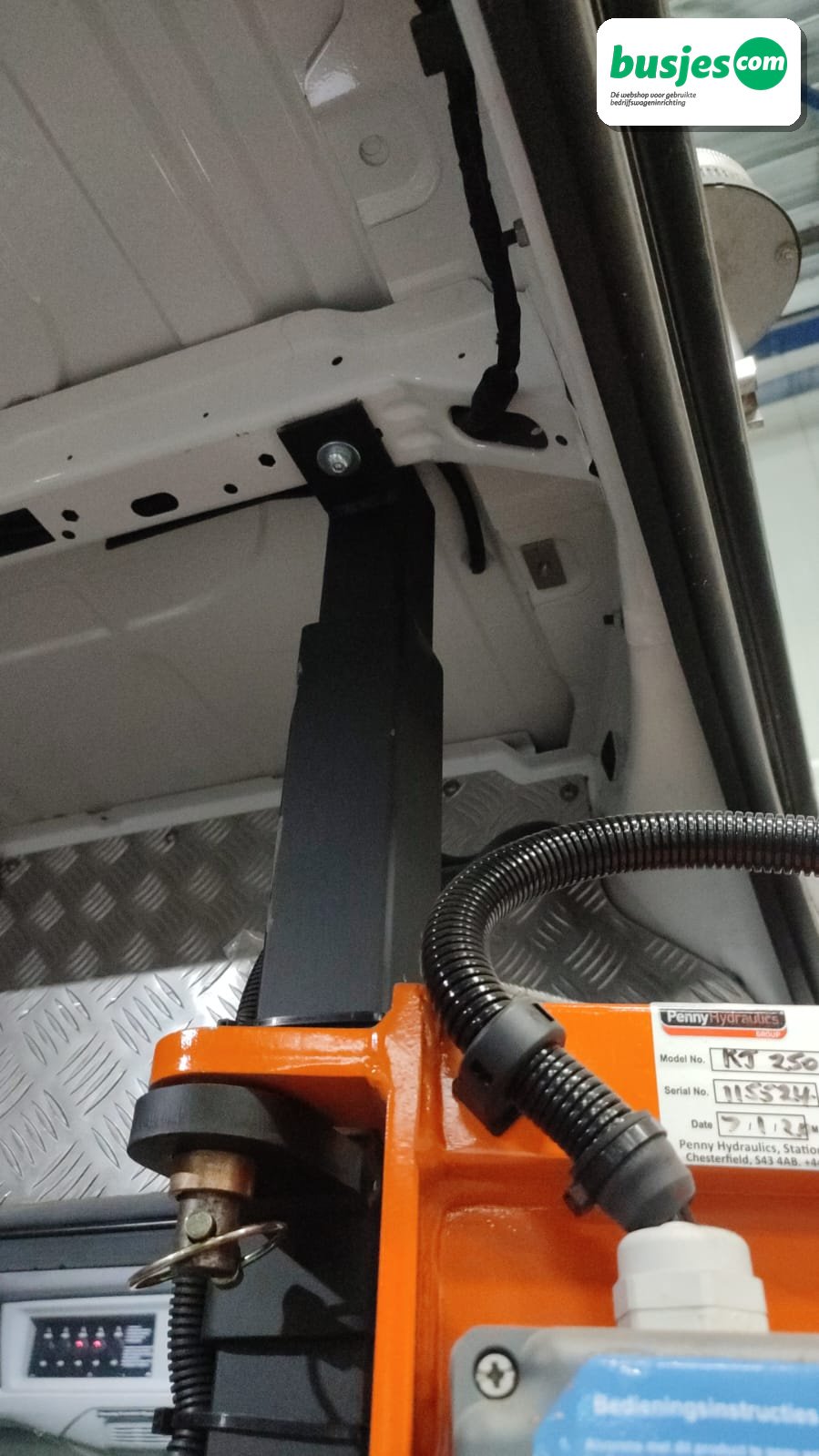 Deze gebruikte Penny kraan KJ150 (12V) is afkomstig uit een VW Crafter H3 en wordt geleverd inclusief maatwerk pilaar, uitgevoerd voor montage rechts bij de schuifdeuropening. Een complete en praktische oplossing voor het veilig en efficiënt laden en lossen van materialen.