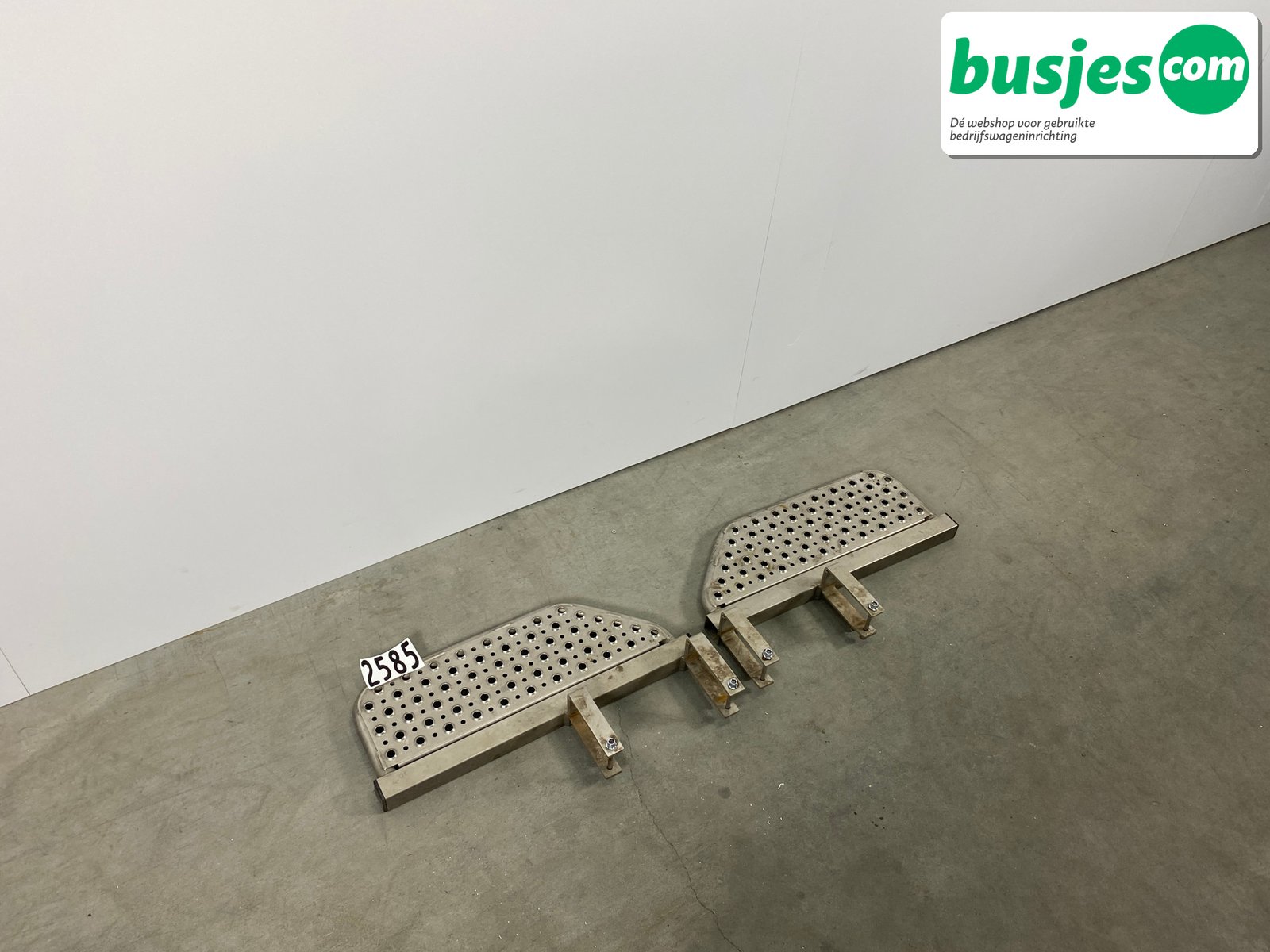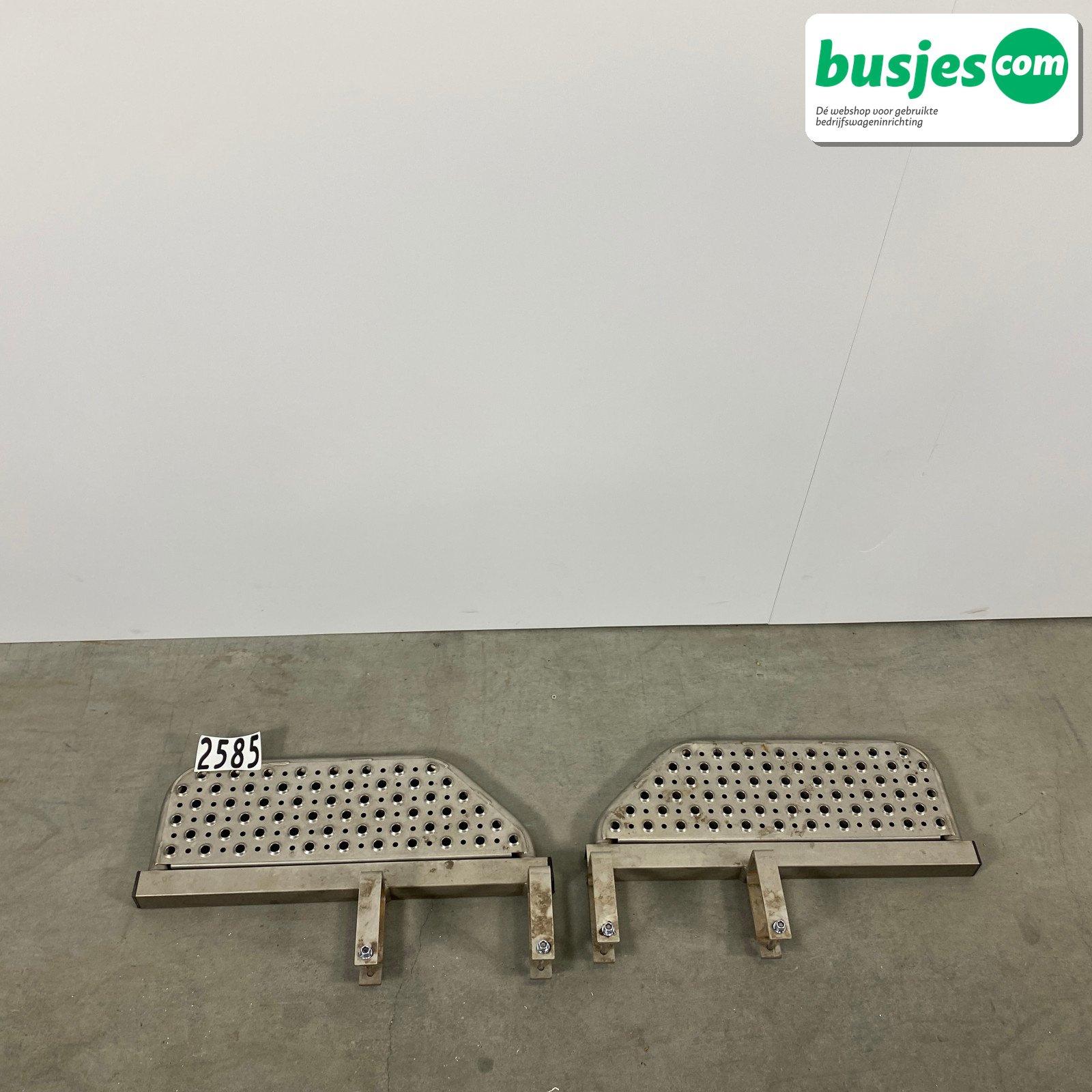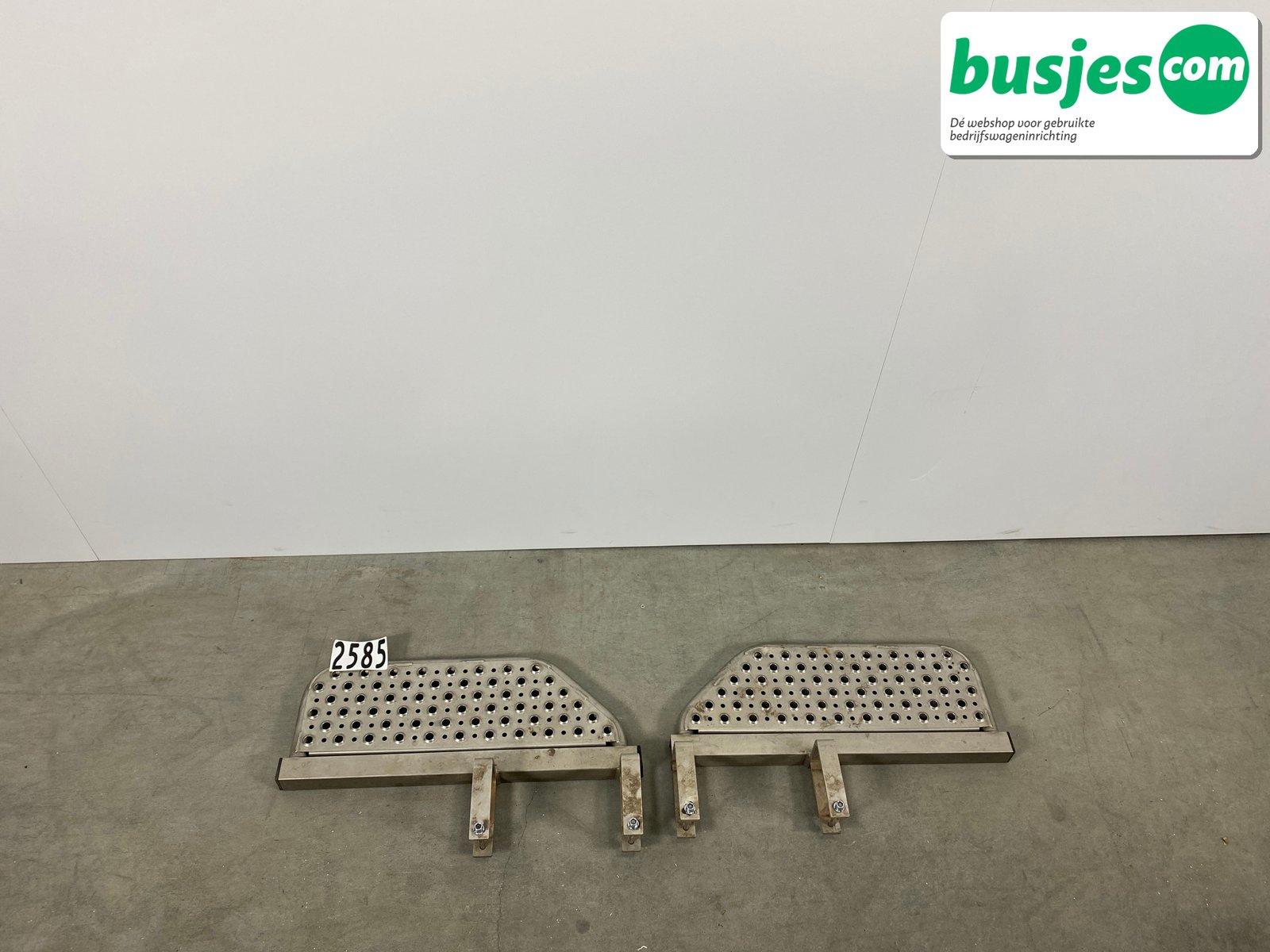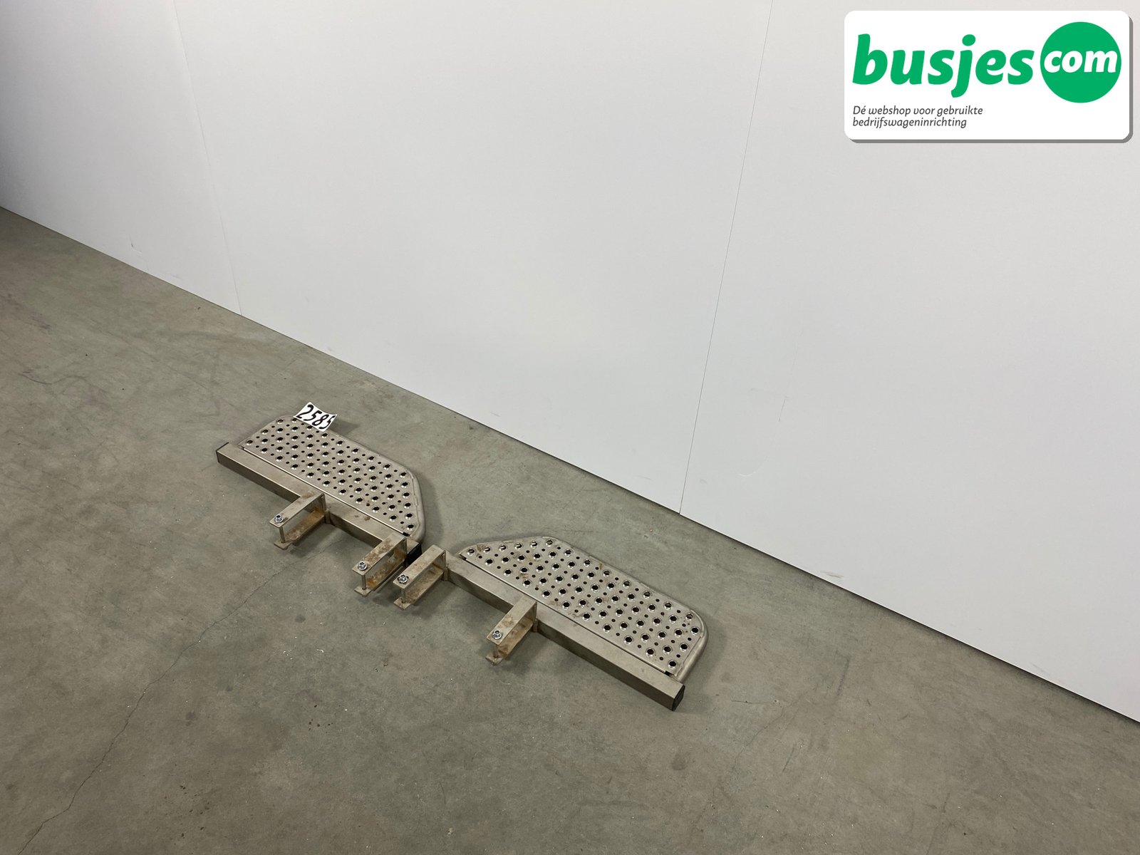 De opstappen zijn gemaakt van hoogwaardig roestvast staal (RVS). Dit materiaal staat bekend om zijn lange levensduur, sterkte en weerstand tegen roest en weersinvloeden. Daardoor is deze set uitermate geschikt voor intensief gebruik, zowel zakelijk als particulier. Het antislip oppervlak biedt extra grip en verhoogt de veiligheid bij het in- en uitstappen, ook bij nat of glad weer.