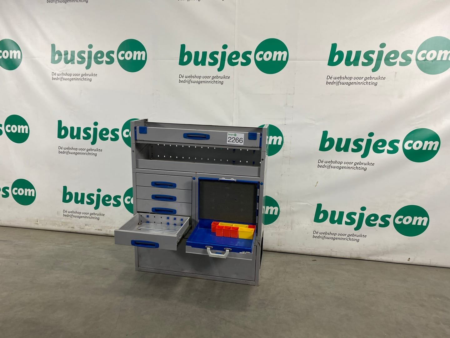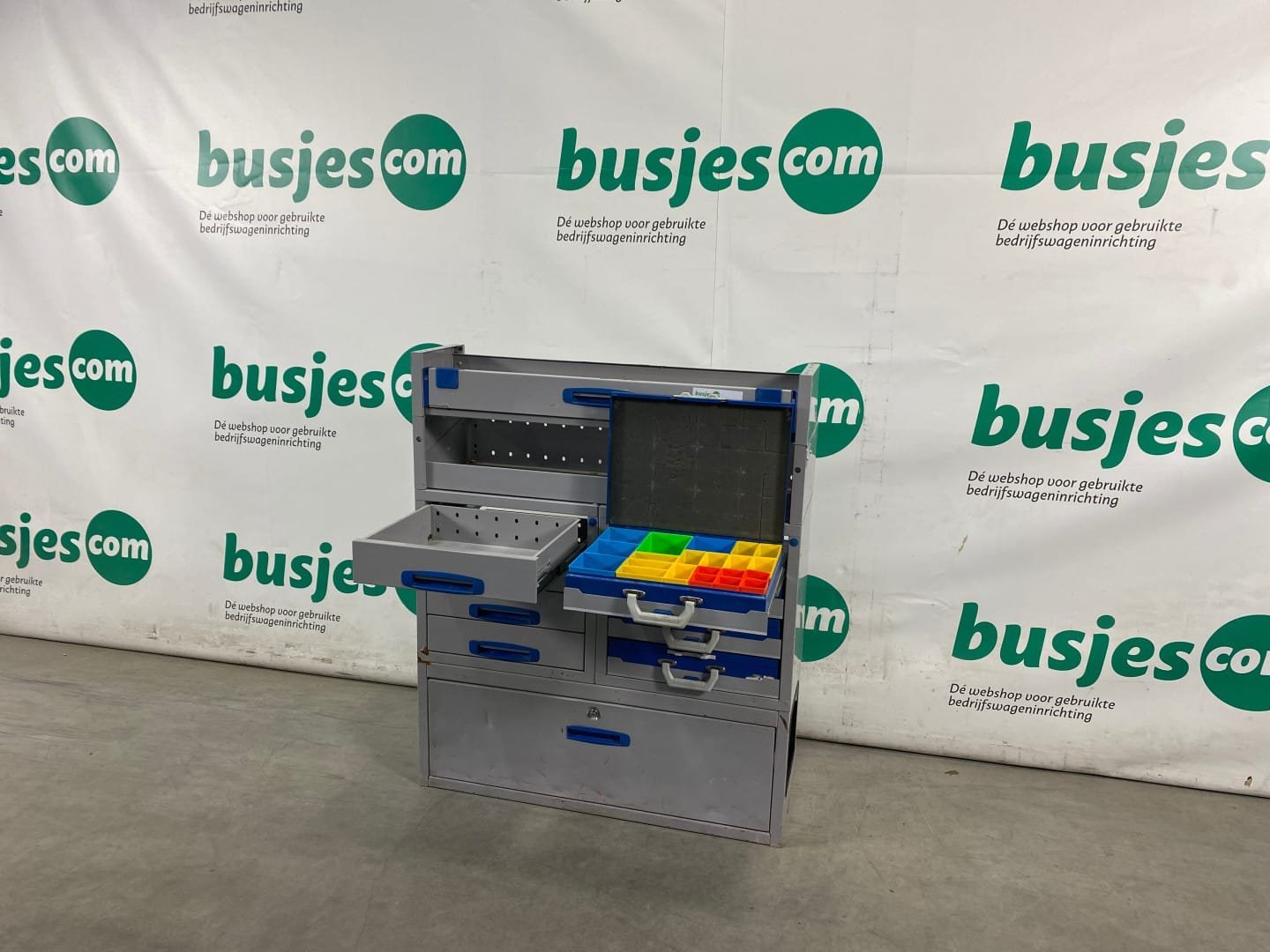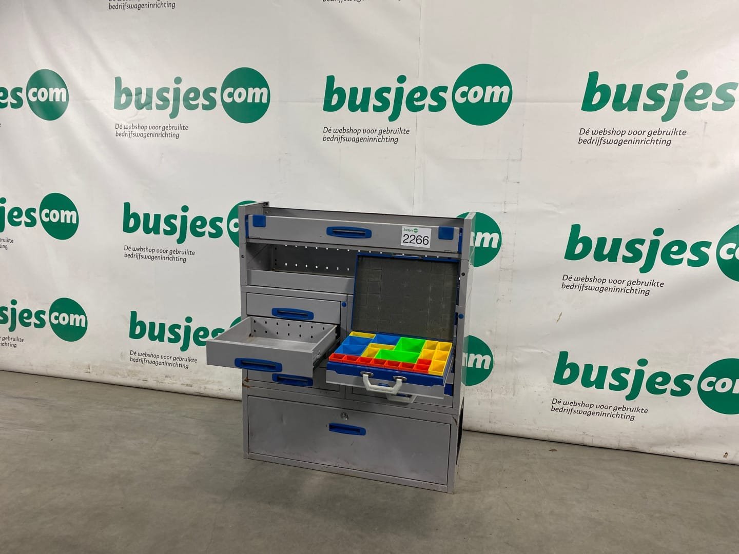 Deze gebruikte stelling is ontworpen voor professioneel gebruik en biedt een zee aan opbergruimte voor gereedschap, onderdelen en materialen. Alles overzichtelijk, alles binnen handbereik. En dat scheelt tijd – elke klus opnieuw.