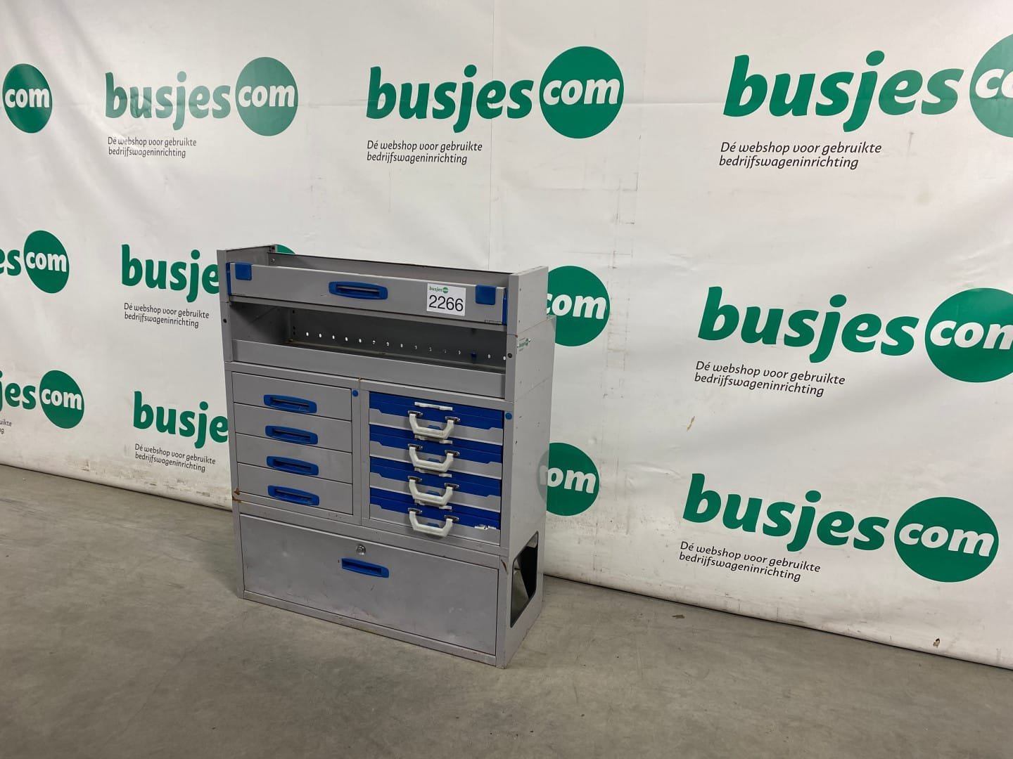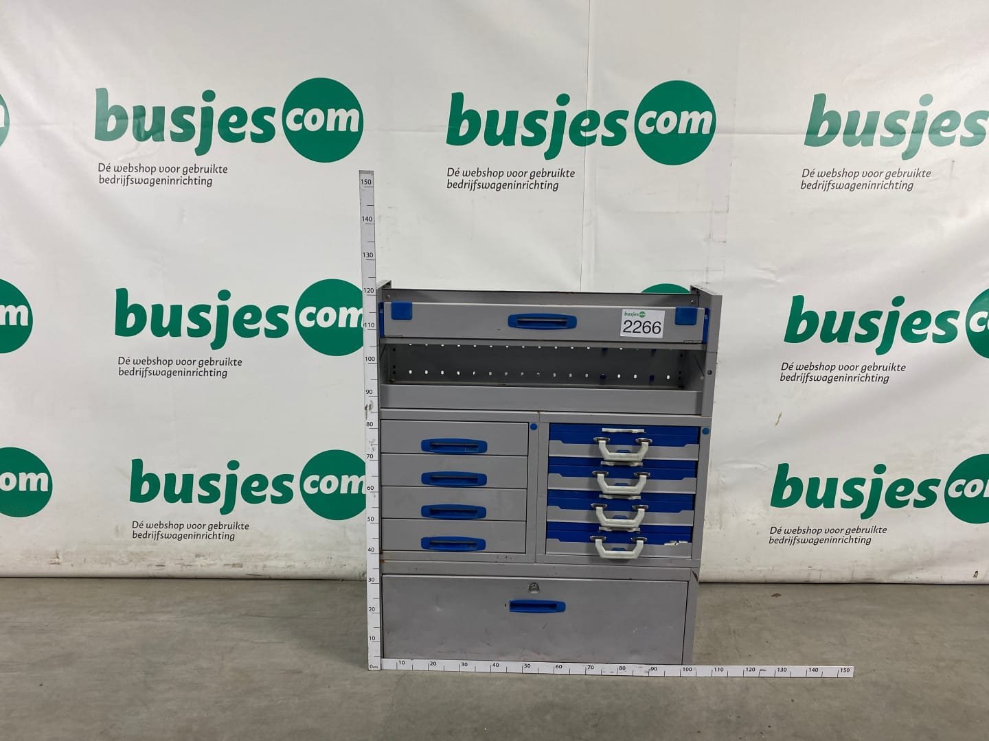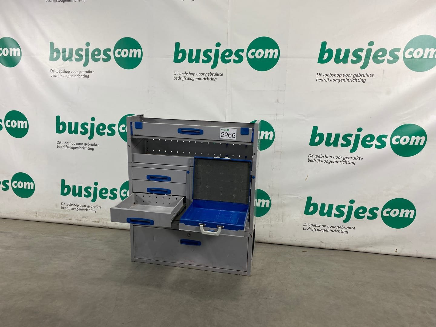 Deze gebruikte stelling is ontworpen voor professioneel gebruik en biedt een zee aan opbergruimte voor gereedschap, onderdelen en materialen. Alles overzichtelijk, alles binnen handbereik. En dat scheelt tijd – elke klus opnieuw.