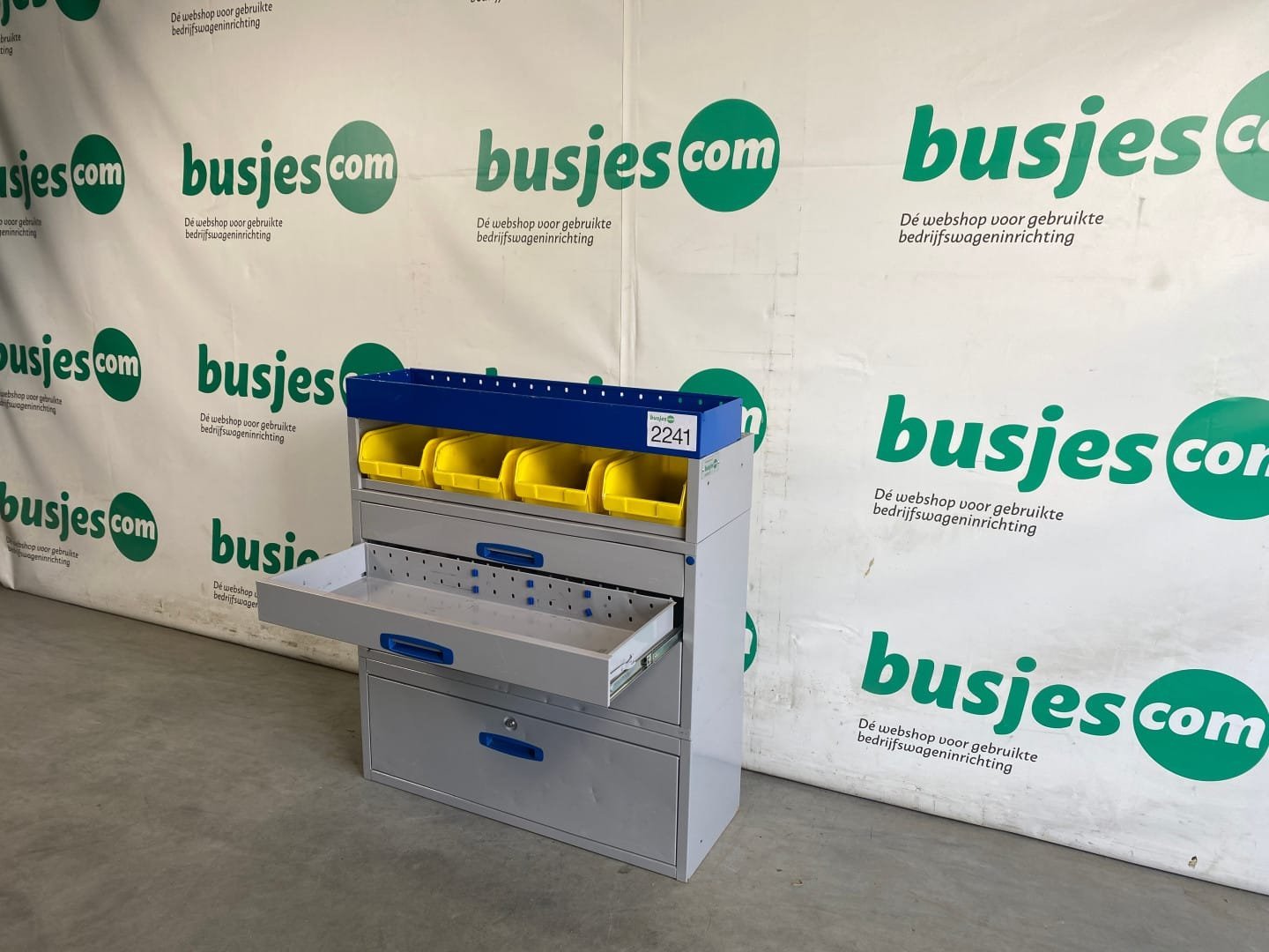 Steebox gebruikte bedrijfswageninrichting stelling / bus inrichting. Bedrijfswageninrichting van het merk Steebox, Degelijk en sterk. Perfect voor georganiseerd meenemen van materialen.