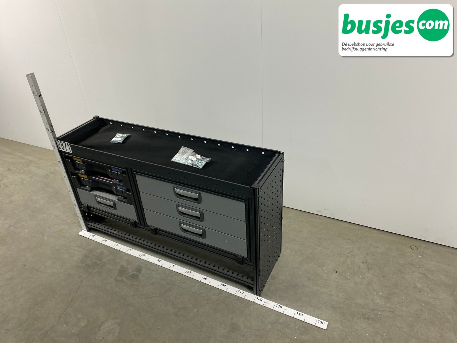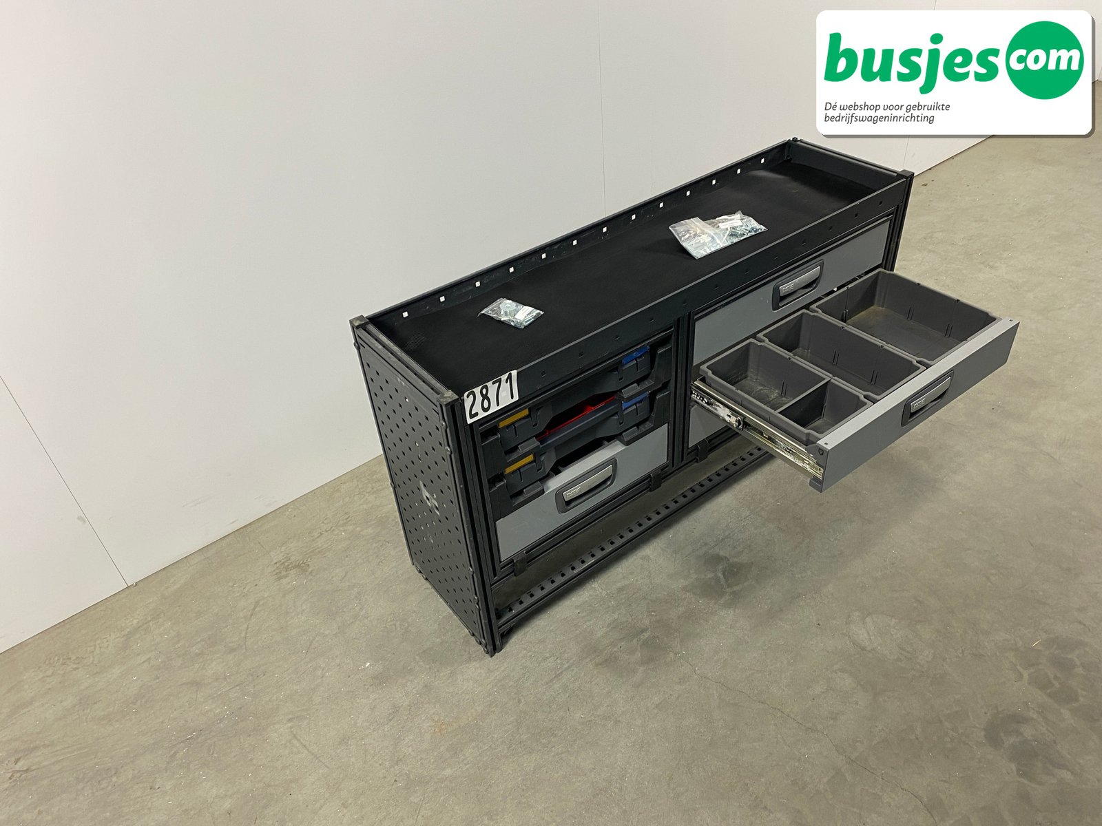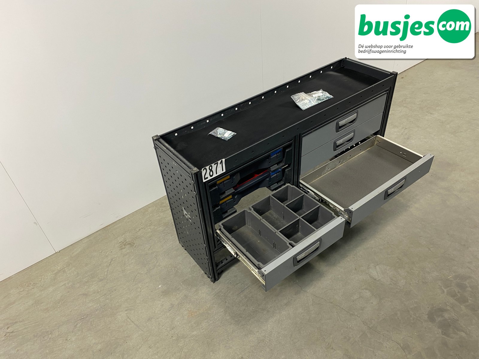 Deze gebruikte Modul bedrijfswageninrichting is gebouwd om lang mee te gaan. Gemaakt van stevig staal en ontworpen voor vakmensen die overzicht en efficiëntie willen. Geen losse spullen meer, geen tijdverlies. Gewoon: alles op z’n plek, direct binnen handbereik.