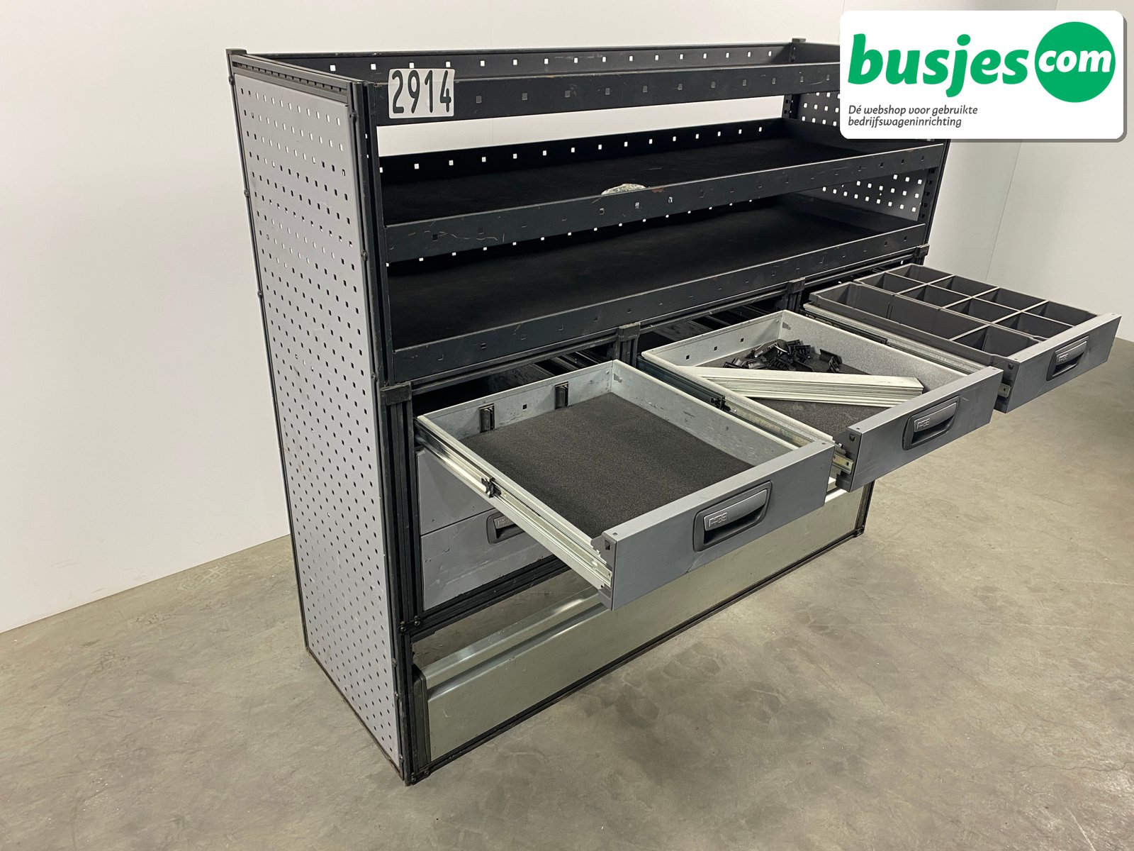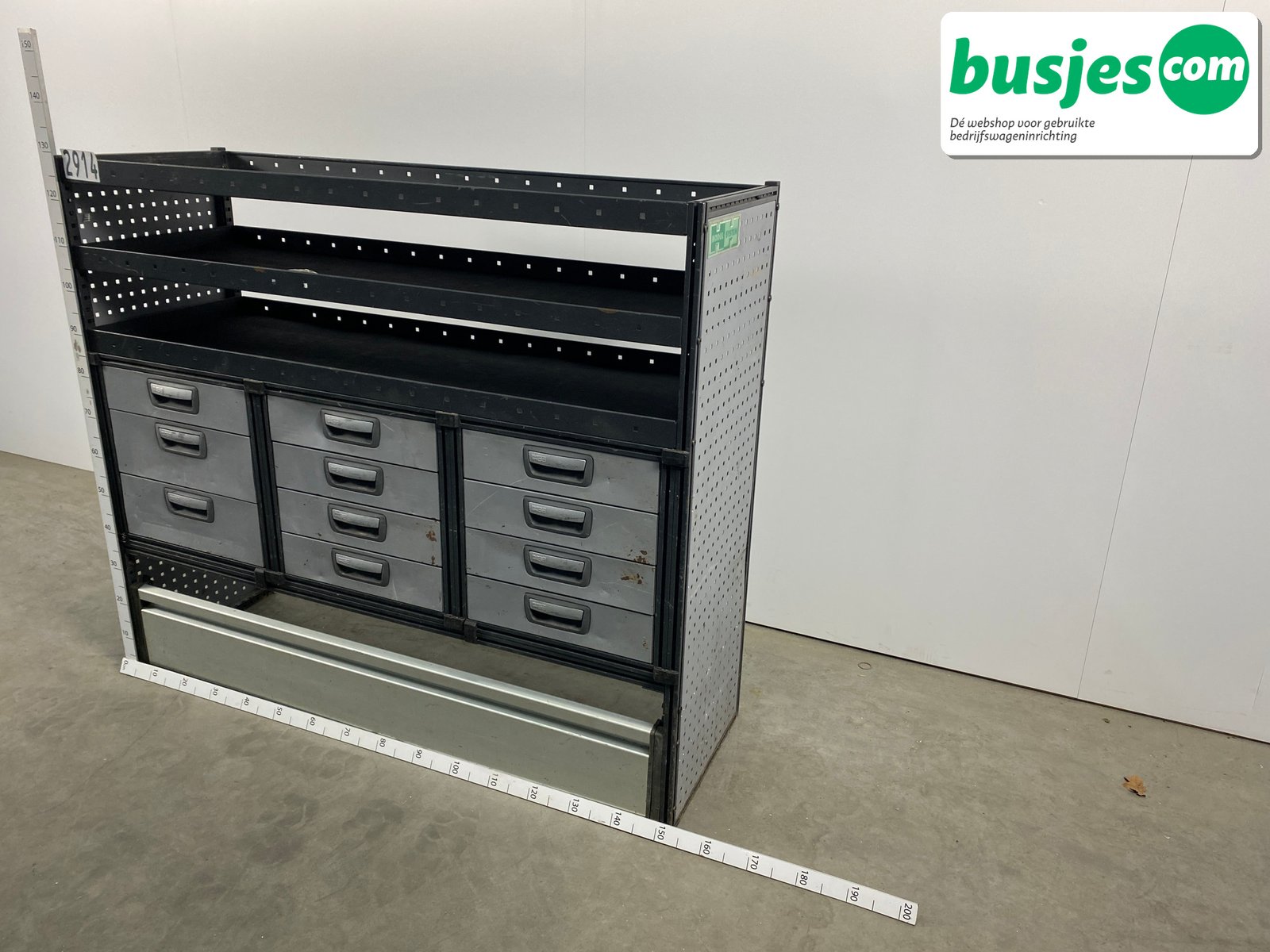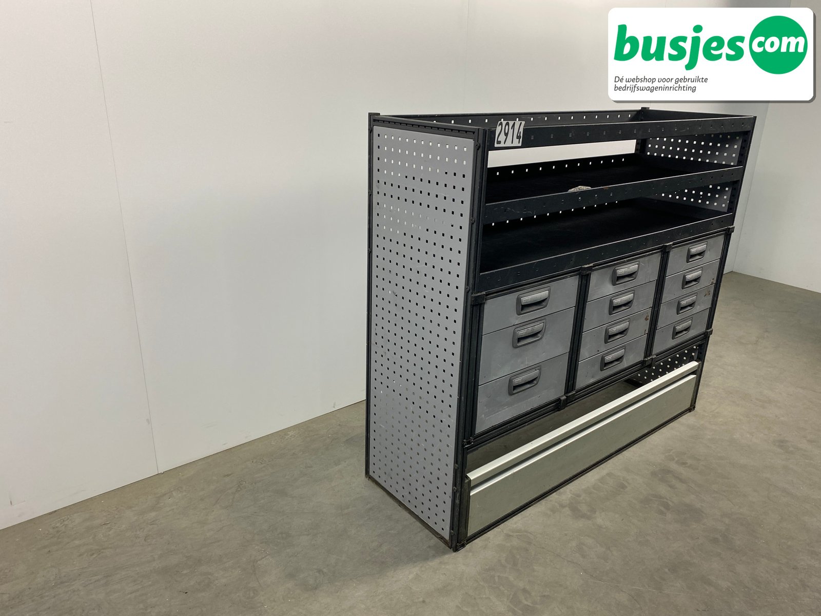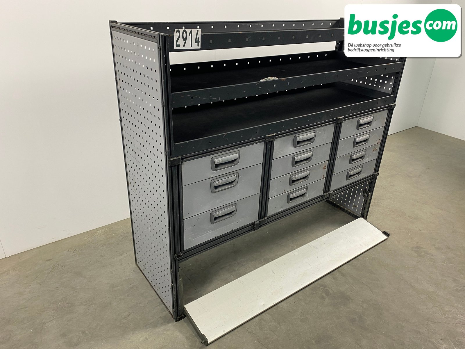 Deze gebruikte Modul bedrijfswageninrichting is gebouwd om lang mee te gaan. Gemaakt van stevig staal en ontworpen voor vakmensen die overzicht en efficiëntie willen. Geen losse spullen meer, geen tijdverlies. Gewoon: alles op z’n plek, direct binnen handbereik.