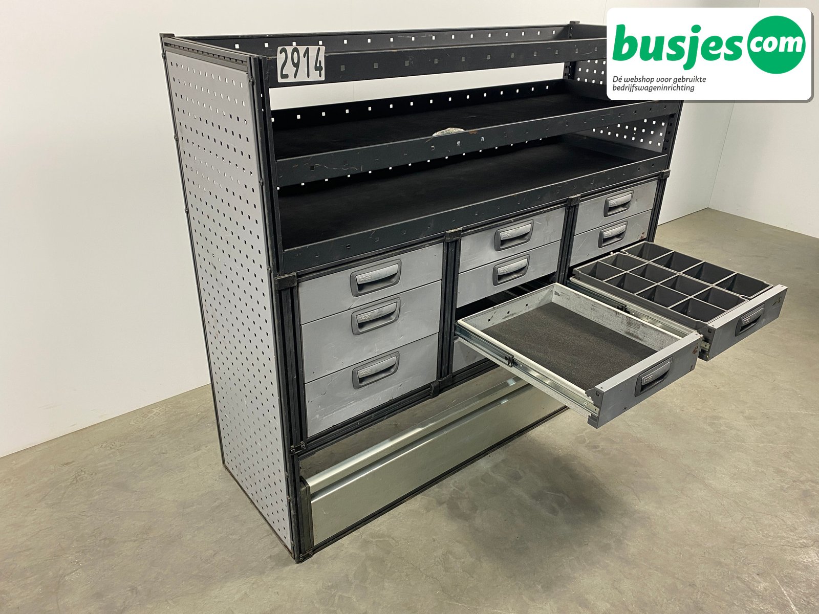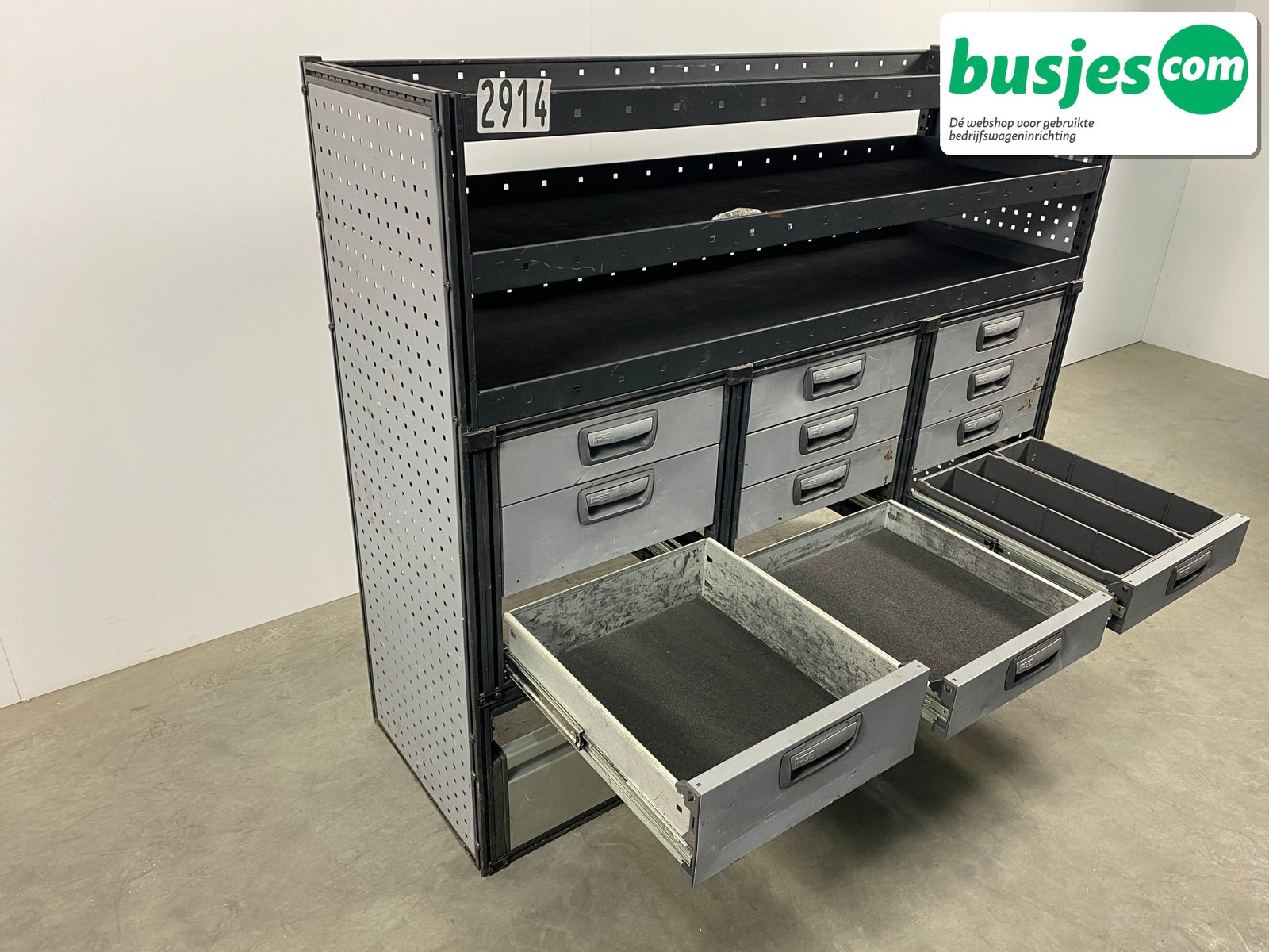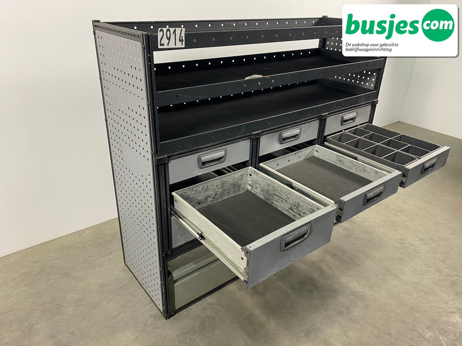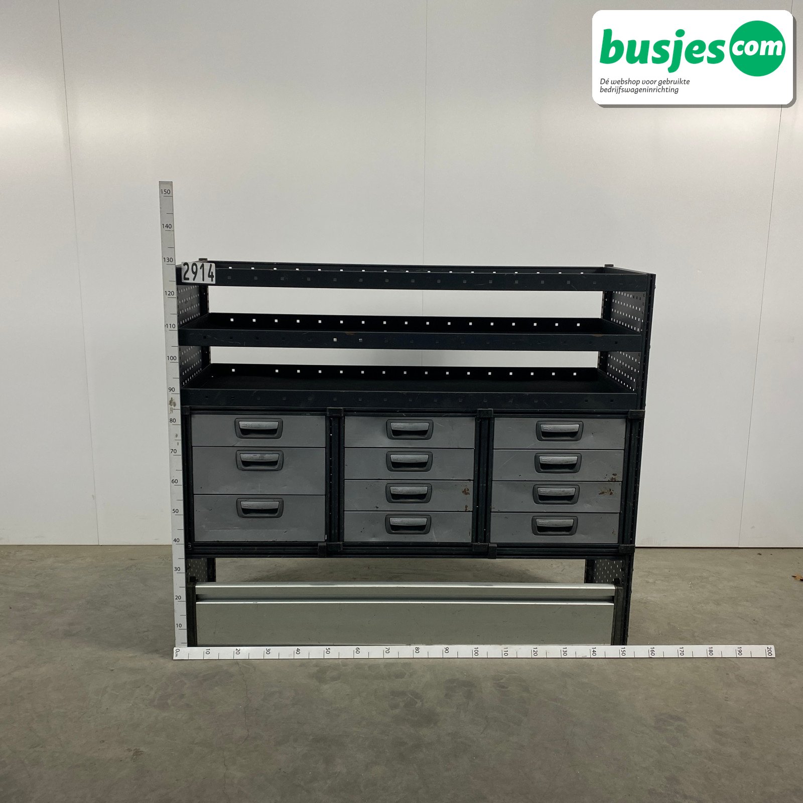 Deze gebruikte Modul bedrijfswageninrichting is gebouwd om lang mee te gaan. Gemaakt van stevig staal en ontworpen voor vakmensen die overzicht en efficiëntie willen. Geen losse spullen meer, geen tijdverlies. Gewoon: alles op z’n plek, direct binnen handbereik.