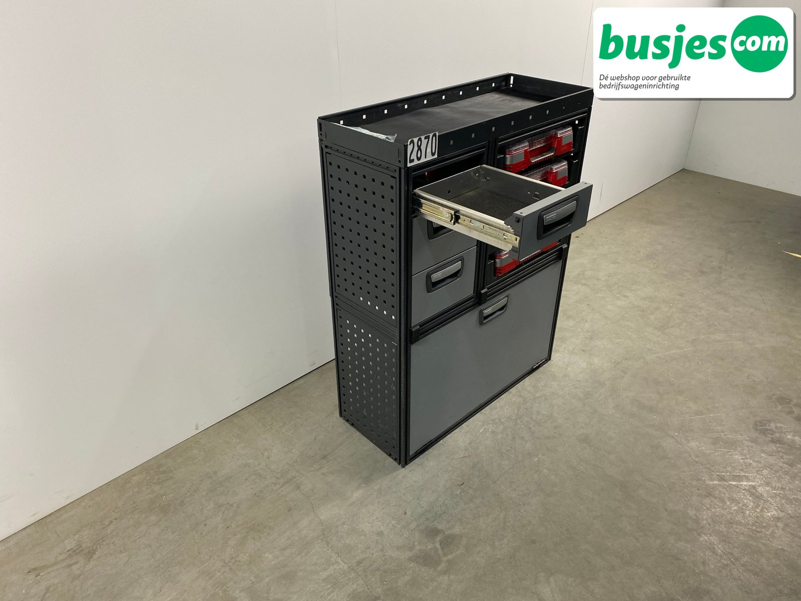 Deze gebruikte Modul bedrijfswageninrichting is gebouwd om lang mee te gaan. Gemaakt van stevig staal en ontworpen voor vakmensen die overzicht en efficiëntie willen. Geen losse spullen meer, geen tijdverlies. Gewoon: alles op z’n plek, direct binnen handbereik.