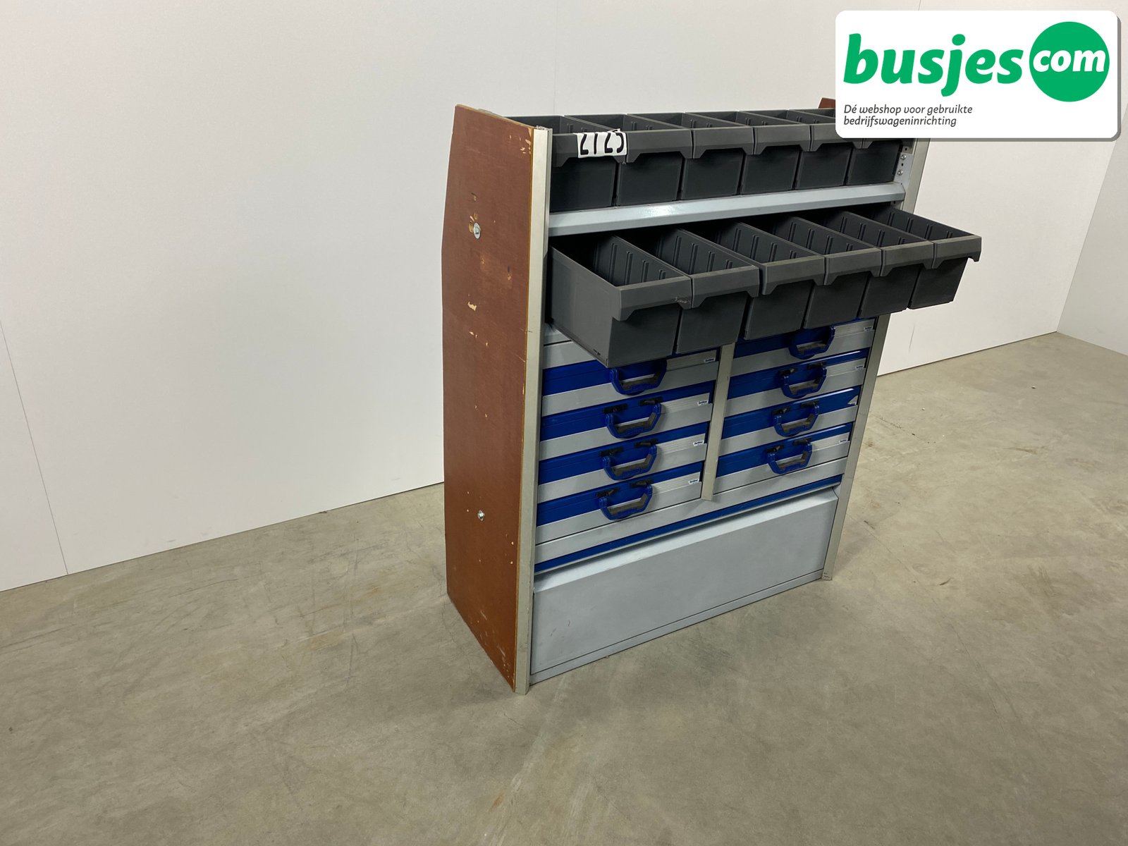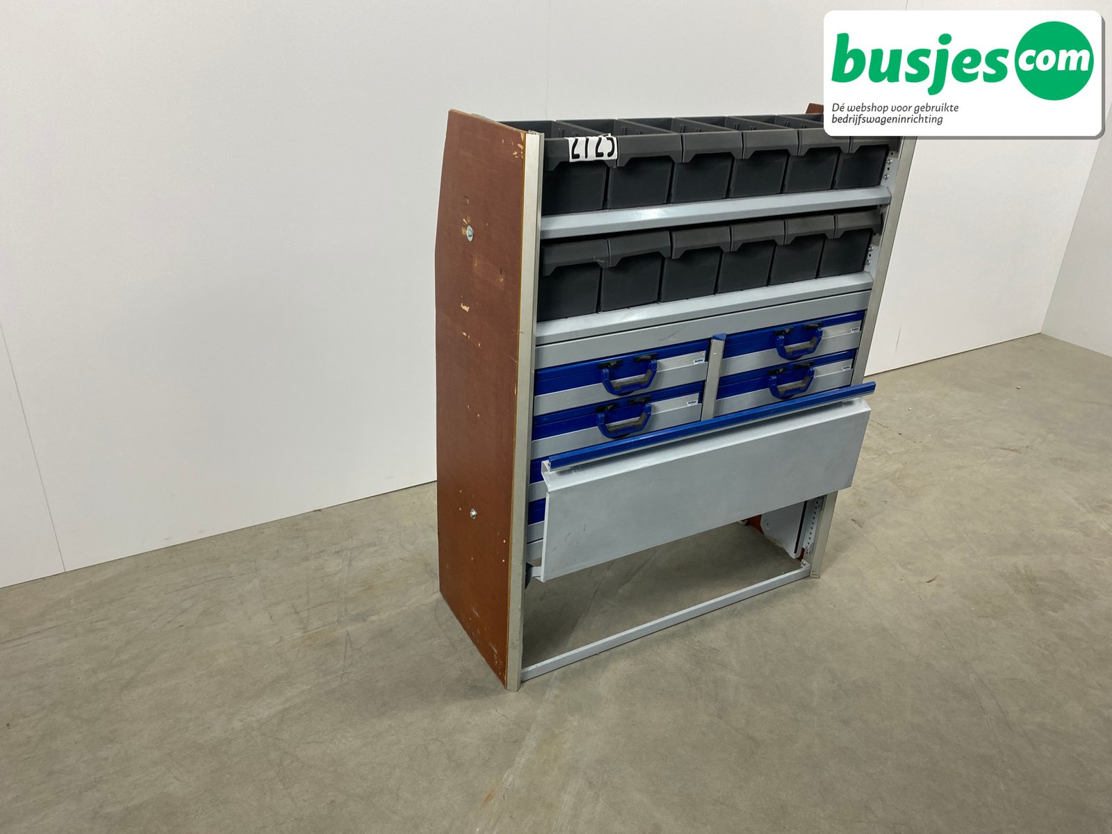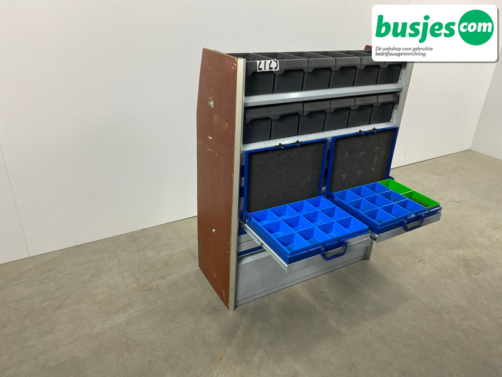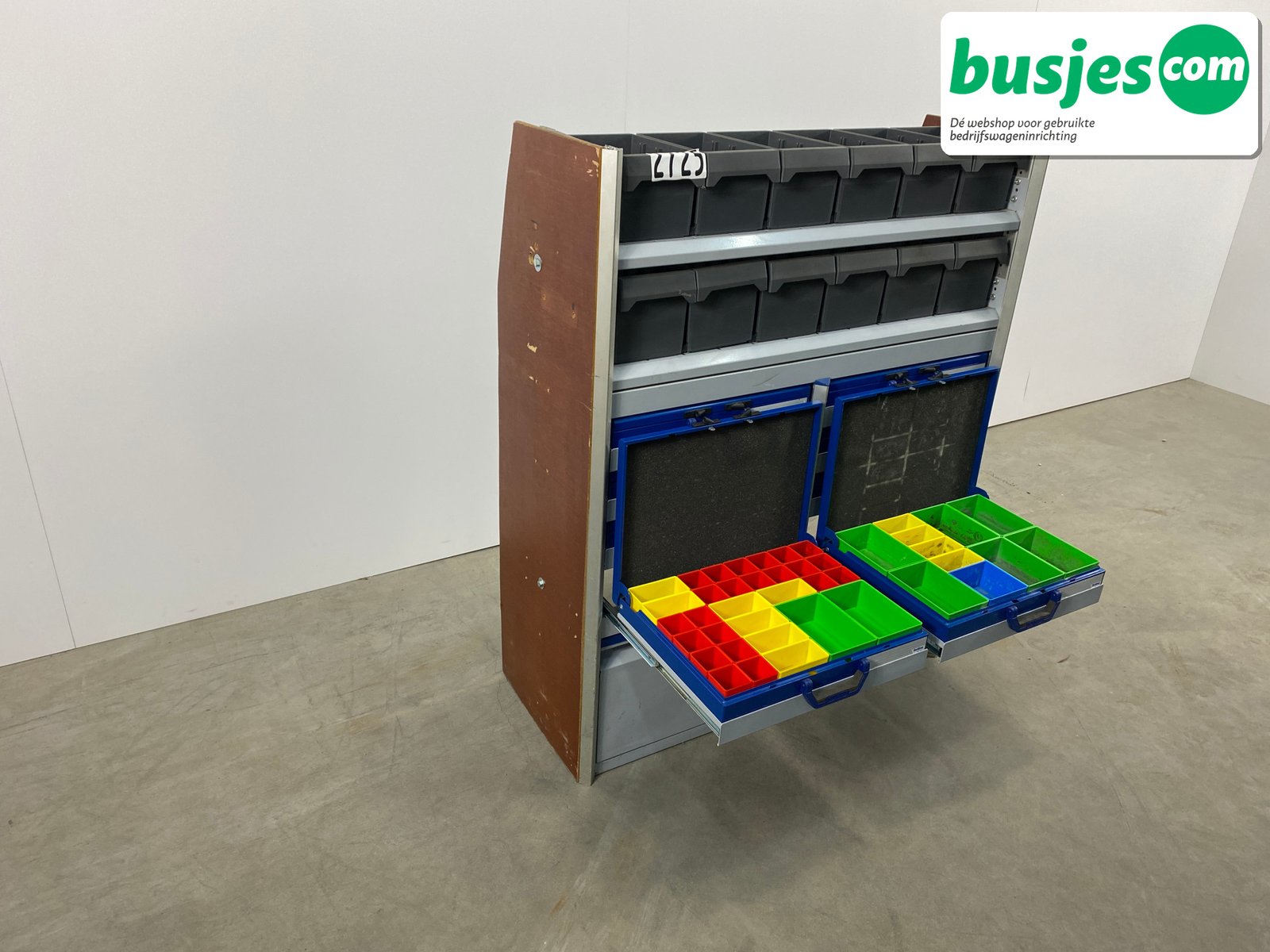 Sortimo gebruikte bedrijfswageninrichting stelling / bus inrichting. Bedrijfswageninrichting van het top merk Sortimo. Perfect voor georganiseerd meenemen van materialen.