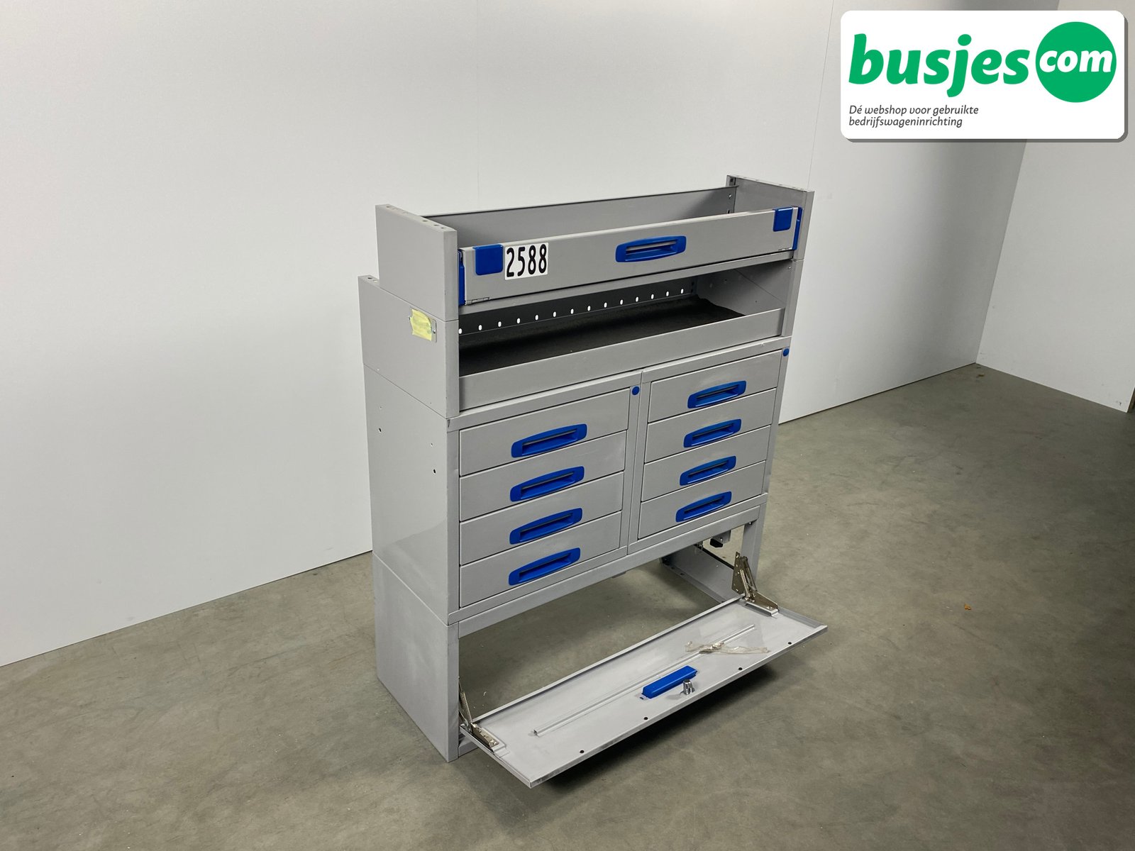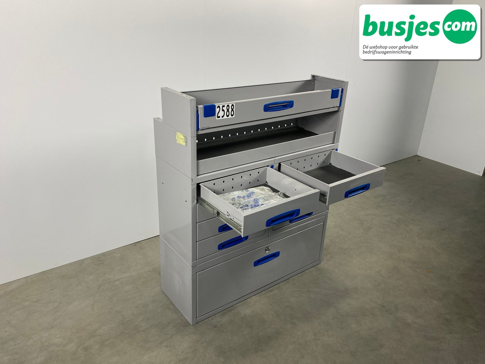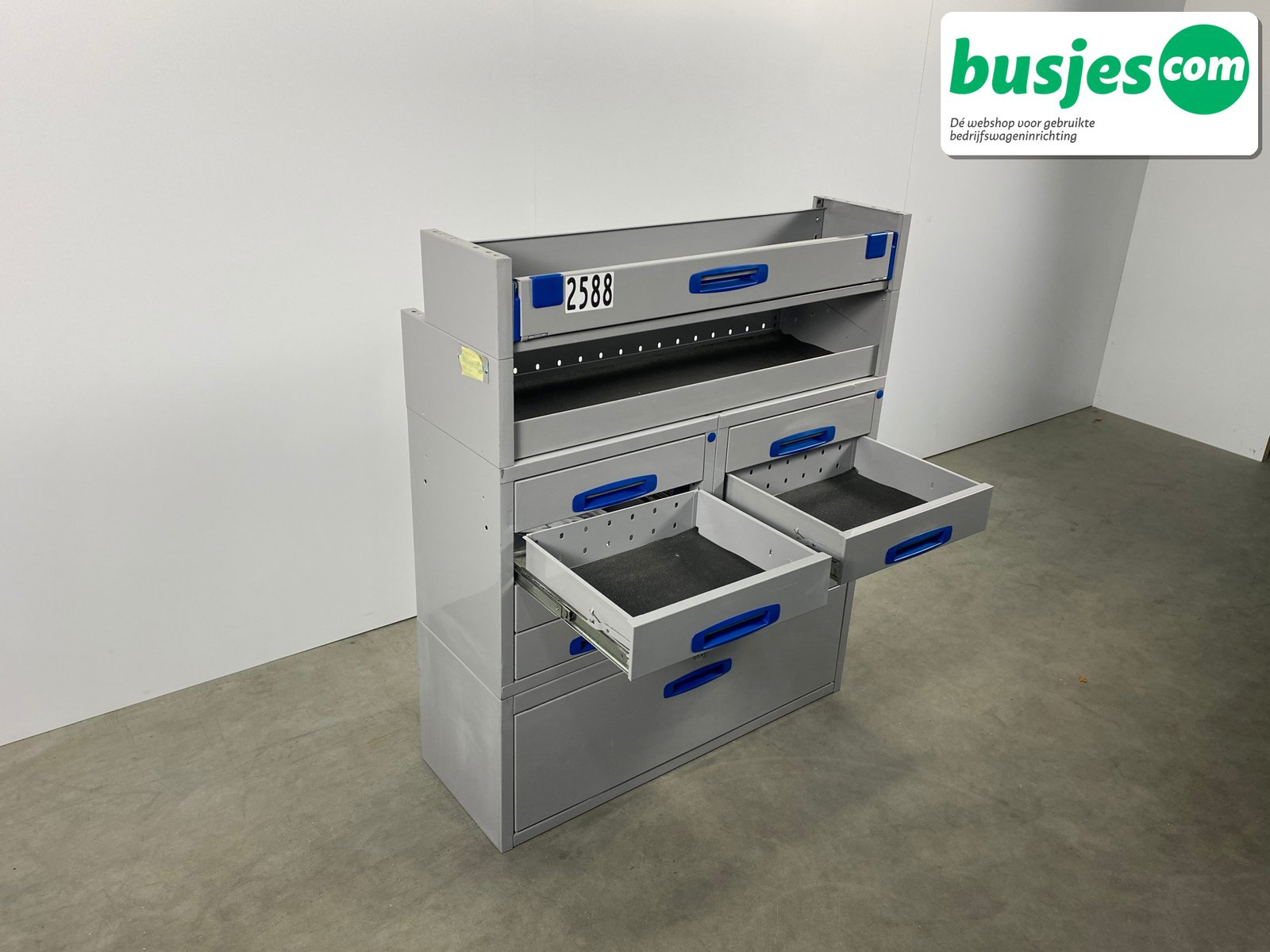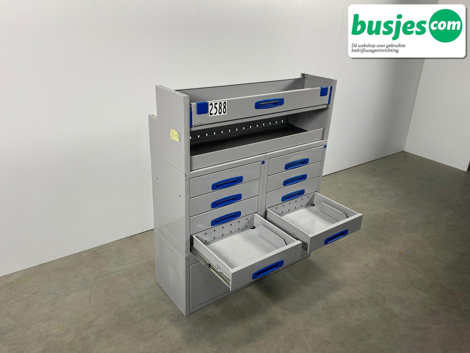 Sortimo gebruikte bedrijfswageninrichting stelling / bus inrichting. Bedrijfswageninrichting van het top merk Sortimo. Perfect voor georganiseerd meenemen van materialen.